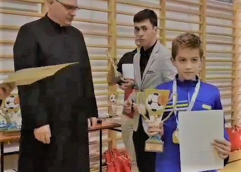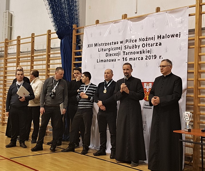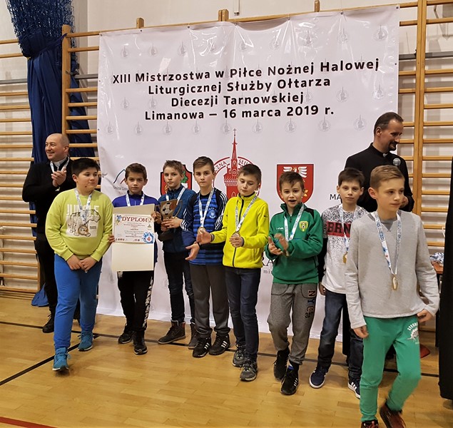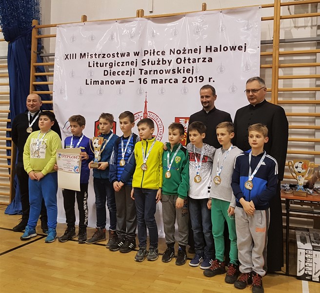 XIII Mistrzostwa Liturgicznej Służby Ołtarza Diecezji Tarnowskiej w Piłce Nożnej Halowej, które dzisiaj odbyły się w Limanowej, zakończyły się dużym sukcesem dla drużyny Ministrantów z Tymbarku. Drużyna w składzie: Marcin Sobczak, Jan Urbański, Adrian Majda, Jakub Matras, Karol Kaim, Mikołaj Niezabitowski, Jakub Petranowicz, Krystian Frączek oraz Tomasz Petranowicz wywalczyła pierwsze miejsce w swojej grupie. Po wyjściu z rozgrywek grupowych w ćwierćfinale Tymbark pokonał drużynę z Bochni (Parafia św.Jana) 3:0, następnie w półfinale ministrantów z Parafii św.Jakuba z Brzeska ( (2:0). O pierwsze miejsce tymbarscy ministranci zagrali ze swoimi rówieśnikami z Parafii Zgórsko, zwyciężając 5:1. Najlepszym strzelcem w grupie ministrantów został również zawodnik z Tymbarku Marcin Sobczak ( 8 goli). Jan Urbański sześciokrotnie umieścił piłkę w bramce, a Mikołaj Niezabitowski pięciokrotnie. Opiekunem drużyny jest ksiądz Stanisław Kaczka.