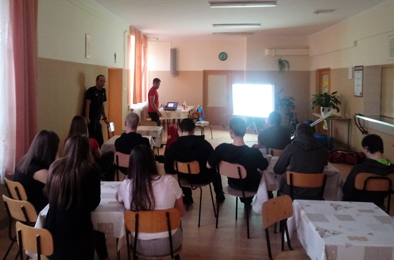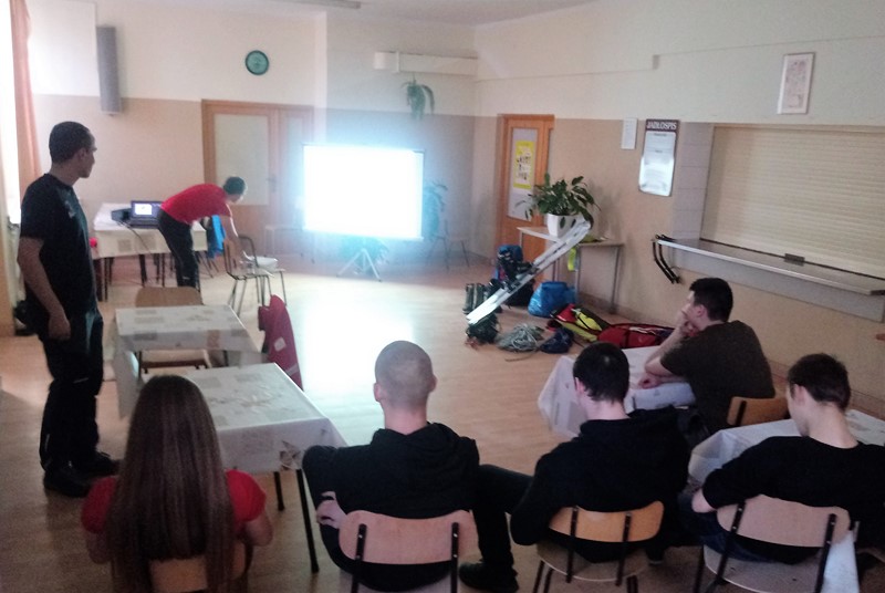 W  Internacie Zespołu Szkół im. KEN w Tymbarku,  odbyła się prelekcja przedstawicieli limanowskiego oddziału Grupy Podhalańskiej GOPR. Ratownicy na wstępie zachęcali młodzież z klas mundurowych (policyjnych i wojskowych), aby po ukończeniu 18 lat oraz przejściu szeregu specjalistycznych szkoleń i zdaniu egzaminu, zasiliła szeregi GOPR-u. Prowadzący z pasją i zainteresowaniem opowiadali o swojej ciekawej trudnej i niebezpiecznej pracy, pokazali cześć sprzętu będącego na wyposażeniu GOPR-u używanego podczas akcji ratunkowych – mówi Małgorzata Kulig z tymbarskiego Zespołu Szkół.  W trakcie spotkania zostały wyświetlone filmy z akcji ratunkowych. Prelegenci z chęcią odpowiadali na szereg pytań zadawanych przez młodzież.