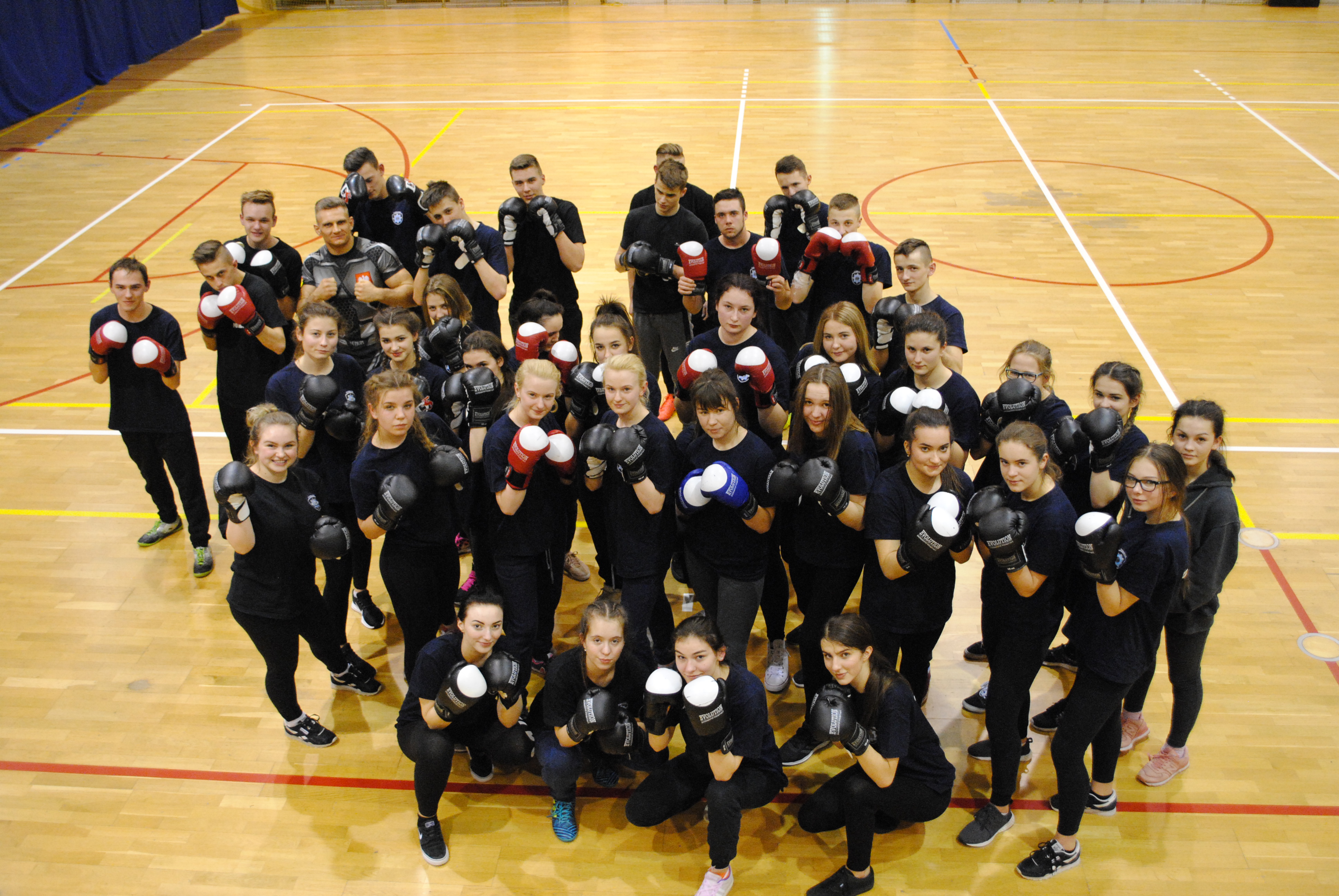Muay taiwykonywanie ciosów i kopnięć, oraz  uderzeń łokciami, obrona przed napastnikiem, wykonywanie ciosów i kopnięć na tarczę imitującą przeciwnika;