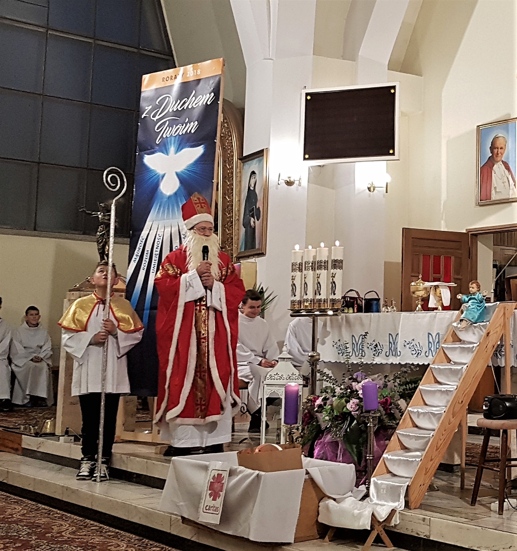 Świętego Mikołaja zaprosili, przygotowali program i przyjęli – wraz z dziećmi i księdzem Proboszczem –  dostojnego Gościa:  ksiądz Witold oraz siostra Agnieszka.