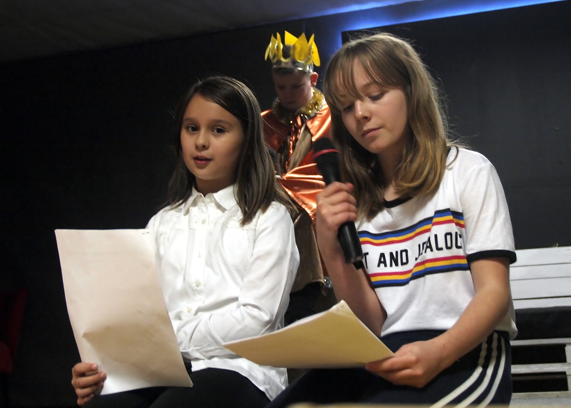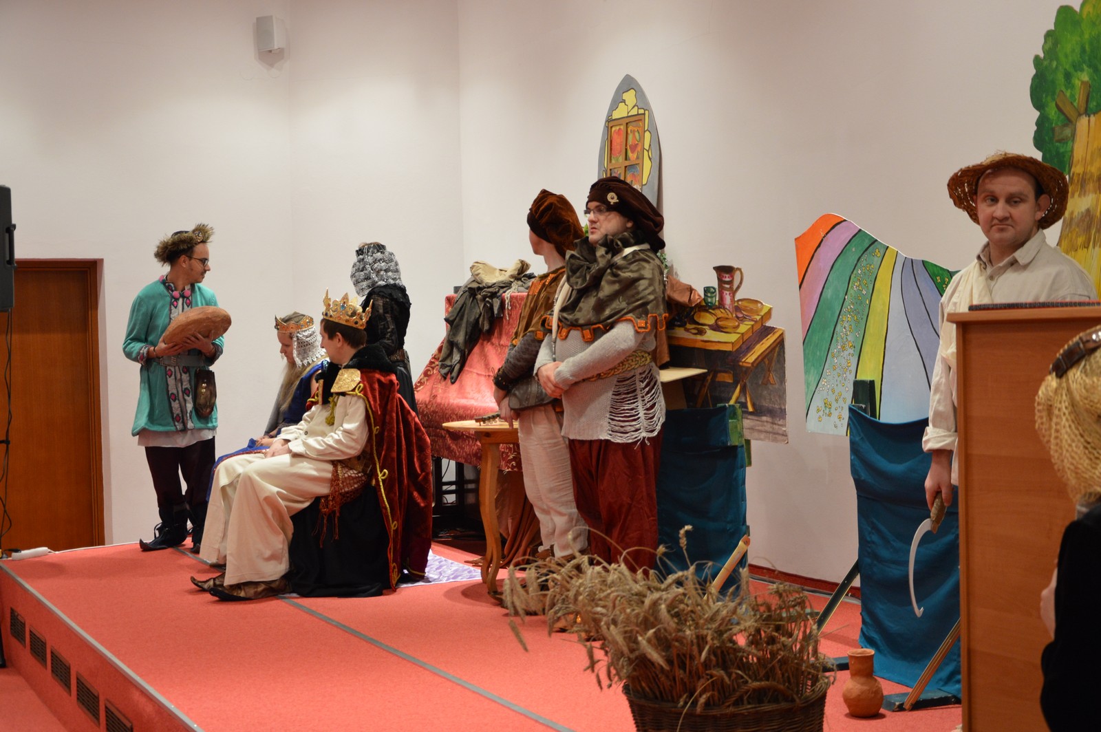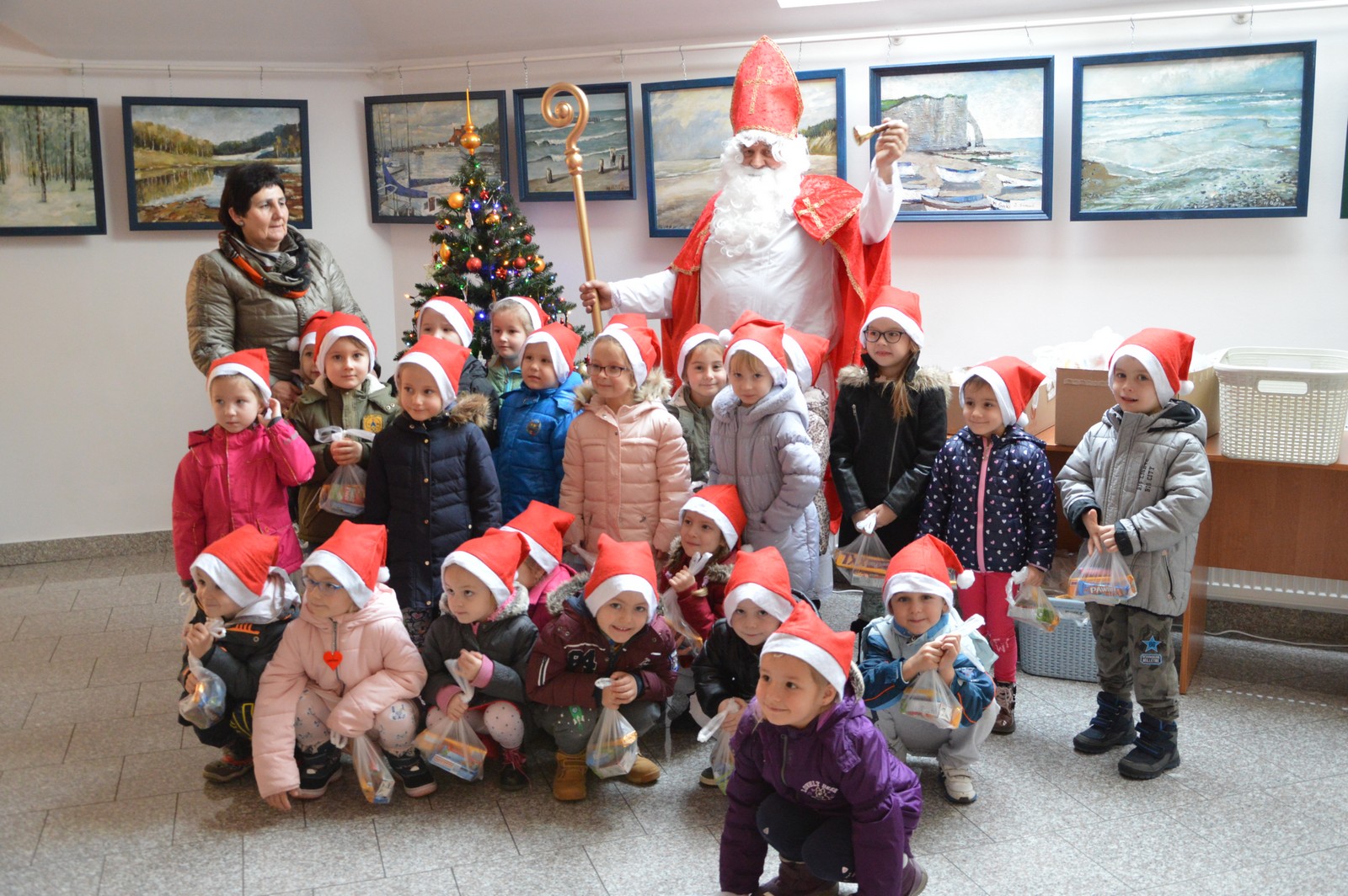 W oczekiwania u na przybycie wyjątkowego gościa dzieci obejrzały przedstawienie pt. Piętka Króla Kazimierza w wykonaniu niepełnosprawnych aktorów z Warsztatu Terapii Zajęciowej w Tymbarku. Legenda opowiada o królu Kazimierzu, który w stroju żebraka przemierzył cały kraj, by przekonać się, jakich ma poddanych. Spektakl dostarczył wielu wzruszeń, a jego przesłaniem są słowa: dobro zawsze powraca. Przepiękne kostiumy i scenografia dopełniły całości. Dzieci z ogromna uwagą i zainteresowaniem obejrzały przedstawienie, o czym świadczyła cisza na sali oraz mocne brawa po jego zakończeniu.