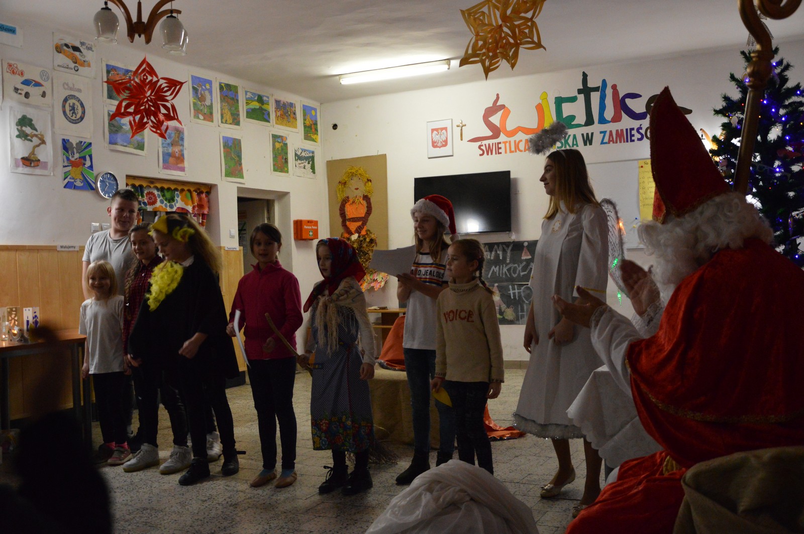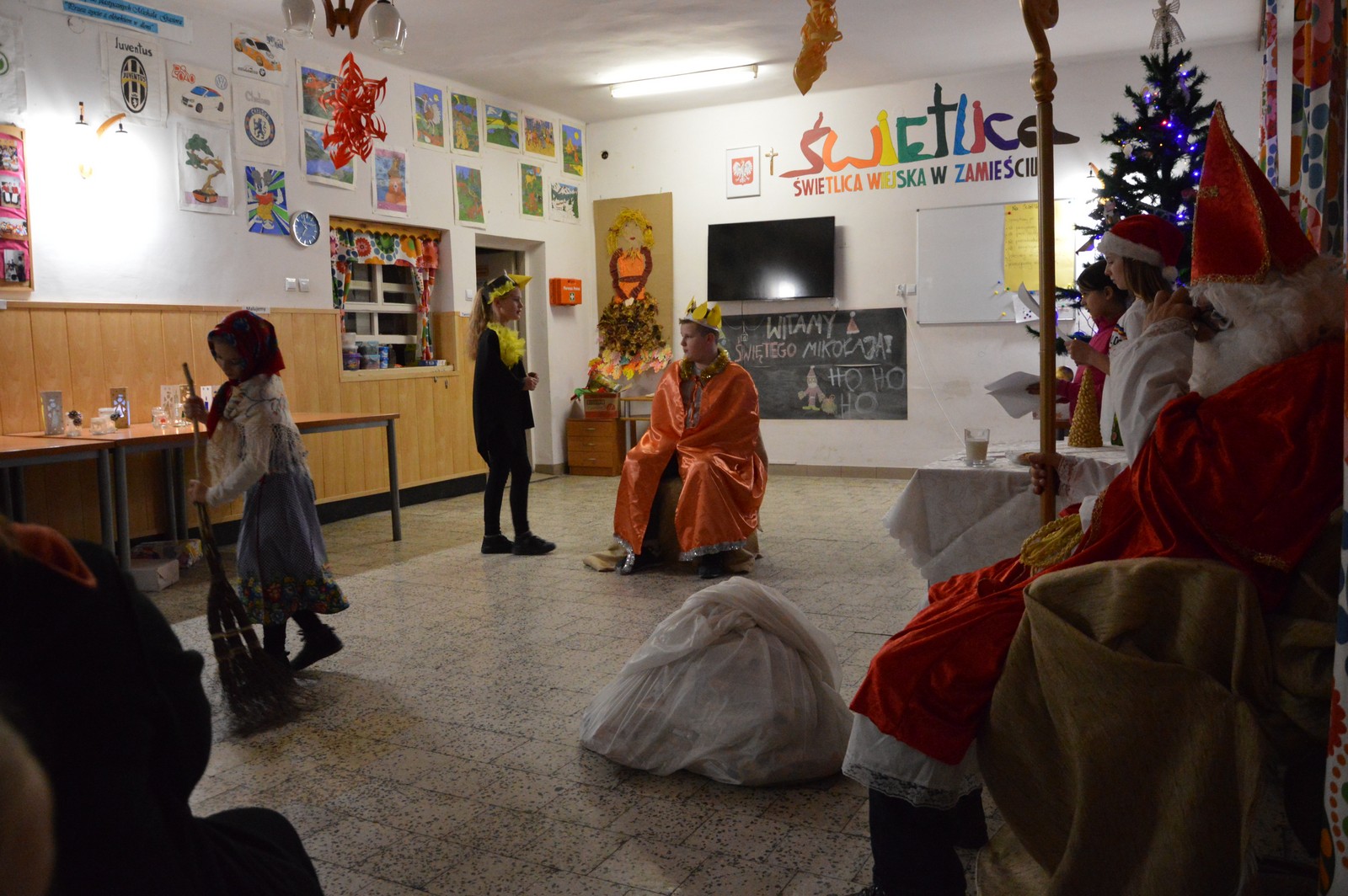Dzisiaj, po wieczornej Mszy świętej,  w Parafialnym Centrum Kultury grzeczne dzieci i młodzież (z Zespół Gloria Mariae, DSM i LSO),  oczekiwały na niezwykłego gościa, na świętego Mikołaja. Czas ten umili uczestnicy zajęć na Świetlicy Wiejskiej w Zamieściu, którzy swój program artystyczny rozpoczęli tańcem, a następnie przedstawili spektakl „Dobry Król”.