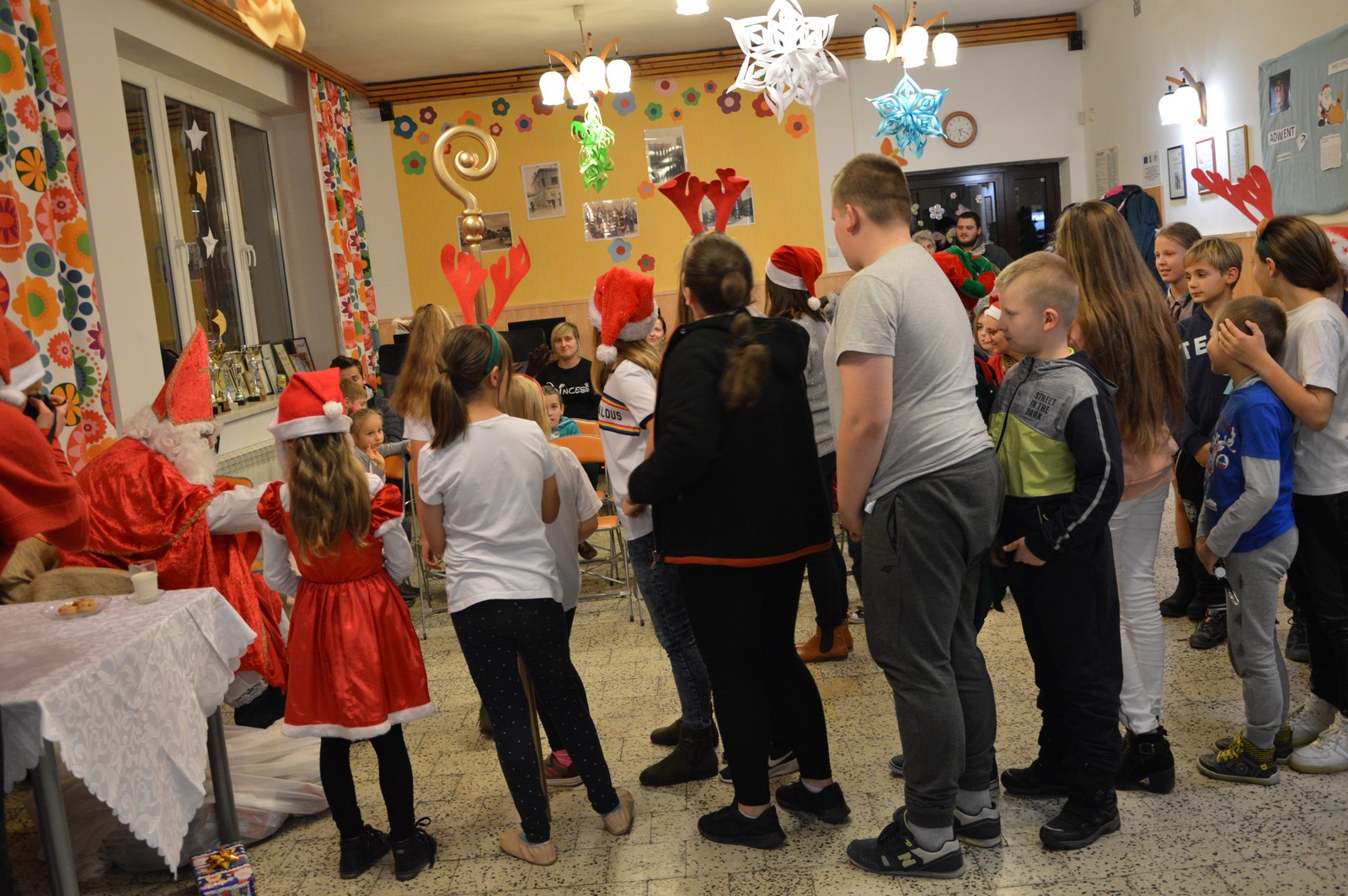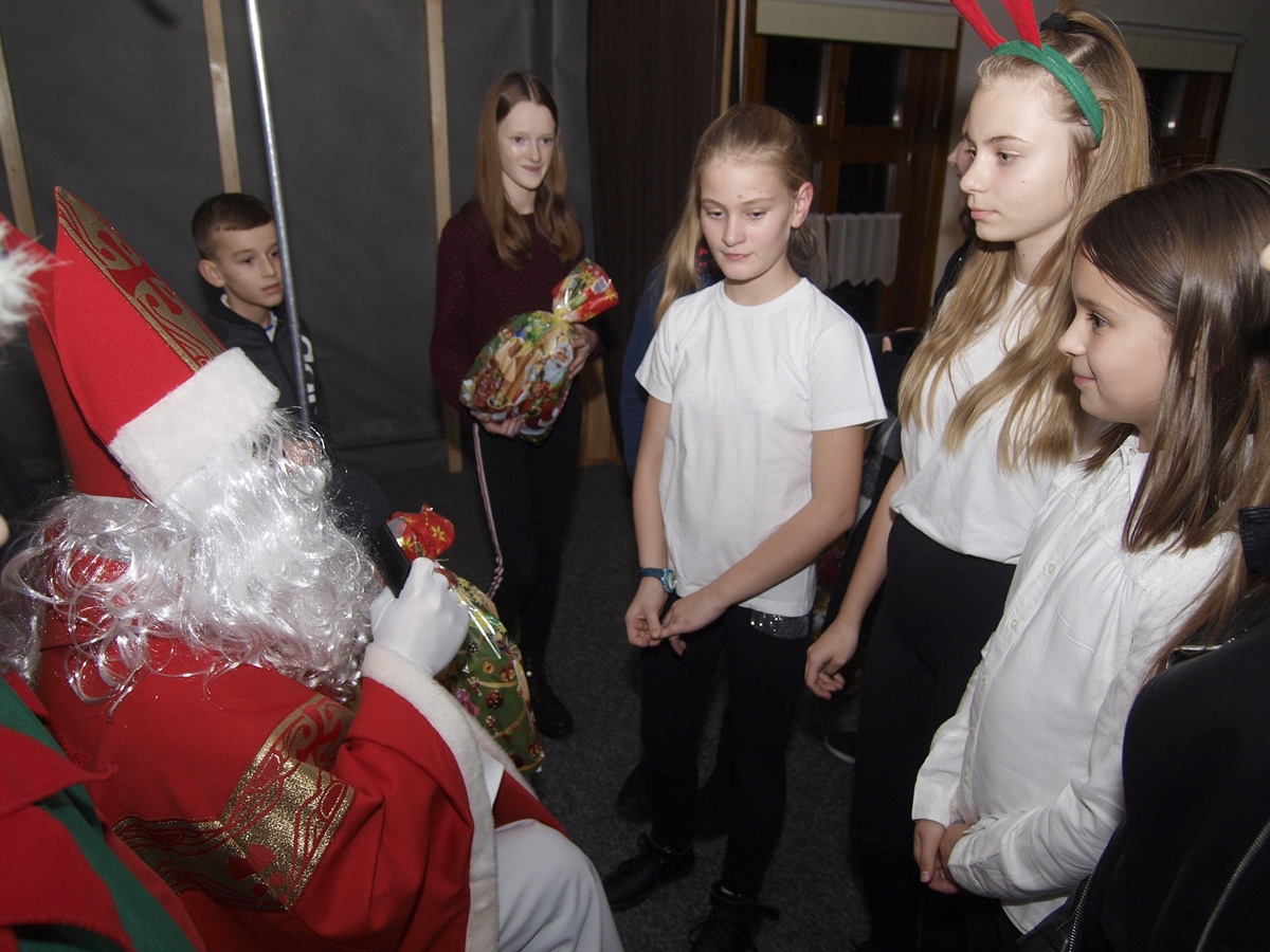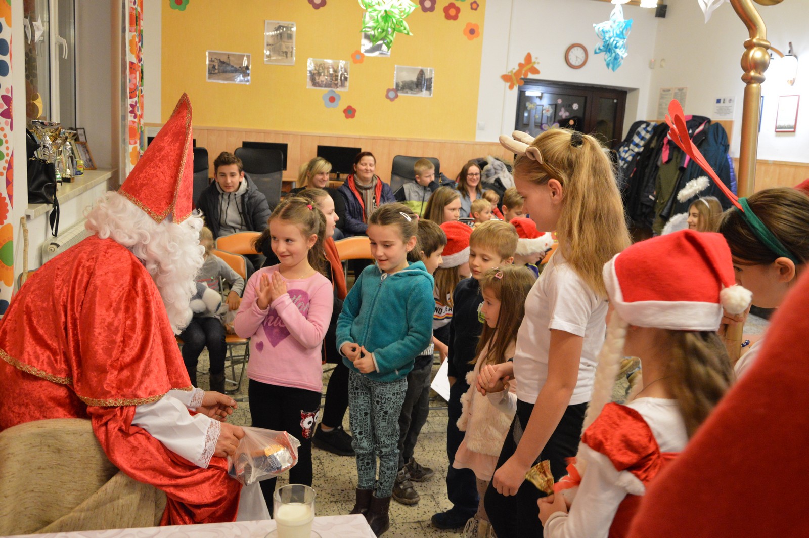 Nie mniej emocji było na świetlicy, gdzie dzieci przygotowały przedstawienie świąteczne pt. Dobry król oraz zademonstrowały taniec, którego nauczyły się na zajęciach tanecznych. Były również słodkie upominki i rozmowy ze św. Mikołajem.