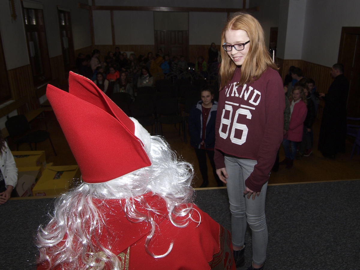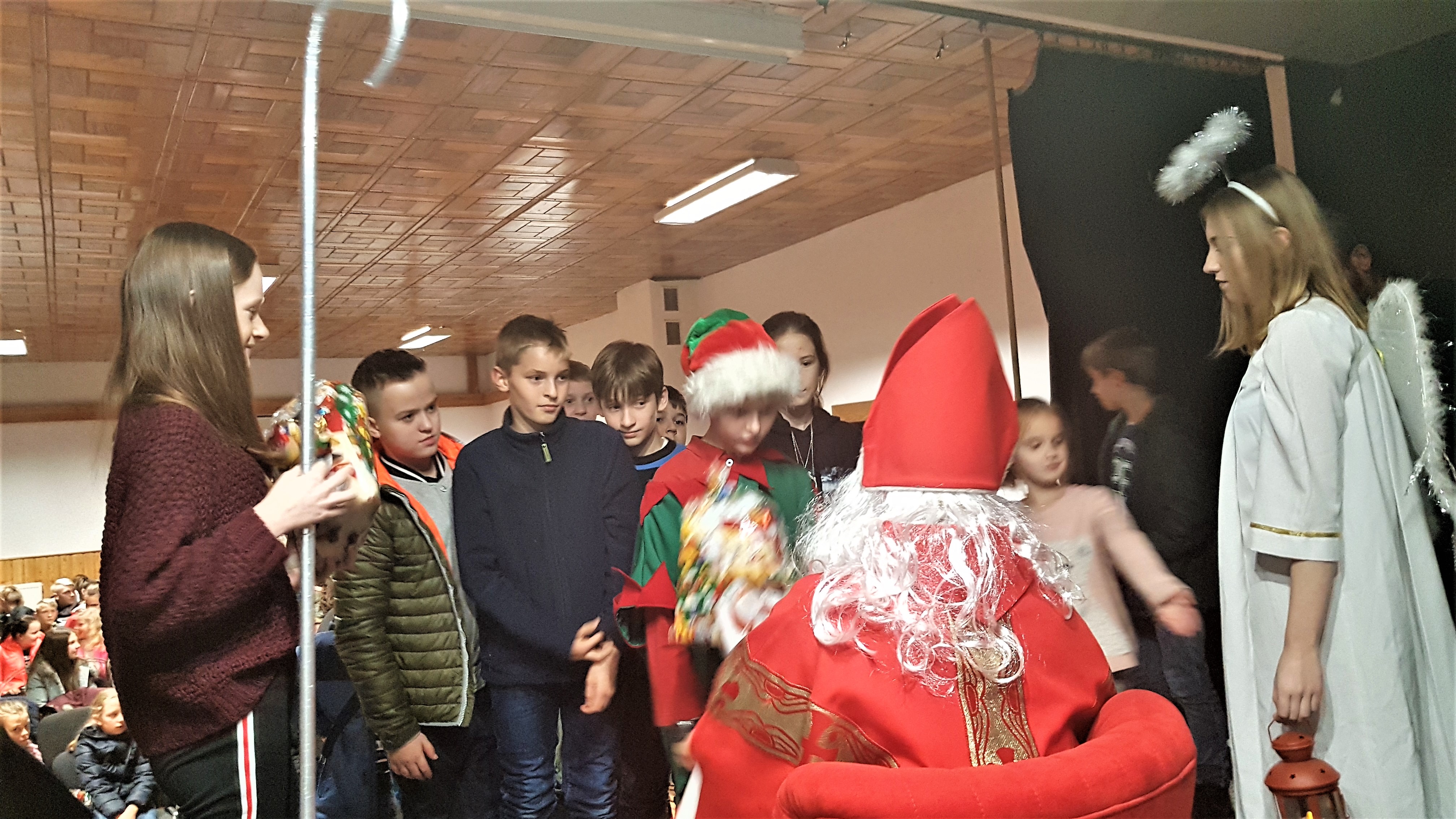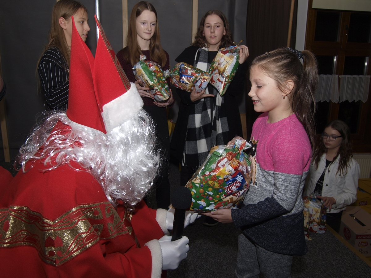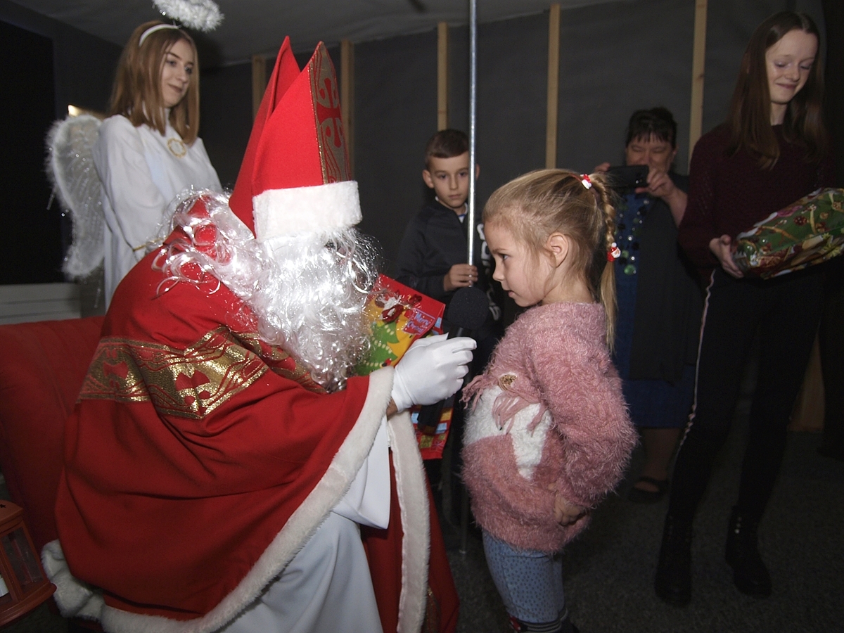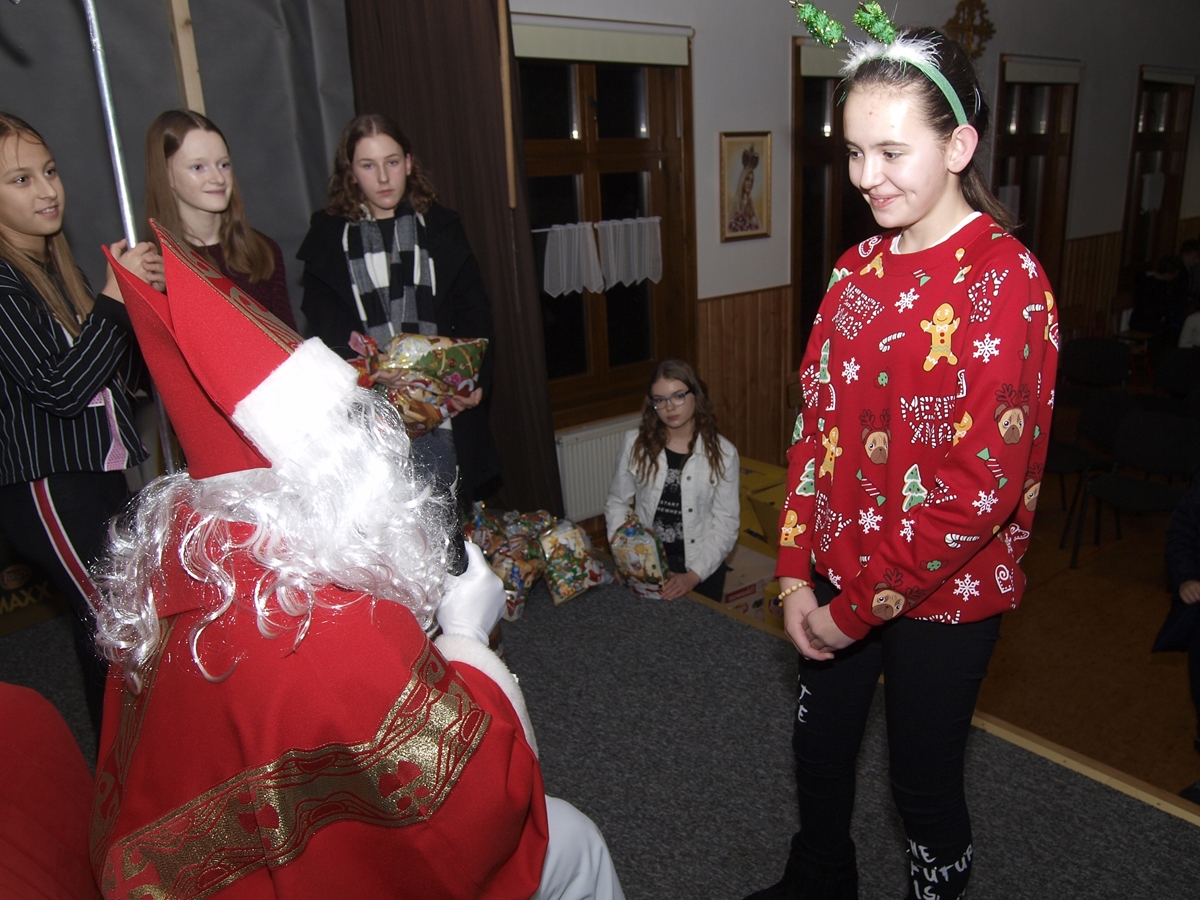 Nastąpiła oczekiwana chwila. Święty Mikołaj po przywitaniu się ze zgromadzonymi zaczął zapraszać do siebie dzieci, aby, po krótkich rozmowach (np. św.Mikołaj pytał się znajomość Dekalogu) wręczyć im prezenty.