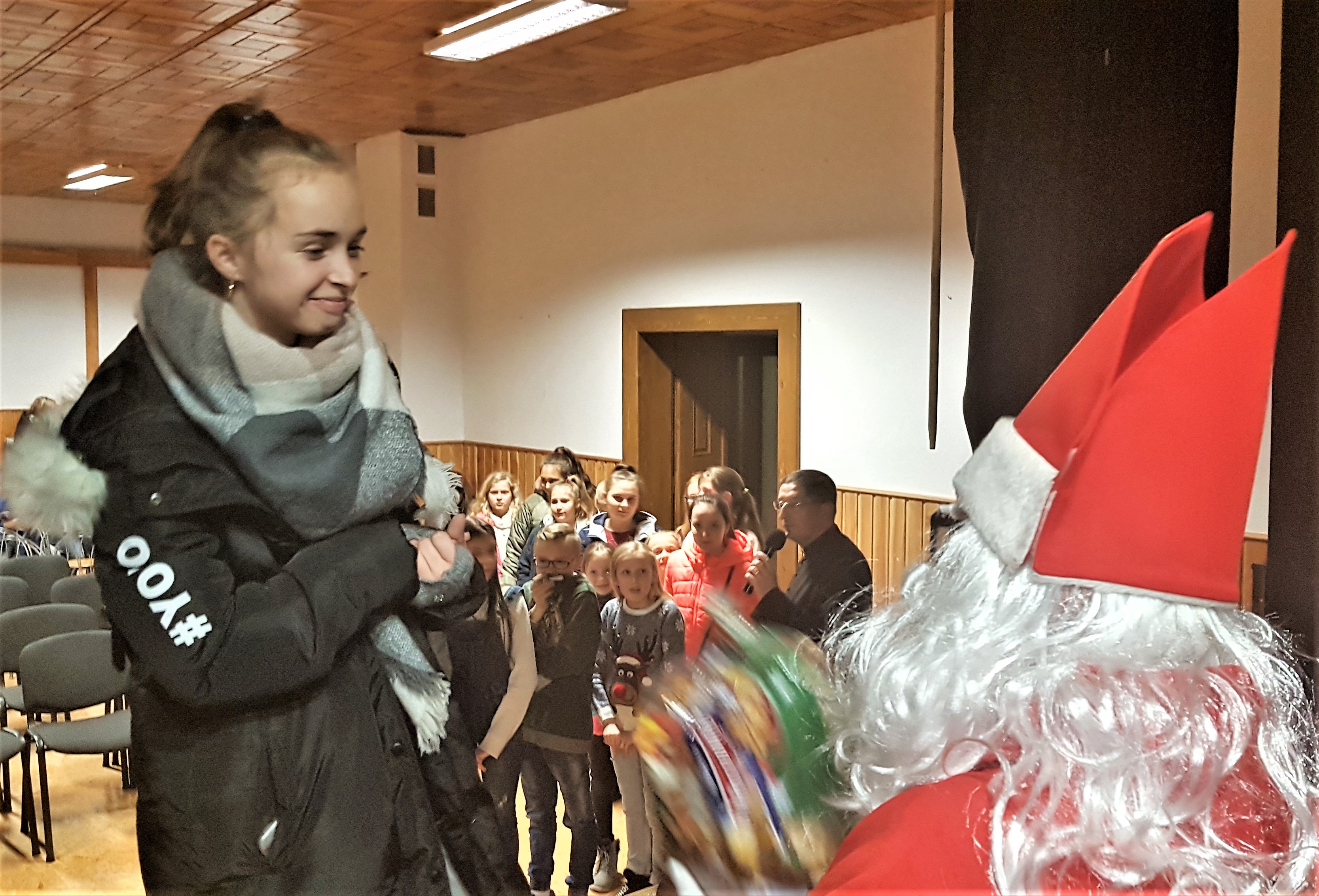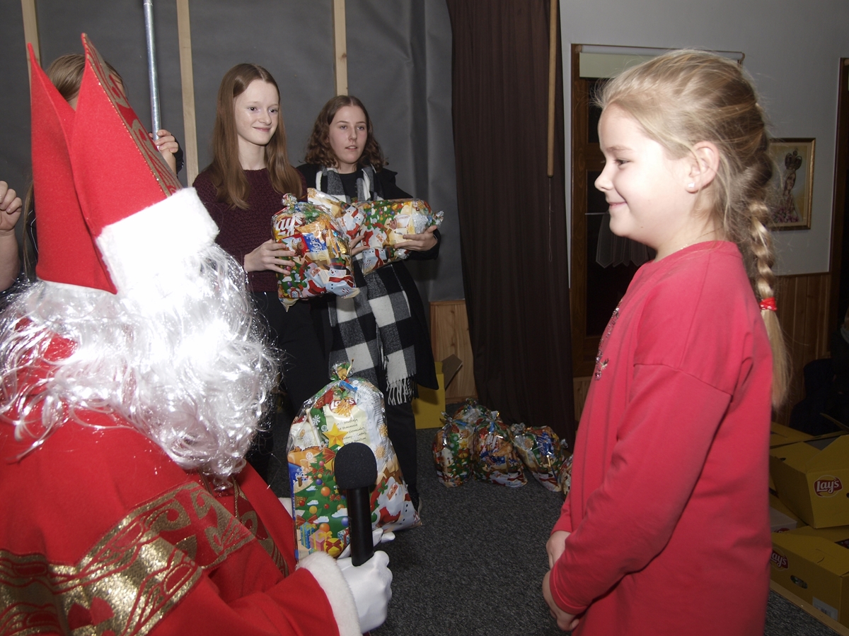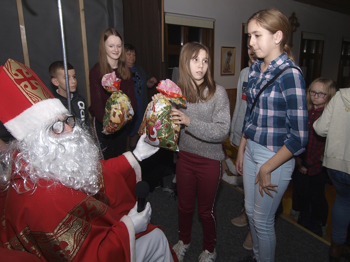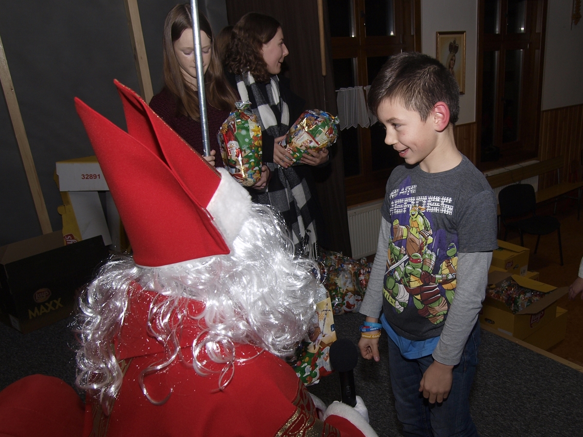 Nastąpiła oczekiwana chwila. Święty Mikołaj po przywitaniu się ze zgromadzonymi zaczął zapraszać do siebie dzieci, aby, po krótkich rozmowach (np. św.Mikołaj pytał się znajomość Dekalogu) wręczyć im prezenty.