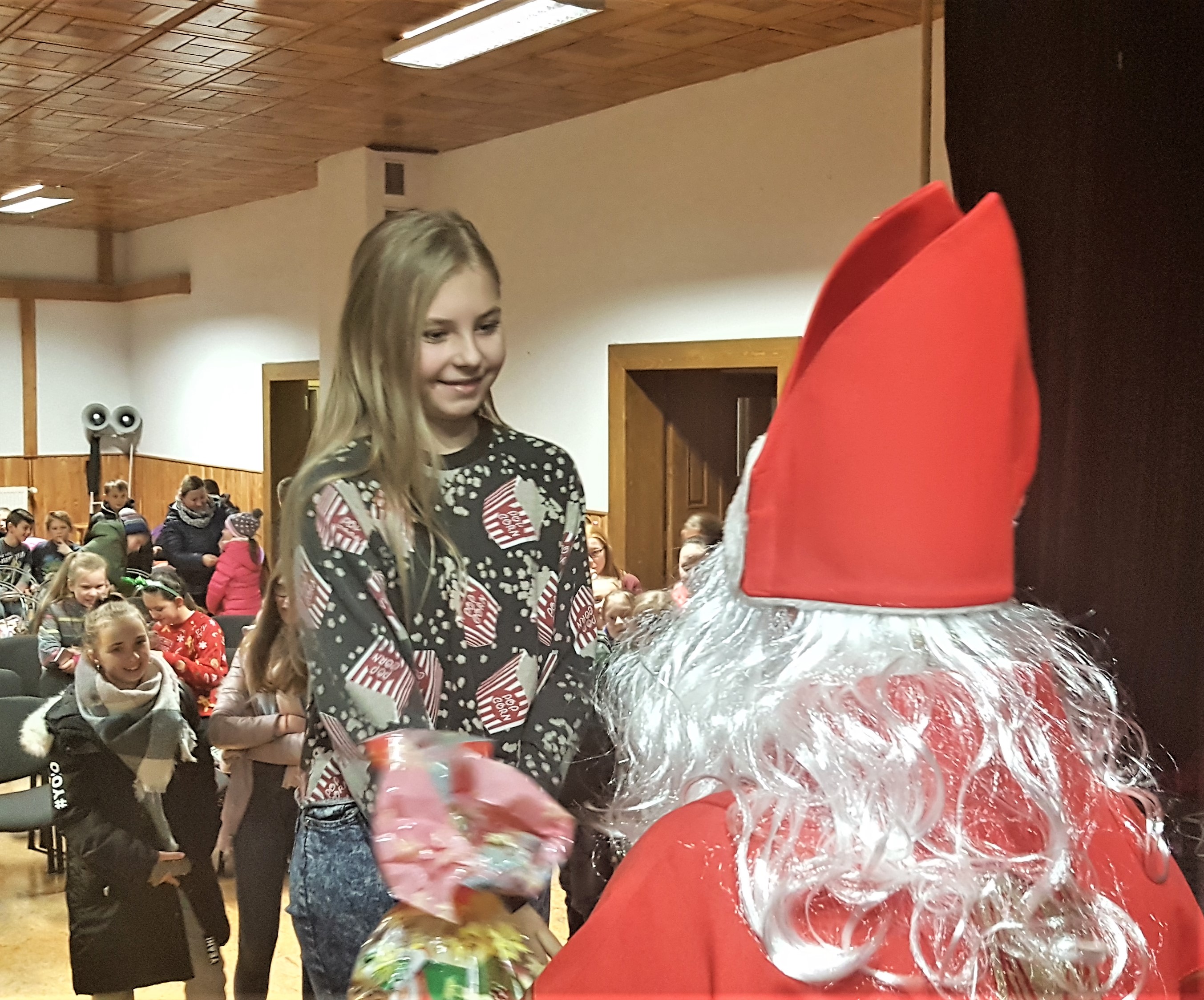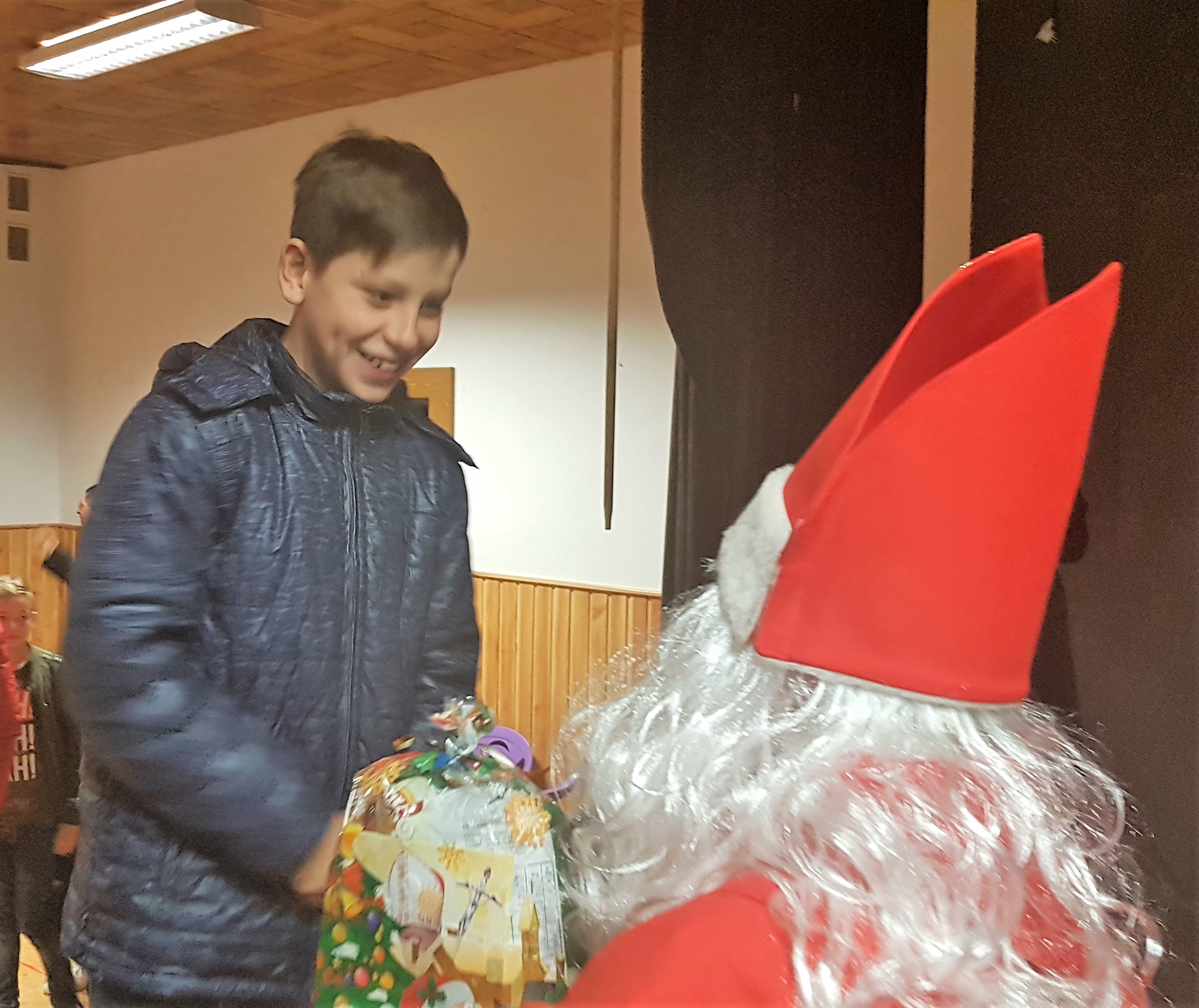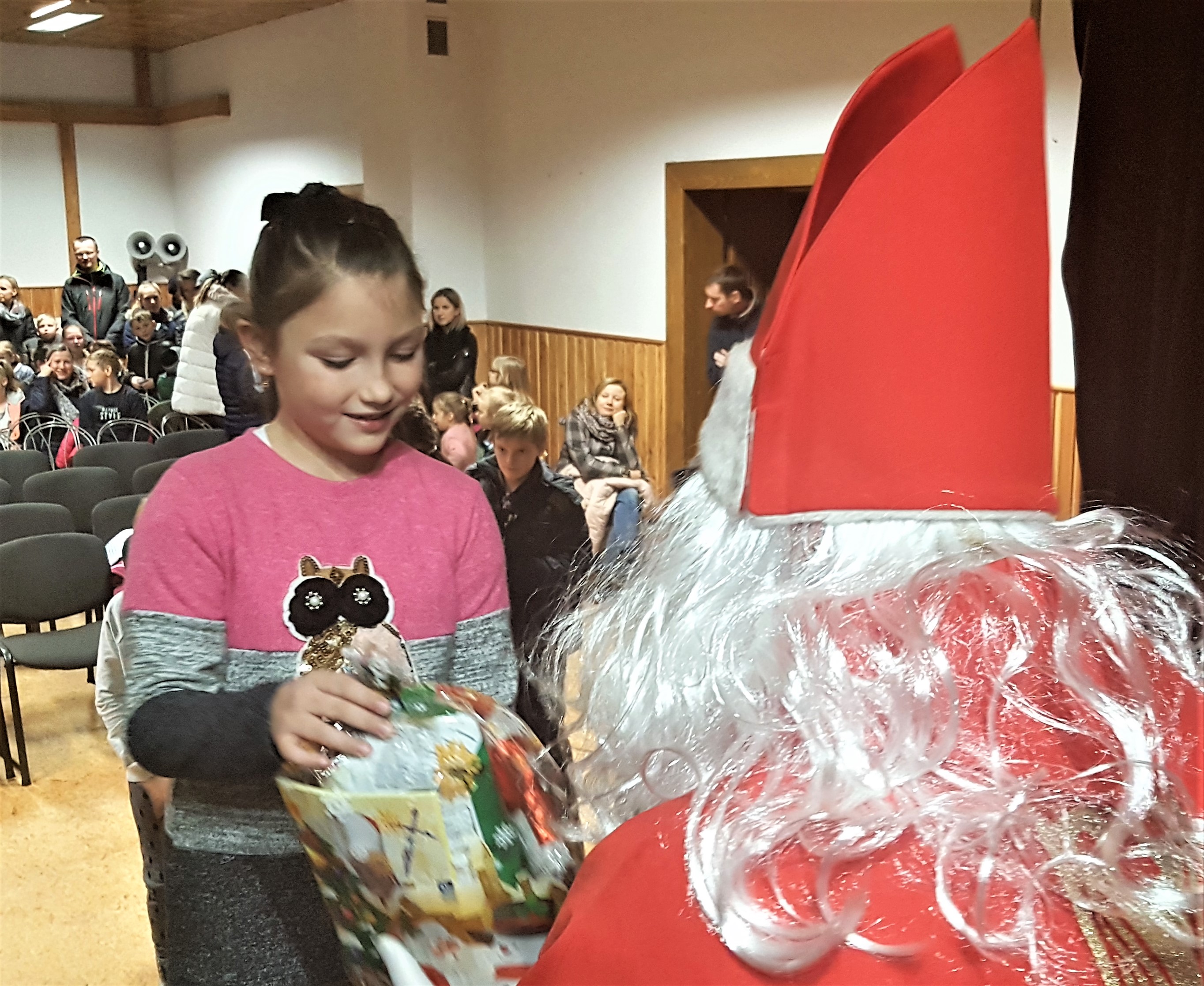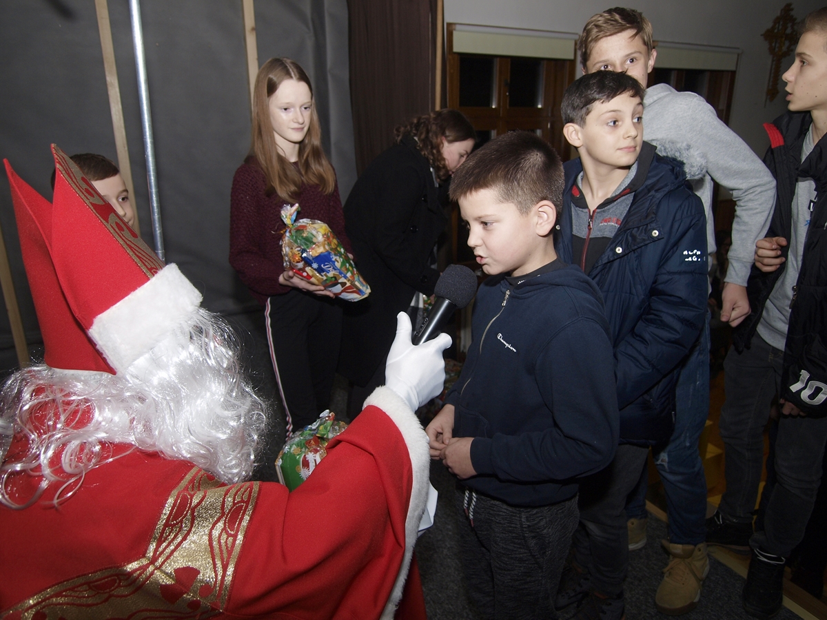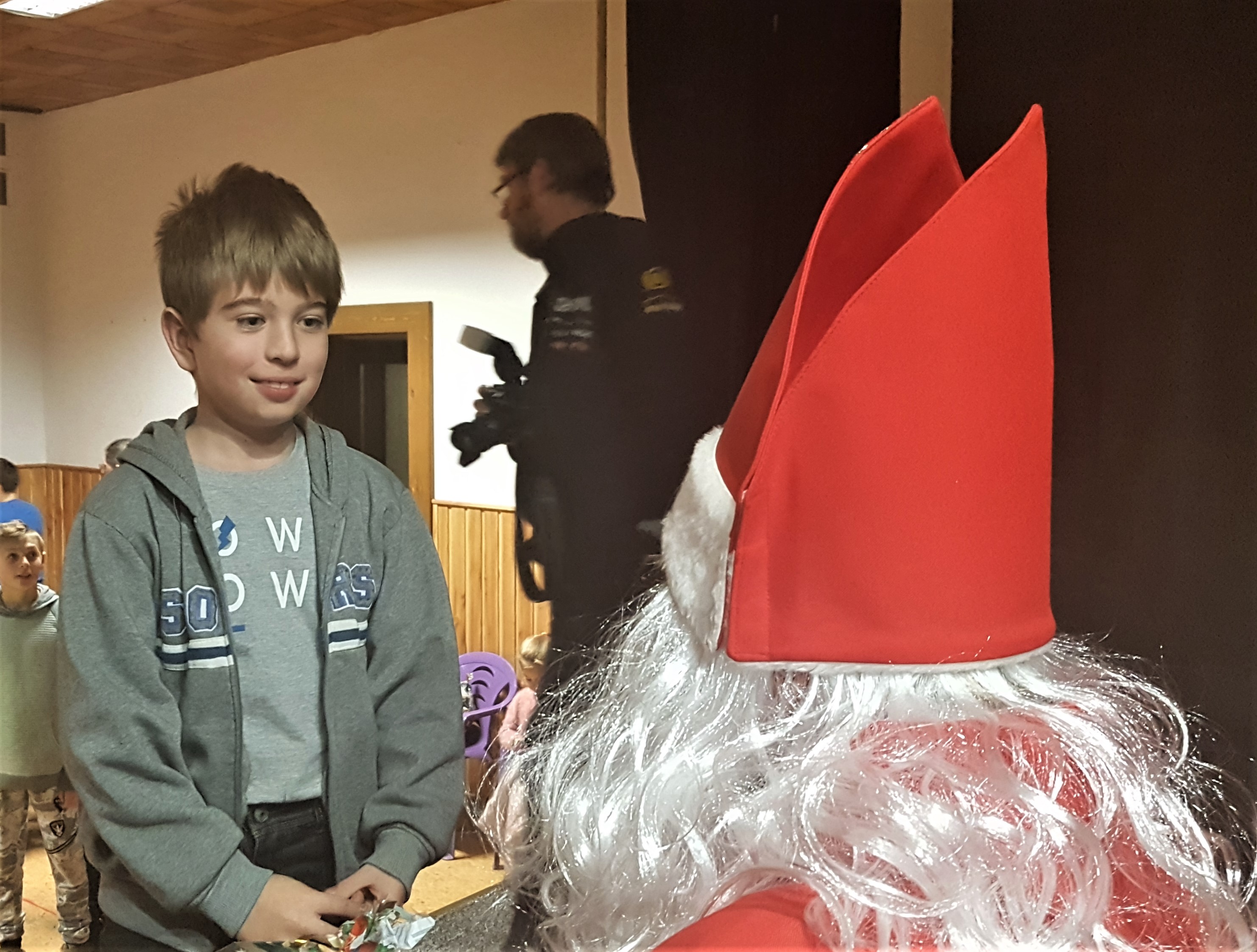 Nastąpiła oczekiwana chwila. Święty Mikołaj po przywitaniu się ze zgromadzonymi zaczął zapraszać do siebie dzieci, aby, po krótkich rozmowach (np. św.Mikołaj pytał się znajomość Dekalogu) wręczyć im prezenty.