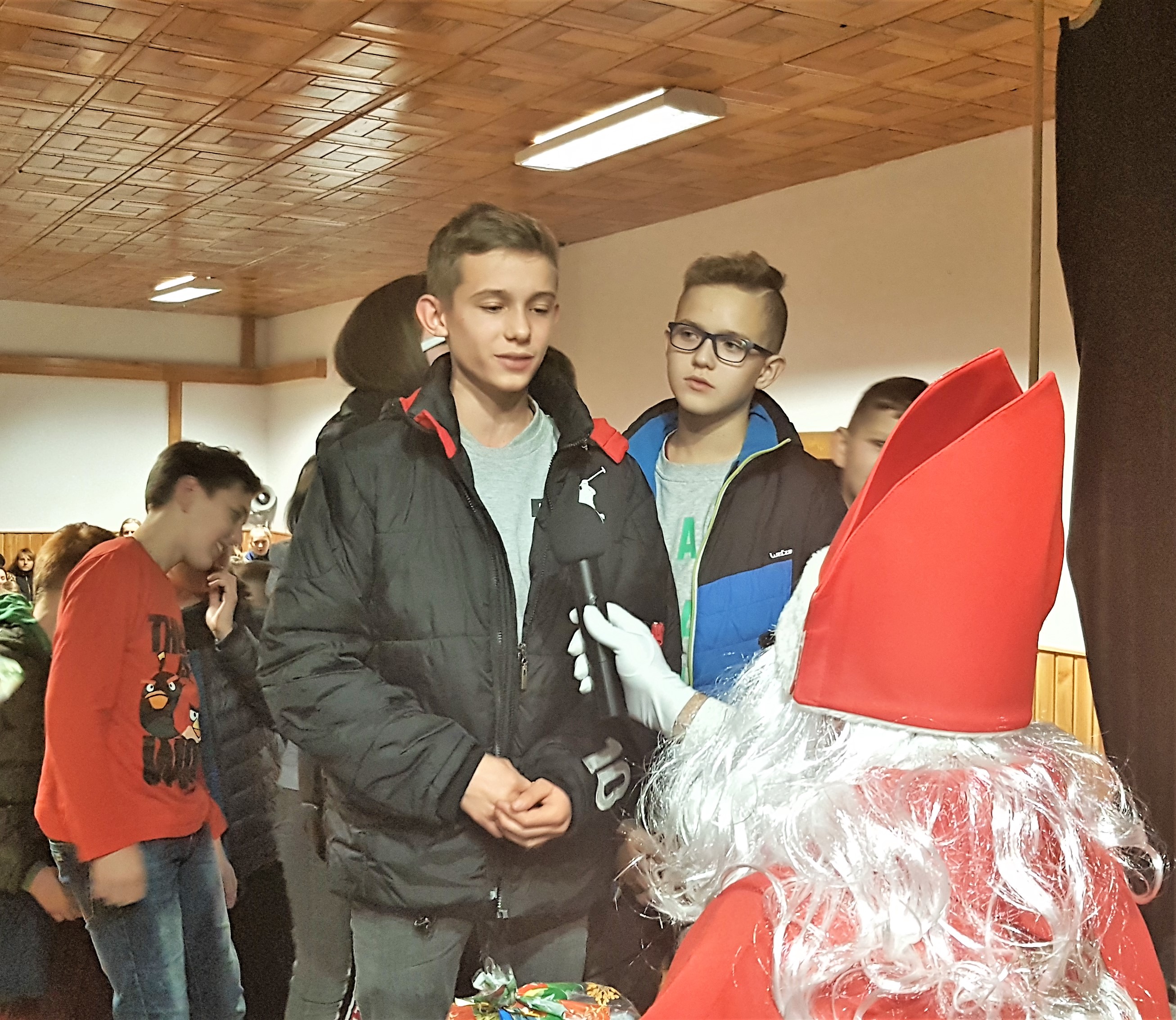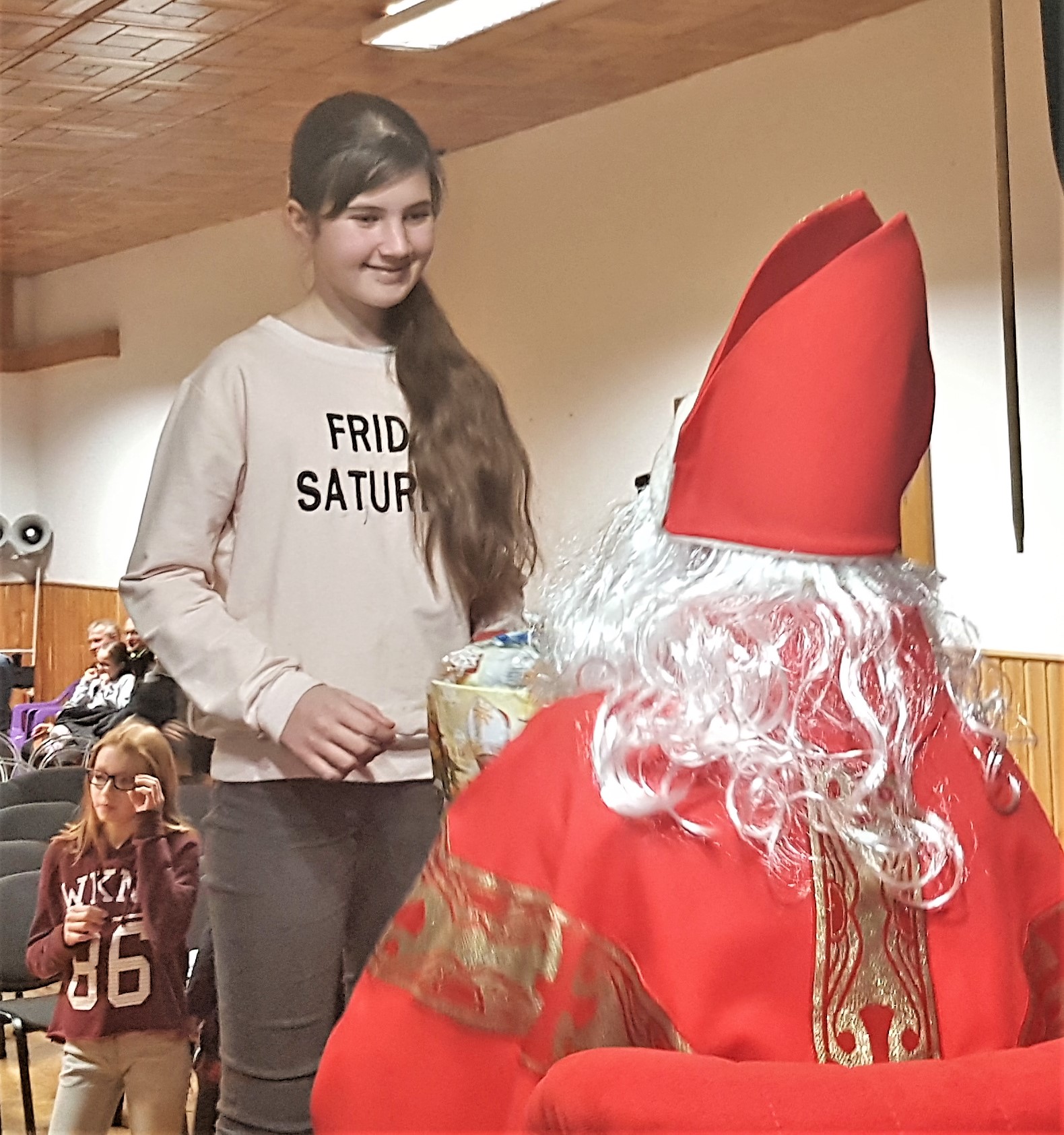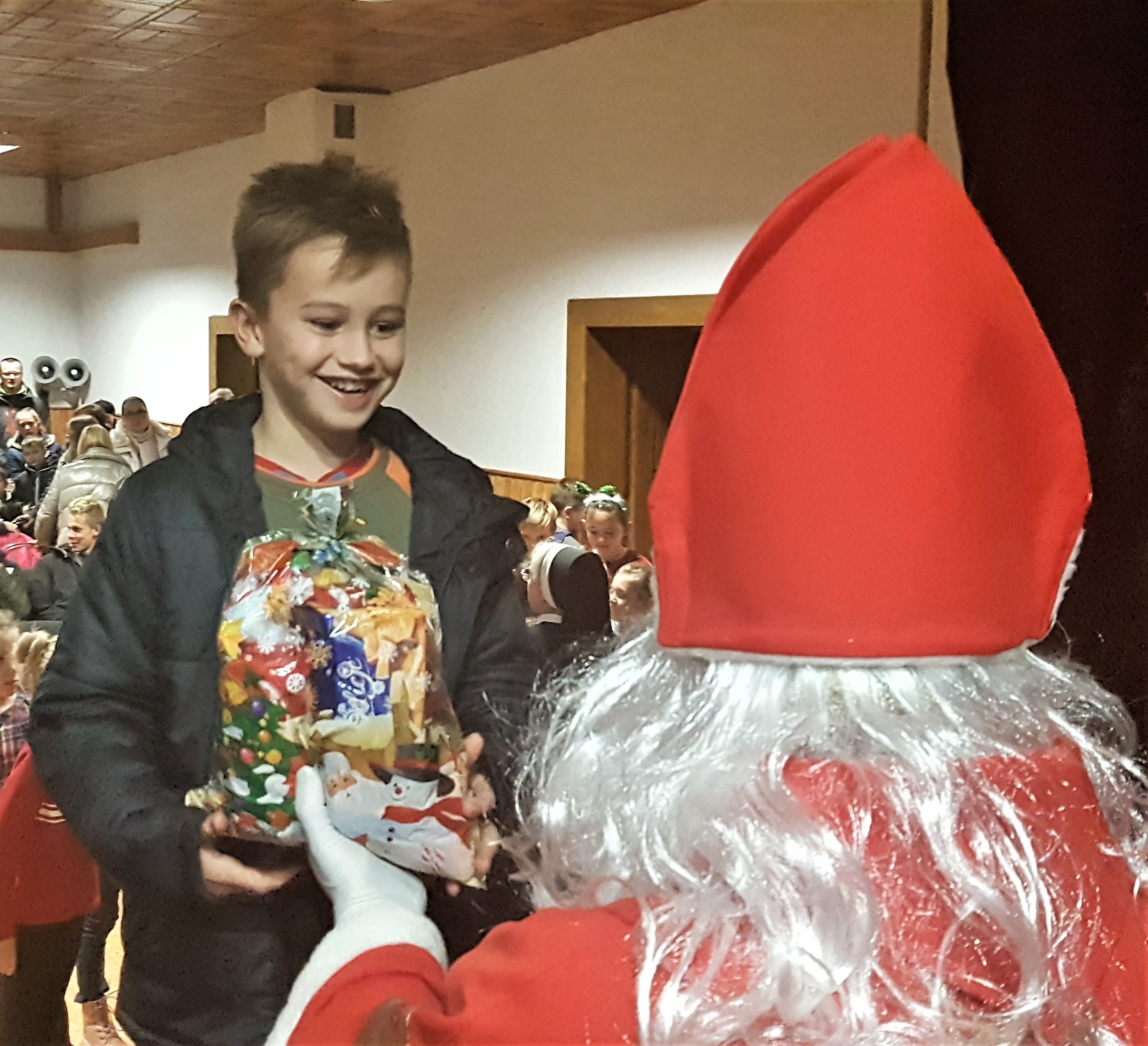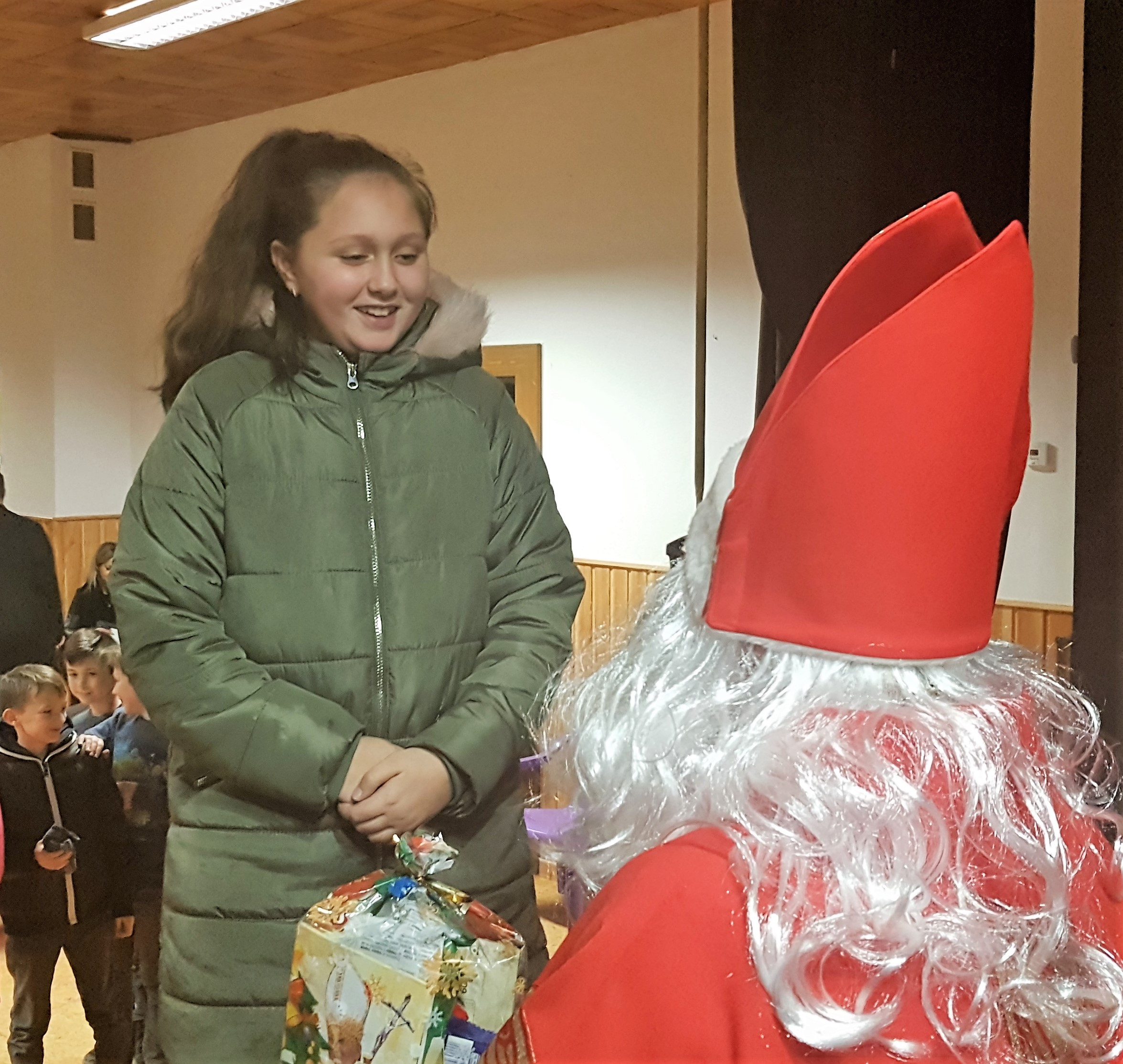 Nastąpiła oczekiwana chwila. Święty Mikołaj po przywitaniu się ze zgromadzonymi zaczął zapraszać do siebie dzieci, aby, po krótkich rozmowach (np. św.Mikołaj pytał się znajomość Dekalogu) wręczyć im prezenty.