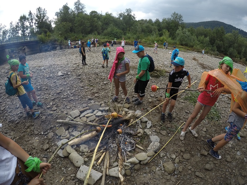 Podczas kolejnych dni uczestnicy poznawali zasady bezpieczeństwa podczas podróży i wycieczek górskich oraz brali udział w biwaku. Odbyły się dwie wycieczki rowerowe, pierwsza wiodła drogami osiedlowymi w okolicach Tymbarku, a na drugą przejechaliśmy autokarem do Zalesia, skąd wyruszyliśmy na podbój górskich szlaków i leśnych ścieżek. Celem było nie tylko pokonanie wyznaczonej trasy, ale także doskonalenie umiejętności jazdy na rowerze w terenie. Nie było łatwo, jednak wszyscy uczestnicy doskonale się bawili, obeszło się również bez większych awarii i strat w sprzęcie.