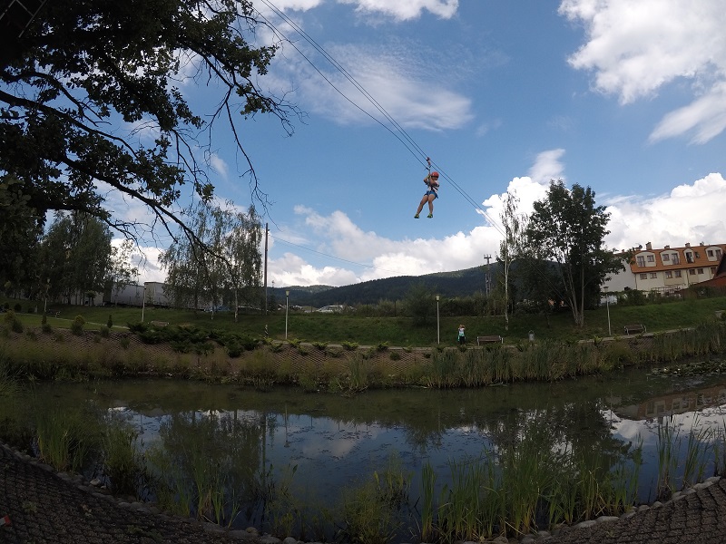 Najwięcej adrenaliny dostarczyły czwartkowe zajęcia, podczas których uczestnicy poznali najważniejsze zasady bezpieczeństwa w górach, które prowadzili przewodnicy górscy oraz ratownik GOPR. Po intensywnym „szkoleniu” była część główna – ścianka wspinaczkowa, most linowy oraz zjazd na tyrolce (lina przewieszona pomiędzy dwoma punktami na dużej wysokości) nad stawem w tymbarskim parku.