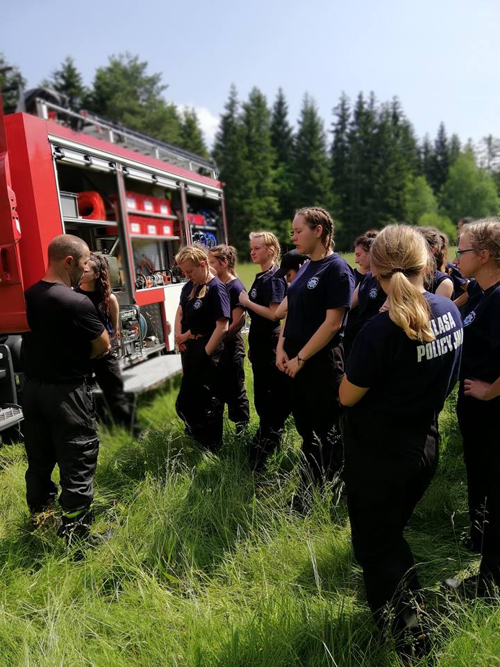 Młodzież klas policyjnych brała udział w obozie szkoleniowym w Słopnicach w dniach 4 – 8 czerwca 2018 roku. Zajęcia dla uczniów prowadzone były przez instruktorów służb mundurowych. Funkcjonariusze Karpackiego Oddziału Straży Granicznej w Nowym Sączu zademonstrowali wyposażenie, broń i sprzęt, którego używają w czasie służby. Instruktorzy z Komendy Powiatowej PSP w Limanowej i Ochotniczej Straży Pożarnej w Słopnicach Dolnych. Druhowie prowadzili szkolenie z zasad użycia sprzętu ratowniczego, prowadzenia akcji gaszenia pożarów, rozwijania linii gaśniczych w terenie, udzielania pierwszej pomocy, działania z użyciem sprzętu ratowniczego oraz ochrony osobistej i dróg oddechowych. Bardzo ciekawe zajęcia przeprowadziła Podhalańska Grupa GOPR, sekcja Limanowa. W czasie zajęć goprowcy pokazali sprzęt ochrony osobistej, sprzęt ratowniczy, szkoleniowy, łączności i nawigacji satelitarnej. Przeprowadzili także szkolenie dla młodzieży na temat bezpieczeństwa w górach, opowiedzieli o zadaniach jakie wykonują ratownicy, zademonstrowali sprzęt wysokościowy i odbyli z uczniami szkolenie na linach. Na obozie zajęcia przeprowadzili także instruktorzy z Auto Moto Klubu w Limanowej /AMK/. Na obozowisko przybyli samochodami ratowniczymi ze specjalistycznym sprzętem służącym do ratowania życia zawodników podczas sportowych imprez samochodowych. Instruktorzy z AMK Limanowa przeprowadzili szkolenie z zakresu ratownictwa medycznego, drogowego i udzielania pomocy przedlekarskiej. Dwa dni na obozie przeznaczone zostały na zajęcia z funkcjonariuszami Komendy Powiatowej Policji w Limanowej z Wydziału Prewencji, Wydziału Ruchu Drogowego i Wydziału Dochodzeniowo – Śledczego oraz z Wojewódzkiej Komendy Policji w Krakowie. Nadzór nad zajęciami prowadzonymi przez funkcjonariuszy KPP w Limanowej sprawowała rzecznik prasowy mł. asp. Jolanta Mól. Funkcjonariusze Policji odbyli zajęcia z rozpoznawania zagrożeń, technik interwencji, środków przymusu bezpośredniego, zabezpieczenia miejsca zdarzenia, elementów kryminalistyki, zasad ruchu drogowego oraz musztry. Uczniowie brali również udział w szkoleniu prowadzonym przez instruktorów z Wyższej Szkoły Bezpieczeństwa Publicznego i Indywidualnego w Krakowie. Tematyka zajęć obejmowała między innymi techniki konwojowania. Interesujące zajęcia przeprowadzili funkcjonariusze Straży Leśnej. Przedstawili oni młodzieży przepisy związane z poruszaniem się po lesie, używania pojazdów mechanicznych, pozyskiwania zasobów leśnych oraz ochrony środowiska. Pierwszy dzień to rozbijanie obozowiska i poprawa kondycji poprzez wycieczkę turystyczną na Mogielicę. Oprócz tego uczniowie uczestniczyli także w zajęciach dodatkowych z orientacji w terenie, wykorzystaniem mapy i kompasu, strzelectwa i sztuk walki wręcz. Były rozgrywki w piłkę nożną i siatkową a także późnym popołudniem wyjazd na basen do Limanowej. Tradycyjnie odbyło się nabożeństwo czerwcowe z zaproszonymi gośćmi. Na zakończenie wspólnie zostały upieczone kiełbaski na grillu.