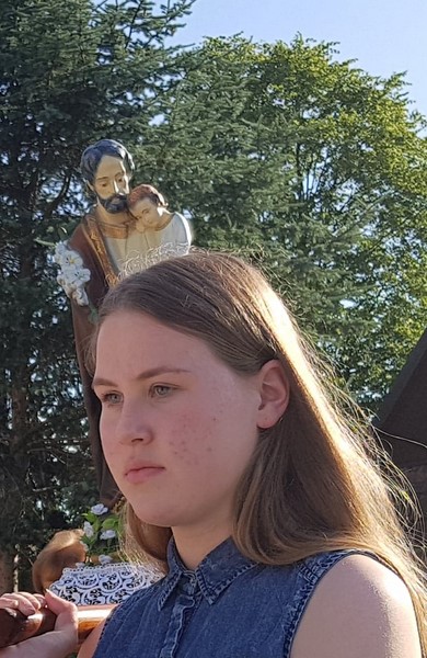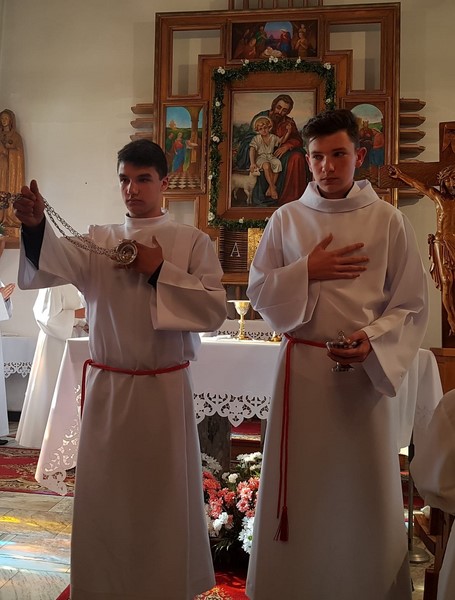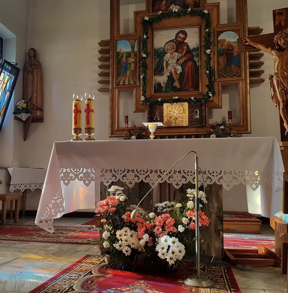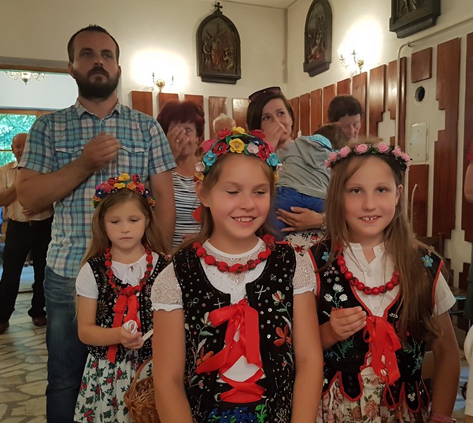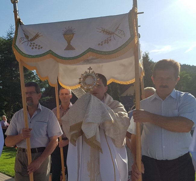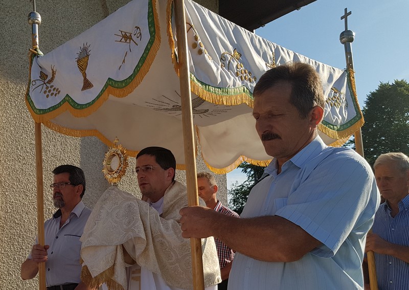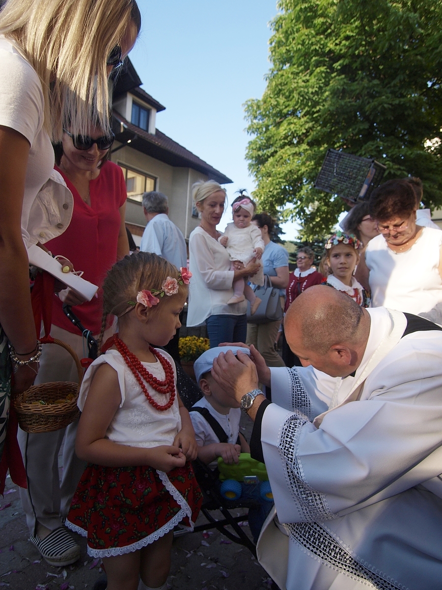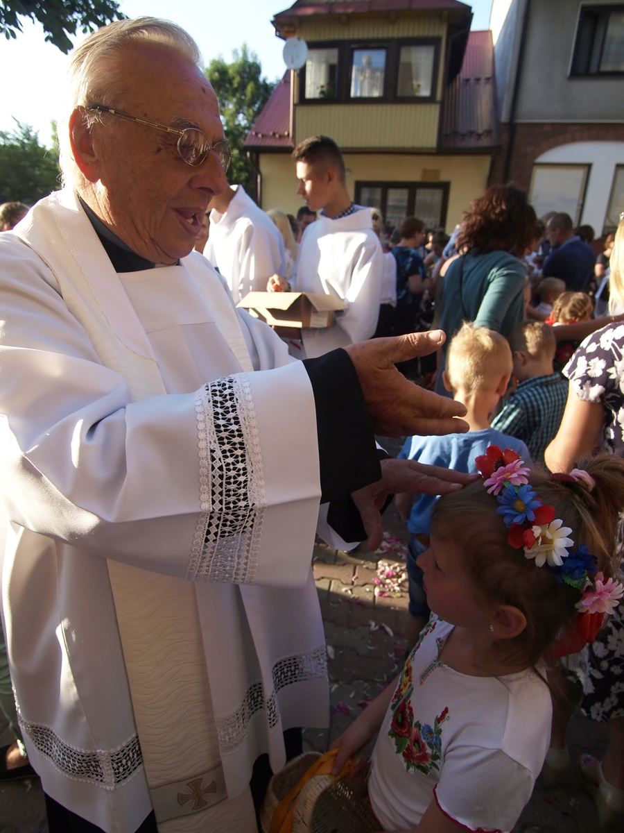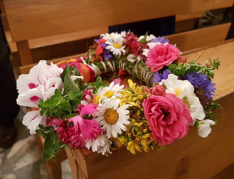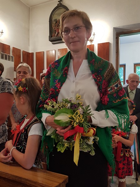 Ksiądz Witold poświęcił również przyniesione wianki sporządzone z kwiatów i ziół leczniczych, które są symbolem ludzkiej pracy, a także utożsamiają dar Boży służący ludziom i wszelkim stworzeniom.