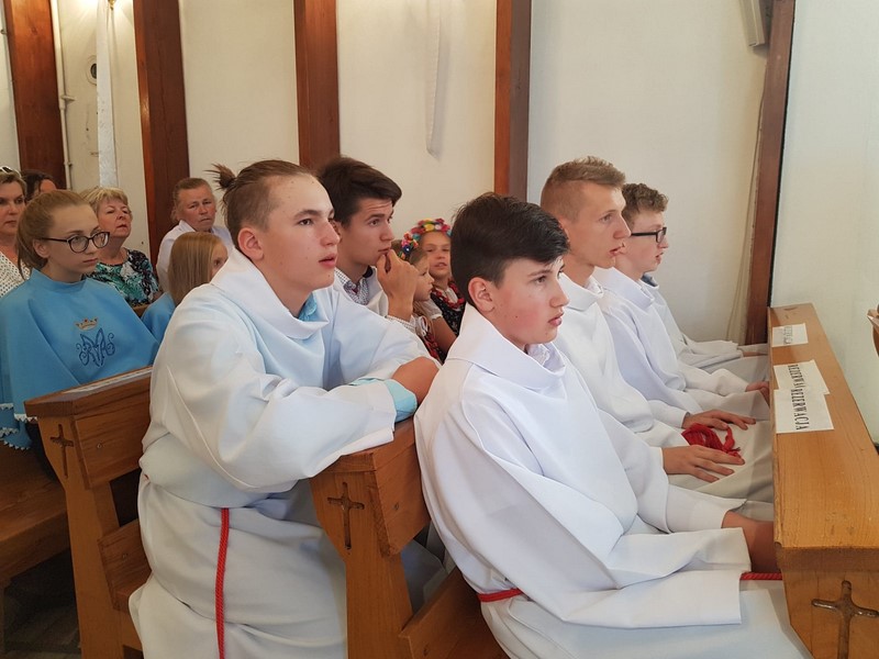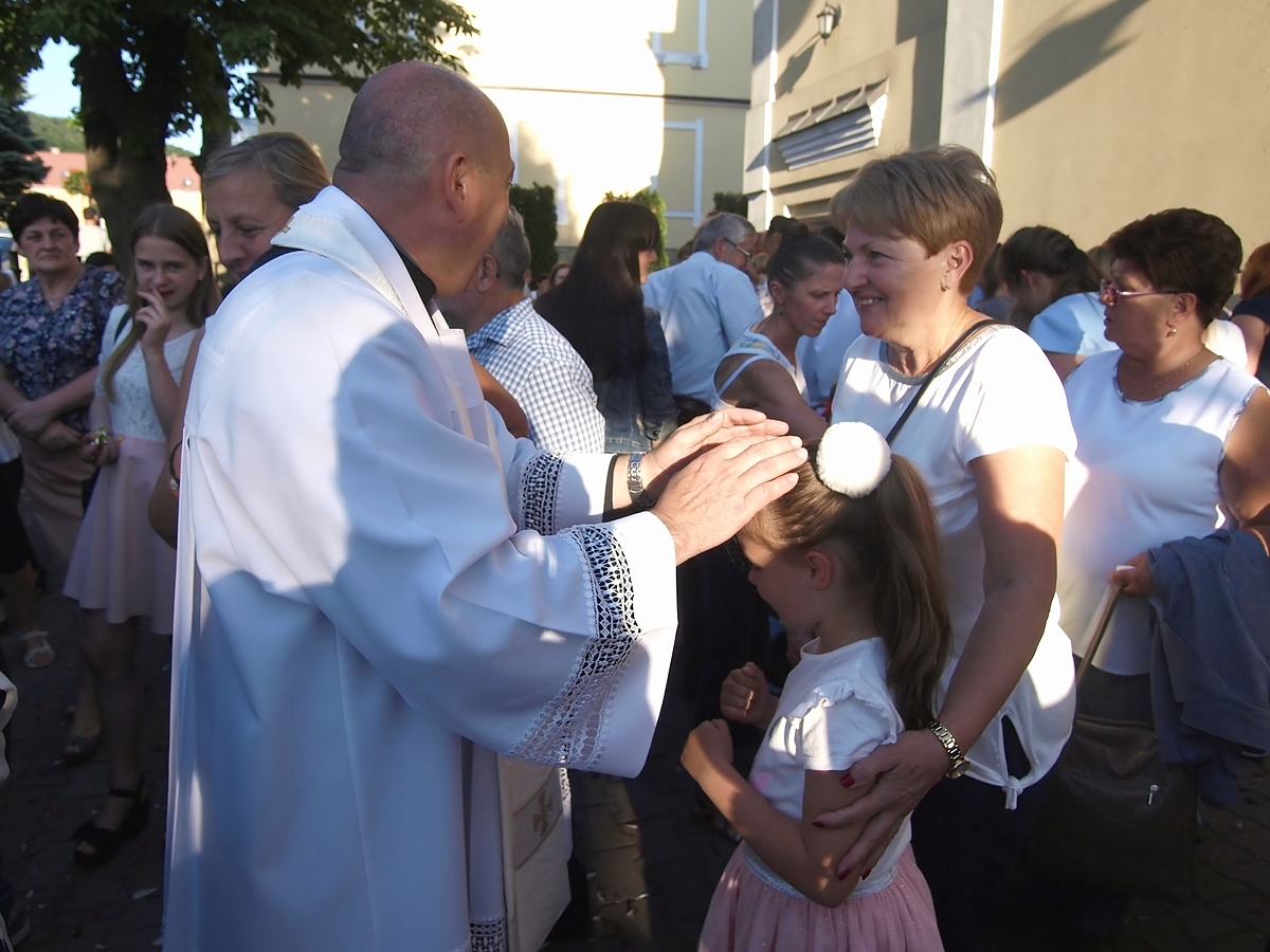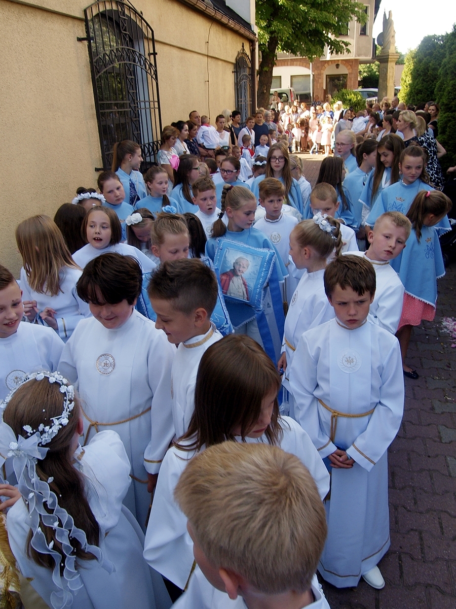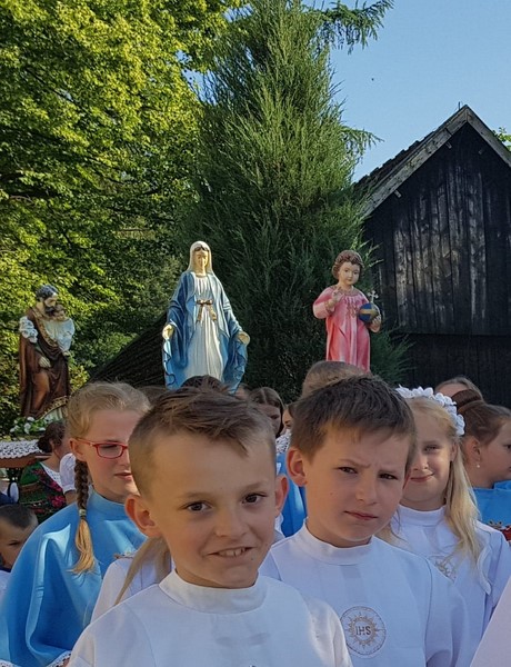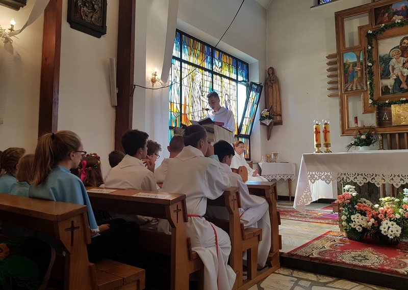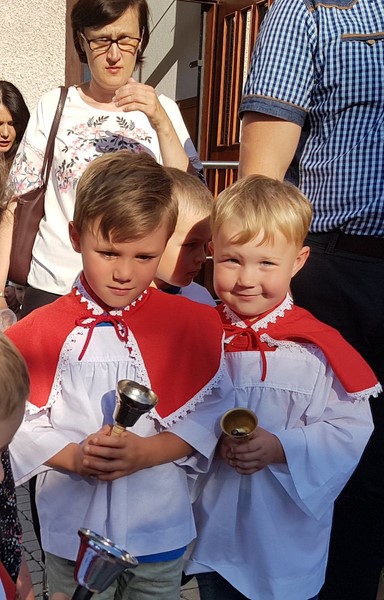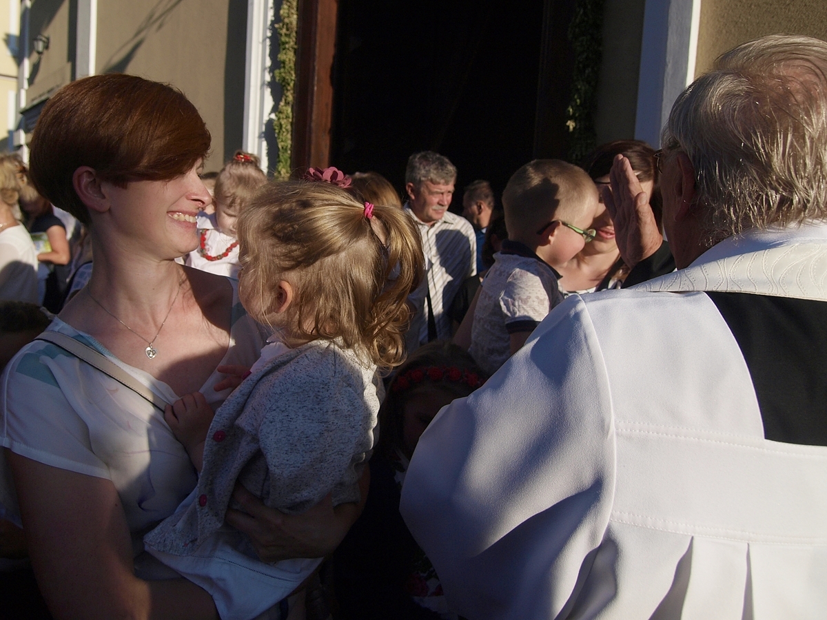 W dzień zakończenia Oktawy Bożego Ciała, czyli okresu w którym po Mszy Św. odbywały się procesje wokół kościoła z Najświętszym Sakramentem, szczególnie modlimy się w intencji dzieci. Tak też było w kaplicy w Piekiełku. Mszy św. przewodniczył ksiądz Witold Warzecha. Na zakończenie miało miejsce błogosławieństwo dzieci, wśród których było bardzo dużo takich, które w czasie Oktawy codziennie brały udział w nabożeństwach (ks.Witold podziękował im oraz wszystkim parafianom z Piekiełka za bardzo liczny, budujący, udział w nabożeństwach). Wśród dzieci lektorzy rozdali cukierki oraz obrazki prymicyjne.