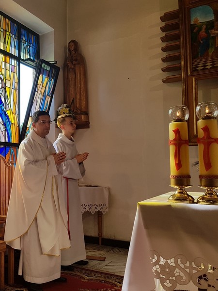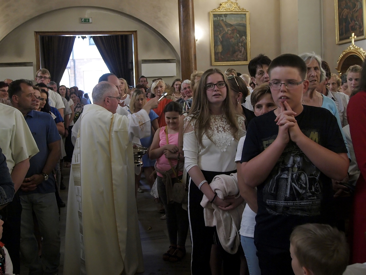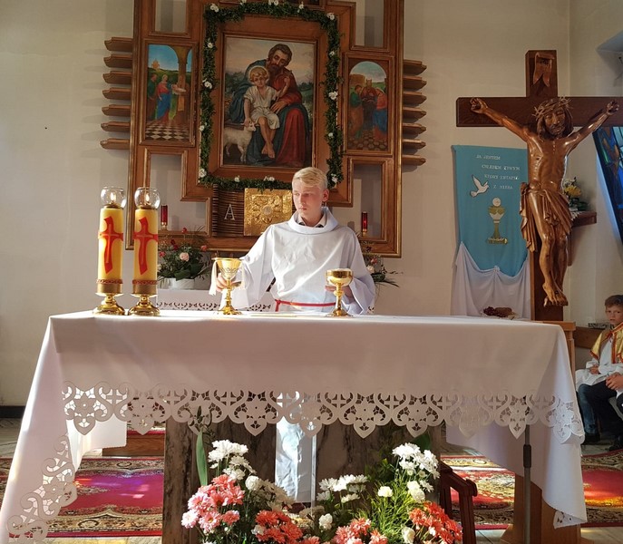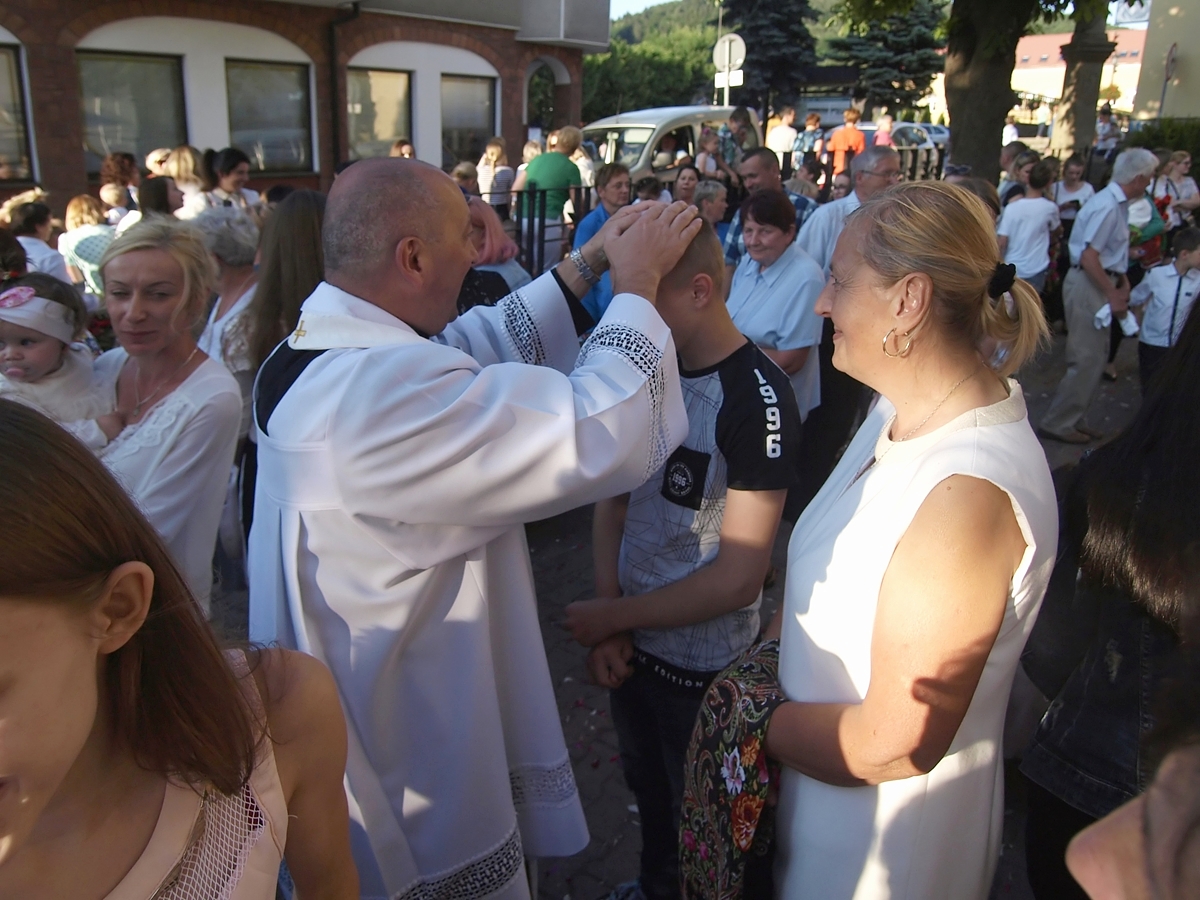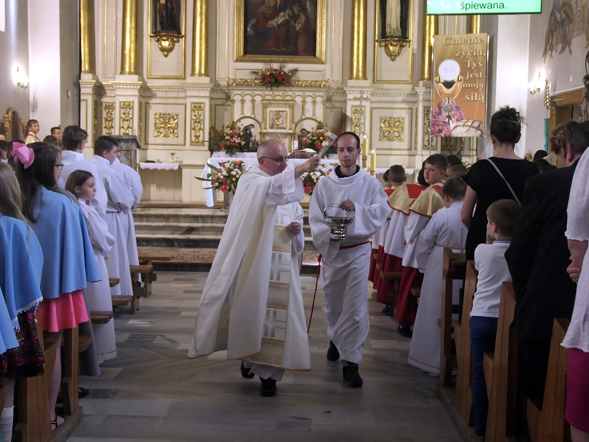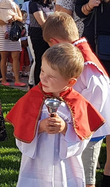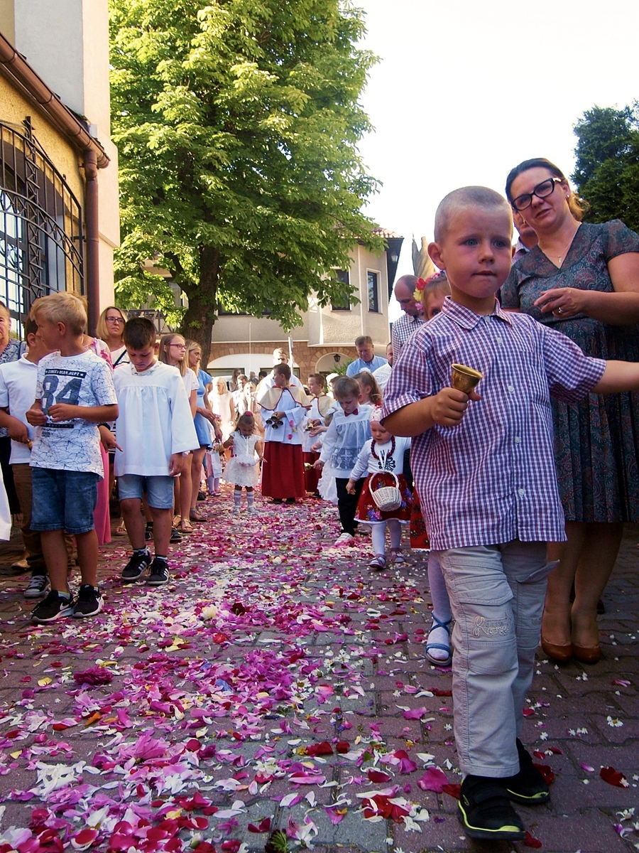 W dzień zakończenia Oktawy Bożego Ciała, czyli okresu w którym po Mszy Św. odbywały się procesje wokół kościoła z Najświętszym Sakramentem, szczególnie modlimy się w intencji dzieci. Tak też było w kaplicy w Piekiełku. Mszy św. przewodniczył ksiądz Witold Warzecha. Na zakończenie miało miejsce błogosławieństwo dzieci, wśród których było bardzo dużo takich, które w czasie Oktawy codziennie brały udział w nabożeństwach (ks.Witold podziękował im oraz wszystkim parafianom z Piekiełka za bardzo liczny, budujący, udział w nabożeństwach). Wśród dzieci lektorzy rozdali cukierki oraz obrazki prymicyjne.