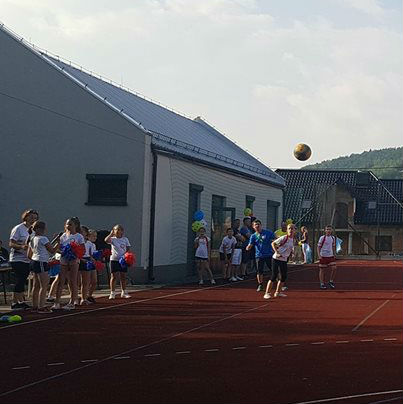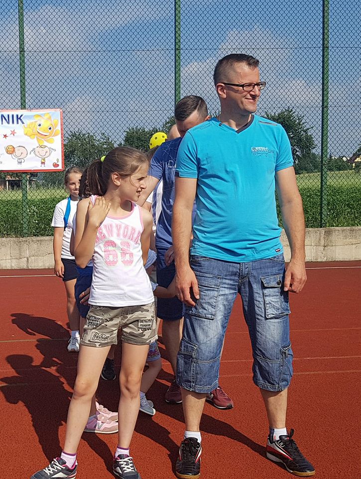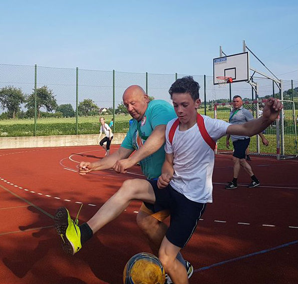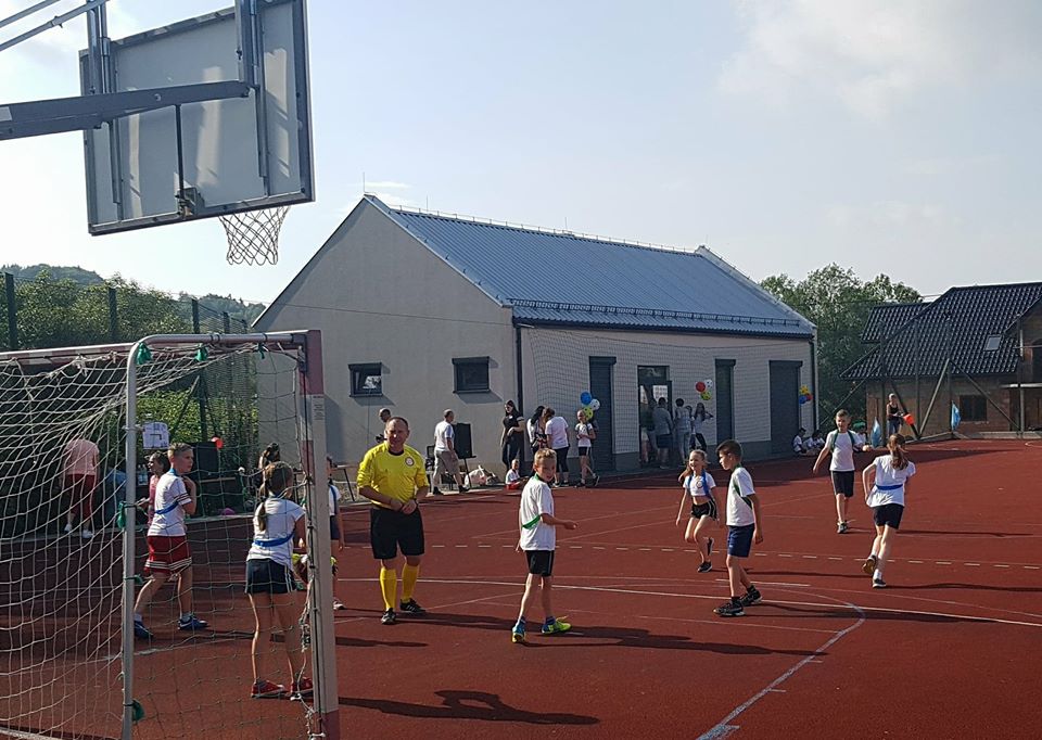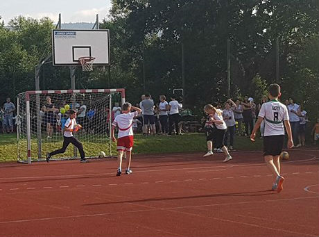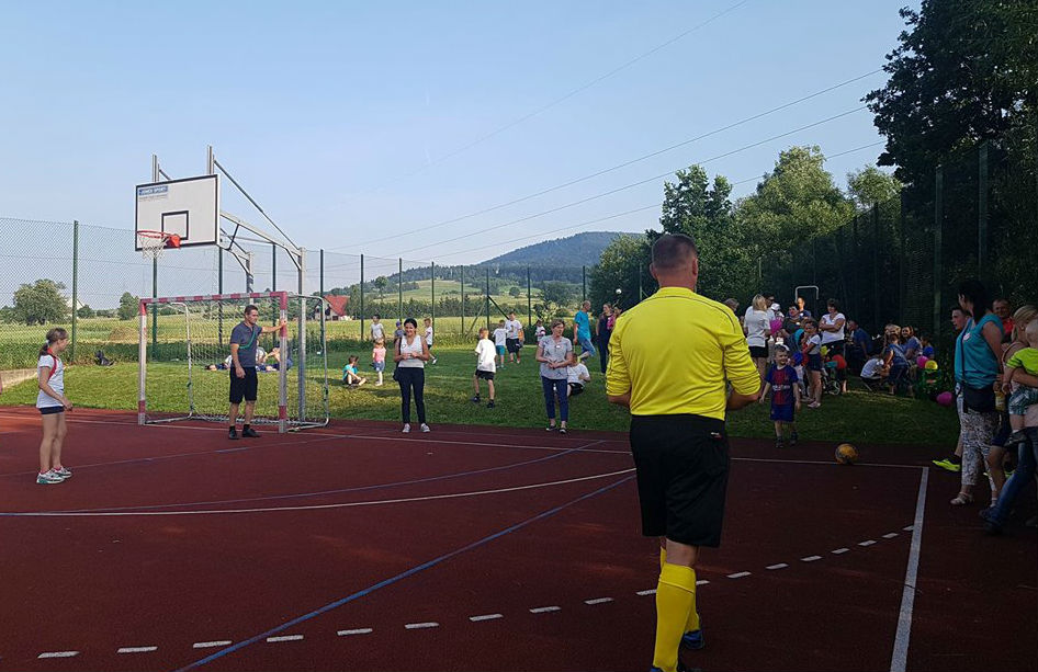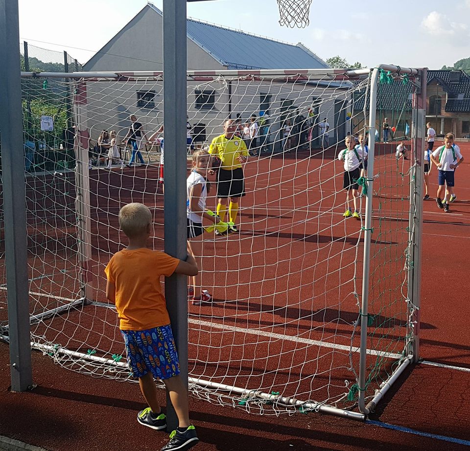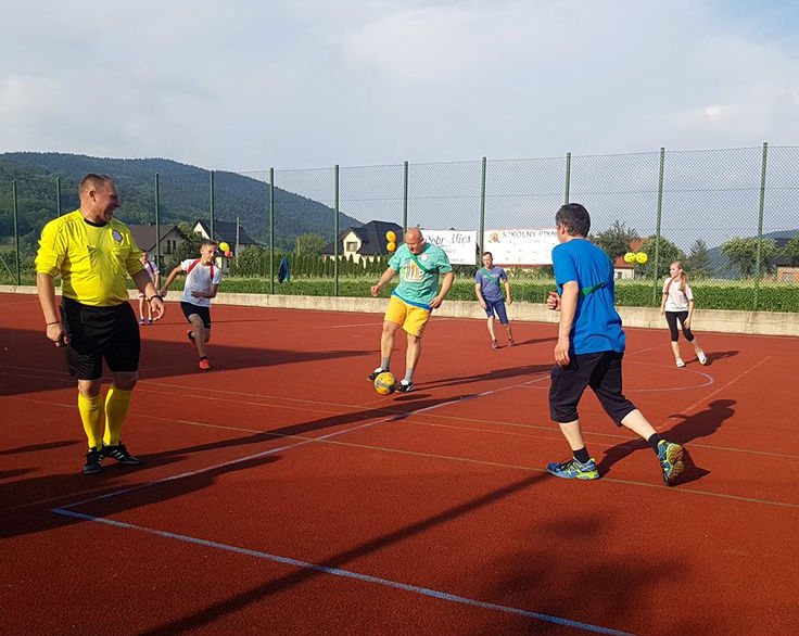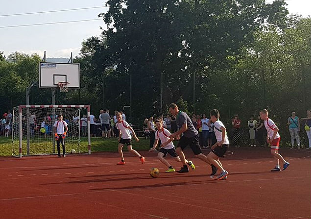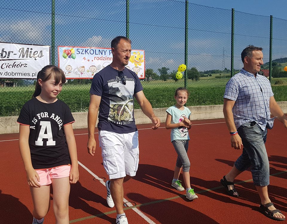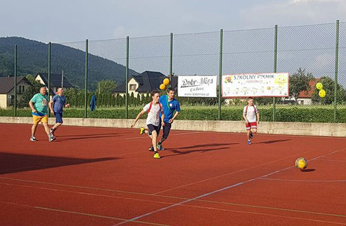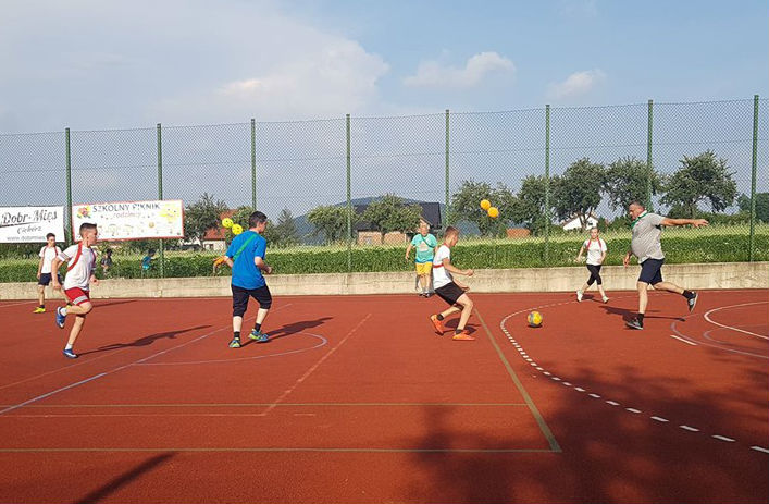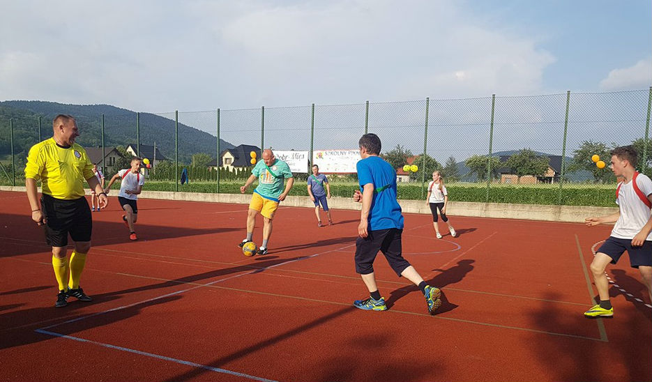 W ramach dzisiejszego Pikniku Szkolnego, który odbył się na „okrliku” został rozegrany mecz: Uczniowie Szkoły -Dorosłi. Mecz zakończył się zwycięstwem Dorosłych, ale uczniowie wg starej zasady „Póki piłka w grze wszystko może się zdarzyć” nie dali „starym” wygrać do zera. Końcowy wynik meczu to: 8:3. Gole dla Dorosłych strzelili: Ryszard Gawron (3), Paweł Ptaszek (2), Jan Puchała (2) oraz Piotr Gawron (1). Mecz sędziował (podobnie jak pozostałe  mecze w ramach rozgrywek międzyklasowych) Mieczysław Kubatek.