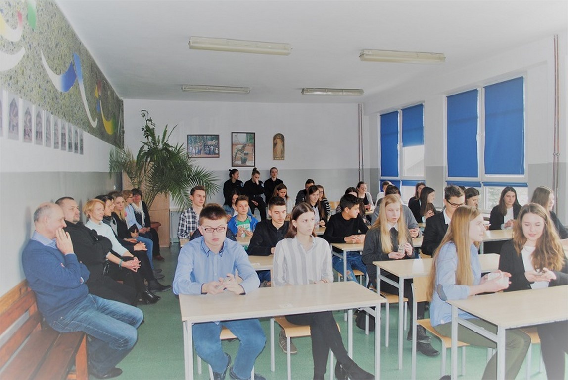 A więc może zacznę od samego początku, czyli skąd pomysł na właśnie takie przedstawienie? Cóż, prawdę mówiąc – po prostu z chęci zrobienia czegoś w ten okres Wielkiego Postu, dzięki czemu sami zbliżymy się do męki Pana Jezusa, a także umożliwimy to innym ludziom (co mam nadzieję udało się jak najlepiej). Pomysł na owe misterium wyszedł ze zbiorowości – siedzieliśmy na lekcji i dyskutowaliśmy; a może by coś zrobić? W tym momencie przypomniały nam się podobne przedstawienia Drogi Krzyżowej z czasów, kiedy byliśmy jeszcze mali. „Czemu nie? Jeśli dobrze się przygotujemy, damy radę.” I tak też zrobiliśmy. We wszystkim oczywiście bardzo pomógł nam ks. Stanisław Kaczka, czyli nasz katecheta, za co jesteśmy wdzięczni. Ustalaliśmy już od razu jaki mamy pomysł na wszystko, a na późniejszych próbach jeszcze zmienialiśmy i dopracowywaliśmy starannie poszczególne scenki, ruch światła, muzykę, czytanie rozważań itp. Chcieliśmy bardzo zrobić coś, co szczególnie poruszy ludzi, chcieliśmy trafić do ich serc. Myślę, że się udało. Byliśmy bardzo zadowoleni widząc pełen kościół, wszystkie miejsca zajęte. Po przedstawieniu udało mi się jeszcze porozmawiać z osobami będącymi na nim – większość mówiła, że była wzruszona tym jak wszystko dobrze wyszło, jaką pracę w to razem włożyliśmy.