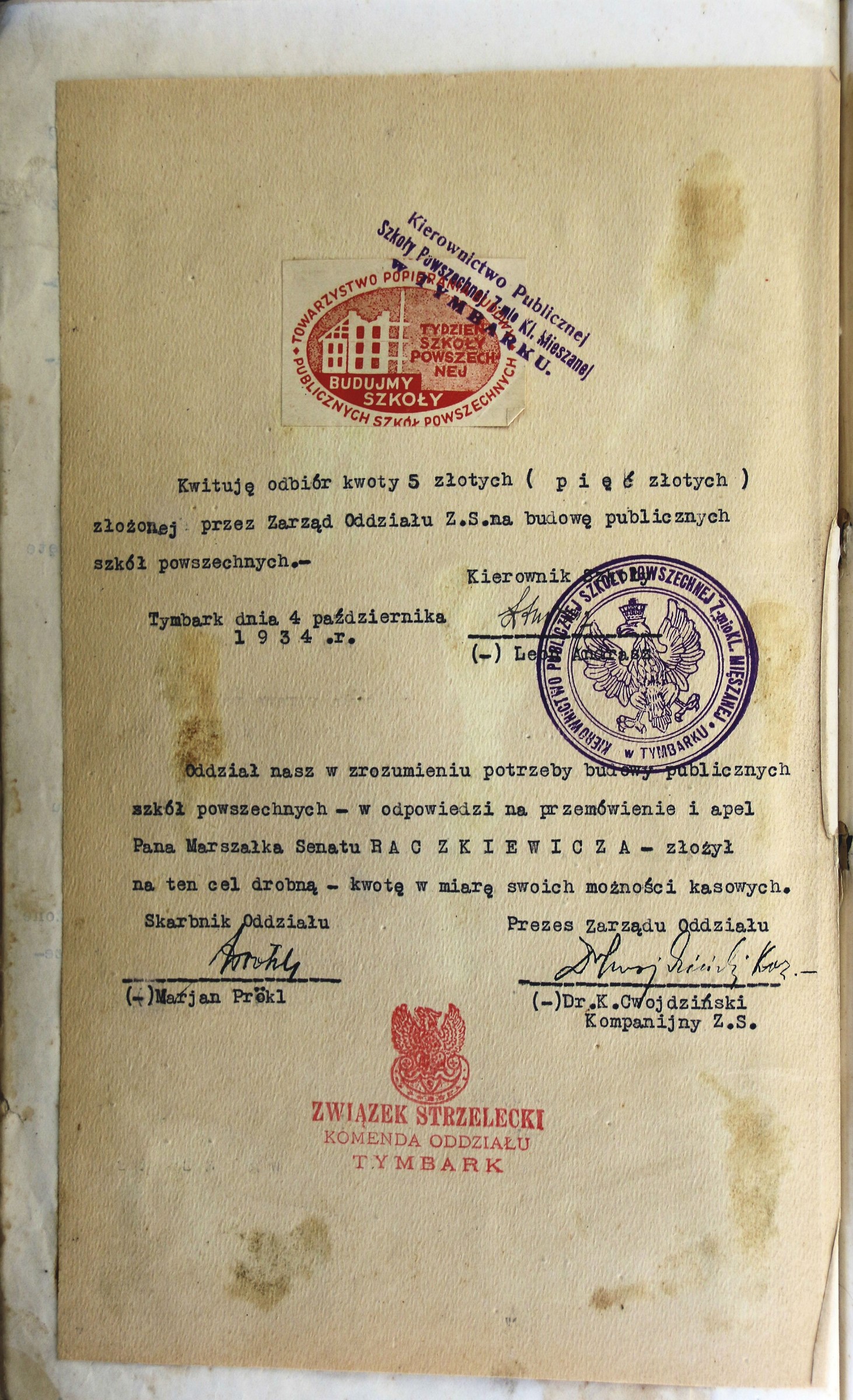 Kronika Oddziału Związku Strzeleckiego Tymbark