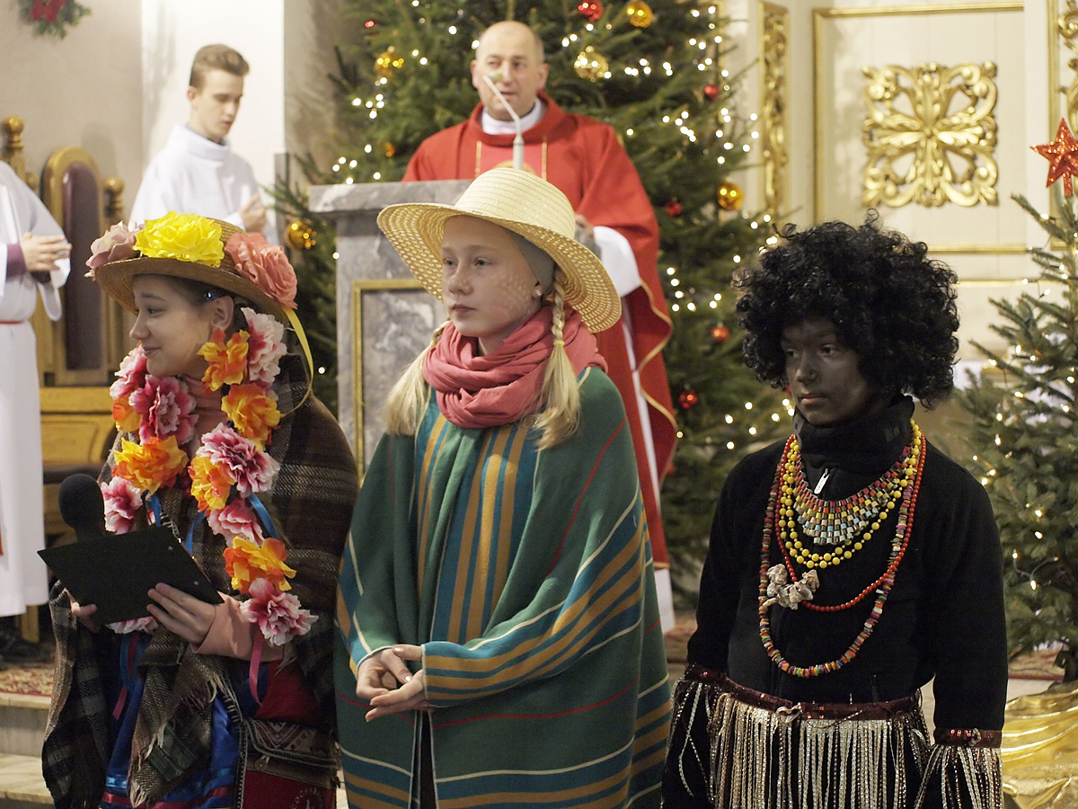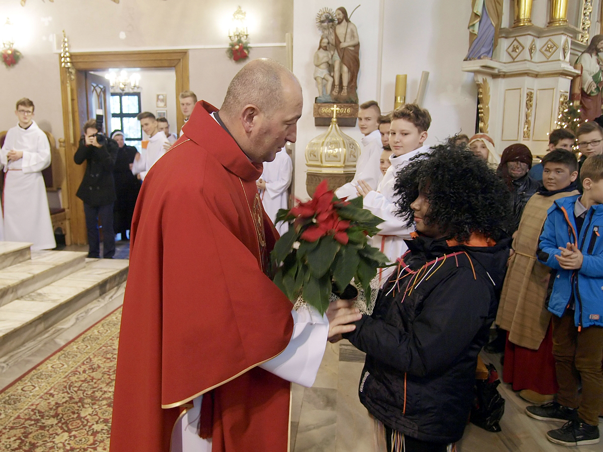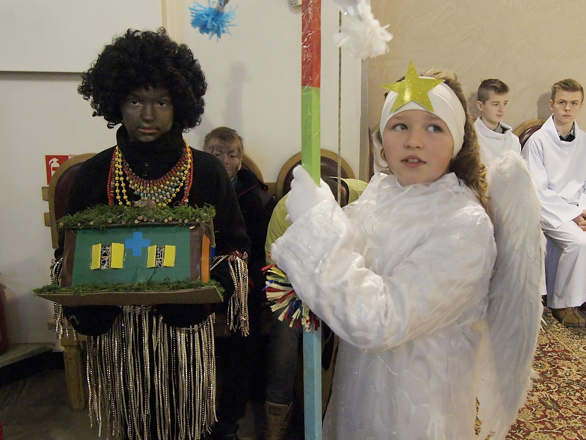 Po rozesłaniu kolędnicy wyruszyli do naszych domów, aby w krótkiej inscenizacji o opowiedzieć o życiu swoich rówieśników w egzotycznych krajach i wręczyć domownikom pamiątki.