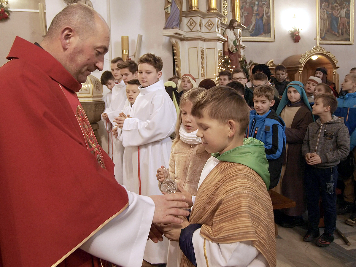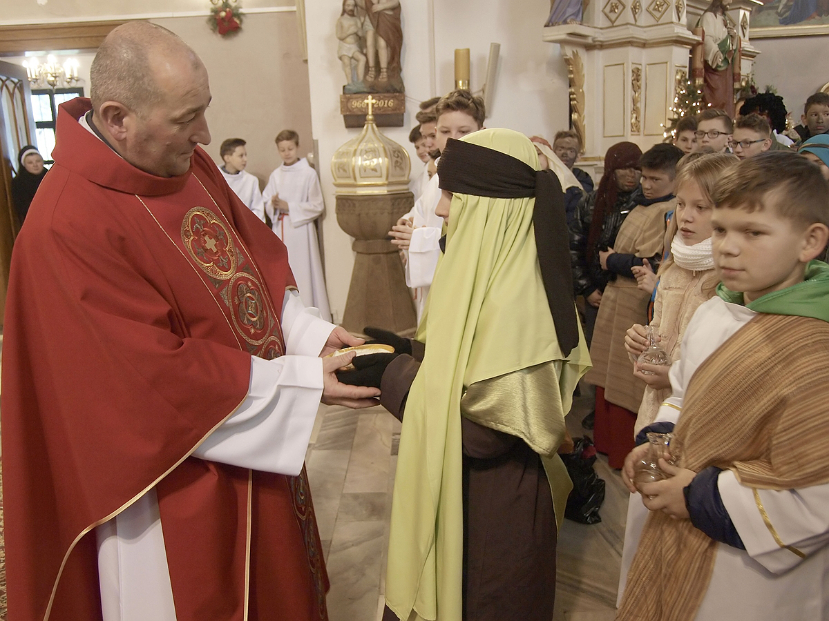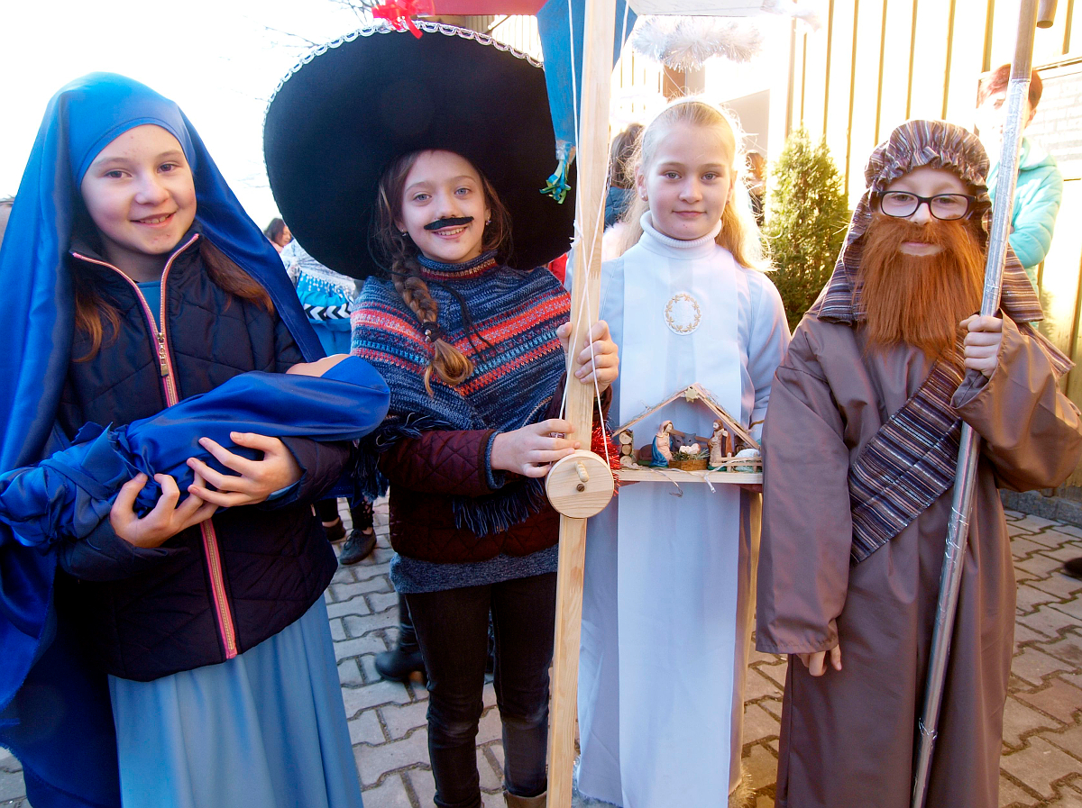 Po rozesłaniu kolędnicy wyruszyli do naszych domów, aby w krótkiej inscenizacji o opowiedzieć o życiu swoich rówieśników w egzotycznych krajach i wręczyć domownikom pamiątki.