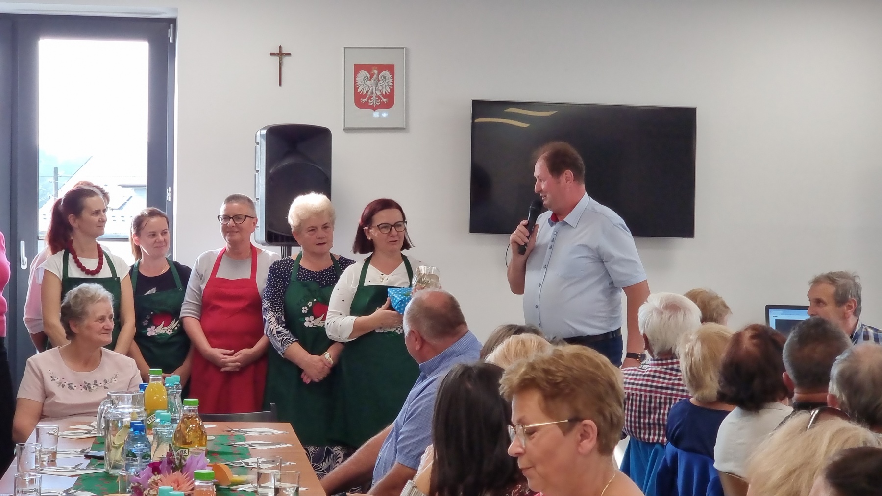 Seniorzy chętnie odpowiedzi na to zaproszenie, miejsca przy stołach zostały w komplecie zajęte. Przybyłych przywitała Agnieszka Cebula, prezes KGW Tymbark. Rolę gospodarza miejsca pełnił radny i sołtys Zbigniew Hojnor, który w imieniu wszystkich złożył Paniom podziękowania za ogrom włożonej pracy, aby takie spotkanie mogło się odbyć.