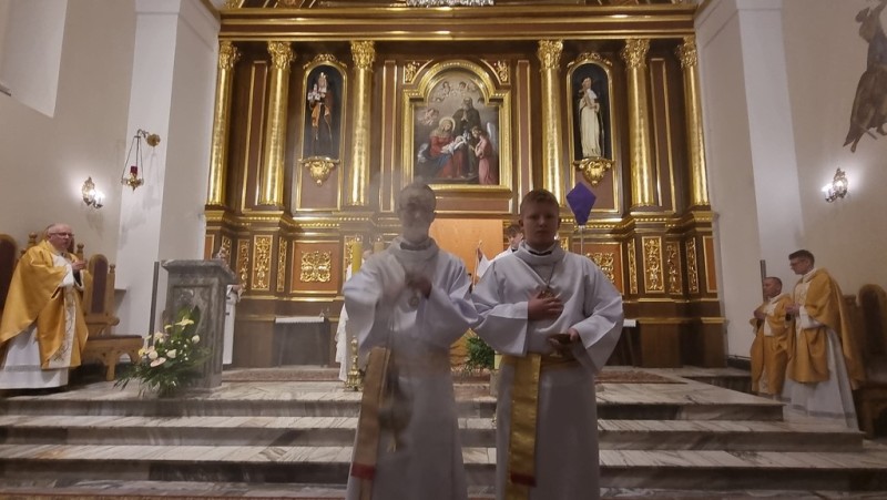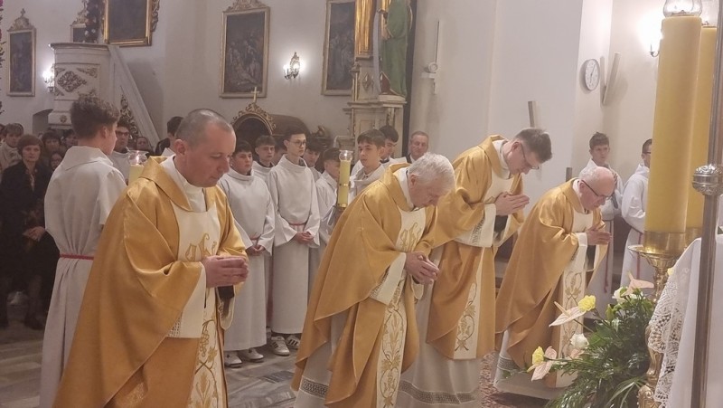 Na koniec pozwólcie, że do tych podziękowań i życzeń dołączymy w Waszej intencji modlitwę, wznosząc ją słowami naszego umiłowanego Ojca Świętego Jana Pawła II: Najwyższy Kapłanie, Jezu Chryste: obdarz naszych Kapłanów swą mocą i niepojętą miłością. Uzbrój ich w cierpliwość i wyrozumiałość wobec ludzkiej słabości. Daj im niezłomne męstwo w walce z wszelkim złem. Naucz ich pasterskiej troski o zaginione owce i uczyń światłymi przewodnikami na drogach naszych zwątpień i załamań. Zanurz ich w swojej świętości, aby ich życie było ciągle żywym znakiem, w którym ludzie rozpoznają Ciebie Panie. A Ty Matko Jezusa, która byłaś z Nim od początków Jego życia i Jego misji, szukałaś Go wśród tłumów gdy nauczał, stałaś przy Nim, gdy został wywyższony ponad ziemię, wyniszczony przez jedną i wieczną ofiarę – przygarniaj powołanych, osłaniaj ich wzrastanie, wspomagaj w życiu i w posłudze. Matko kapłanów ! Amen.
