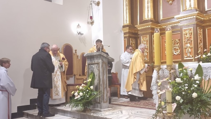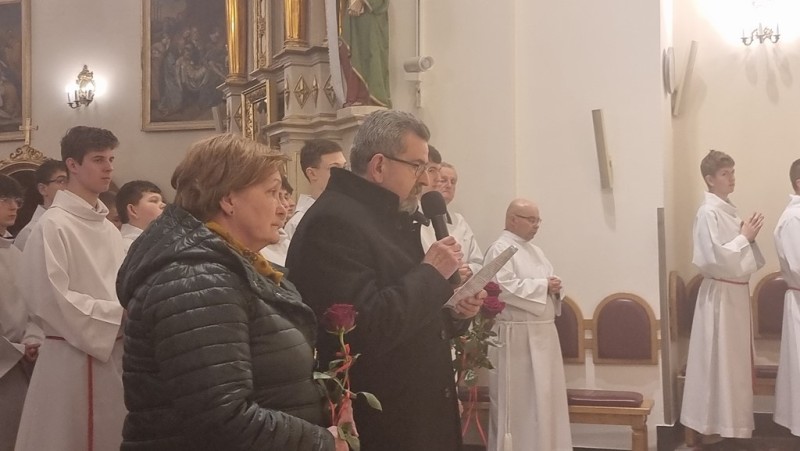 Życzenia Kapłanom złożyli w imieniu parafian przedstawiciele Rady Duszpasterskiej: Pani Beata Szarłowicz oraz Pan Józef Zoń.