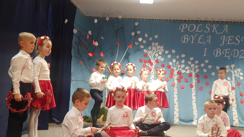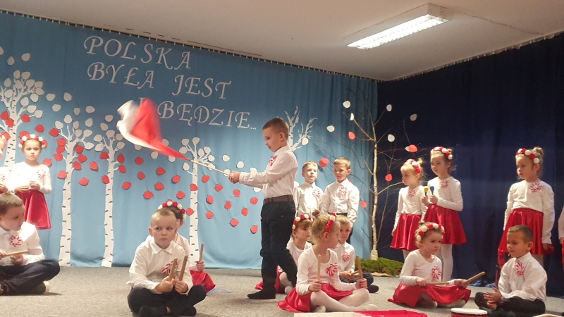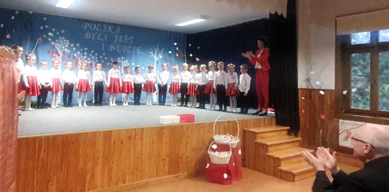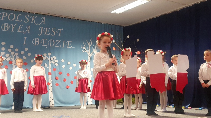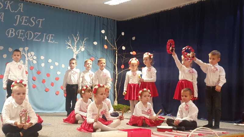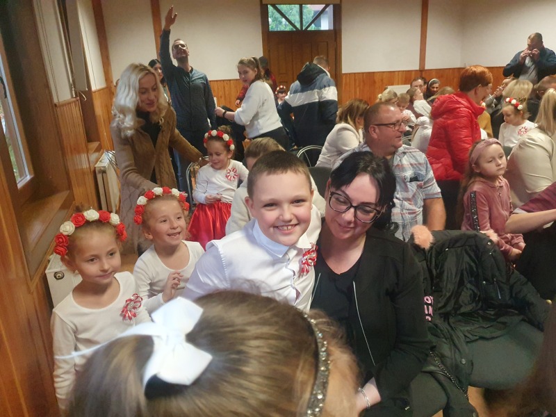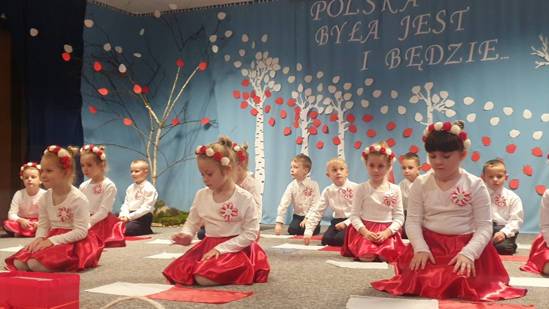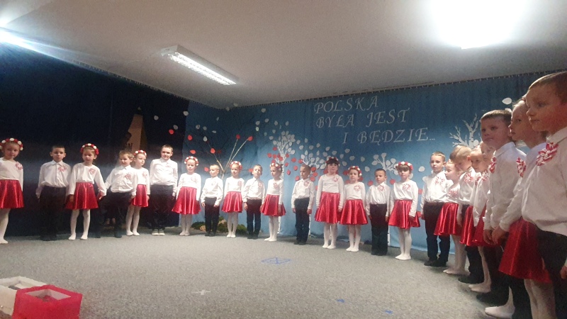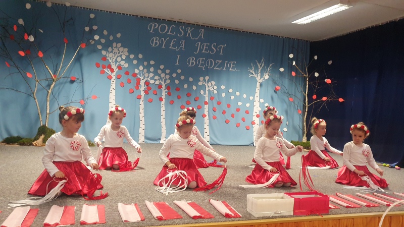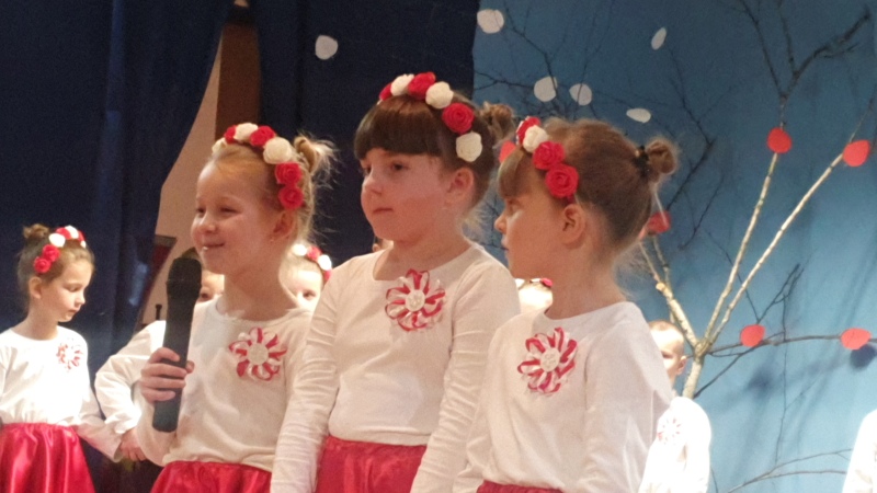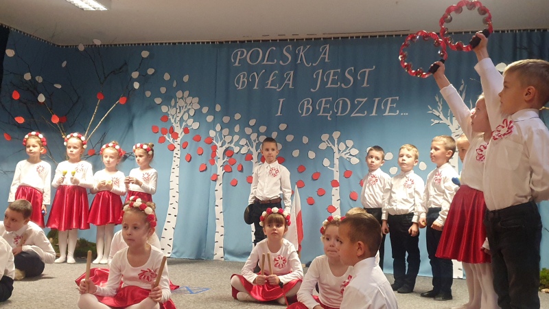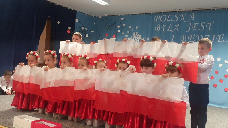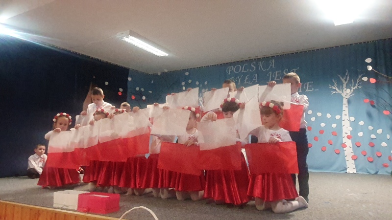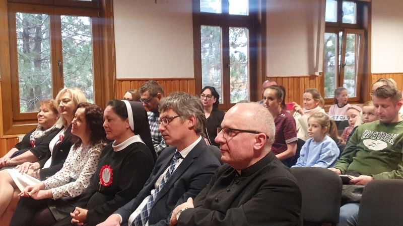 Przedszkolaki z Integracyjnego Przedszkola Parafialnego wraz ze swoimi Paniami (S.Sara Wróbel, P.Ewa Górlińska oraz P.Ania Puchała) zaprosiły swoich rodziców, rodzeństwo, siostry zakonne, Proboszcza Parafii Tymbark ks. dr. Jana Banacha, Wójta Gminy Tymbark dr. Pawła Ptaszka, Siostrę Dyrektor Janinę Bąk oraz przedstawicieli Stowarzyszenia Przystań, na wspaniały, wzruszający, spektakl słowno-muzyczny przygotowany z okazji Święta Niepodległości, rocznicy odzyskania niepodległości przez Polskę.