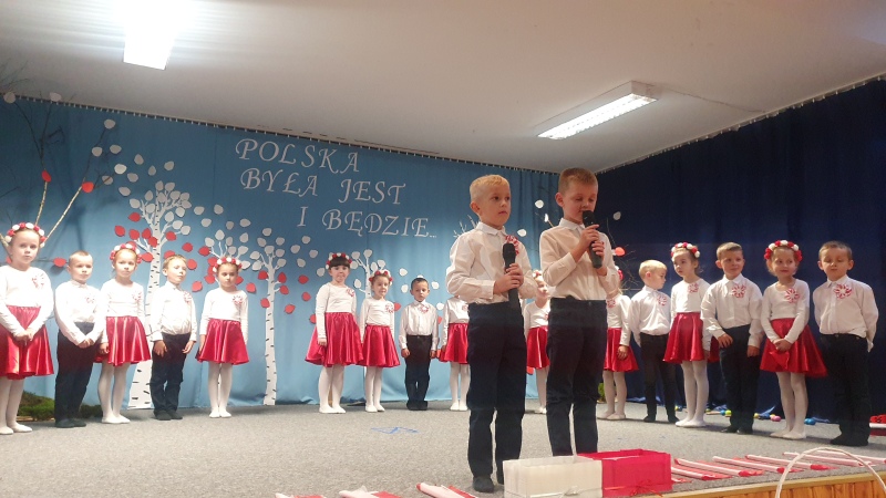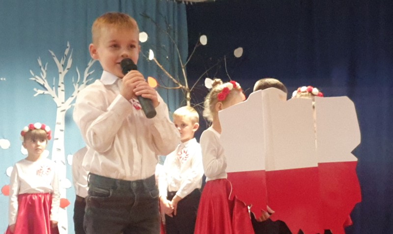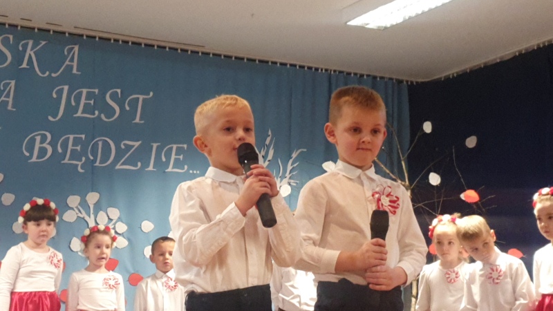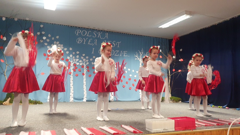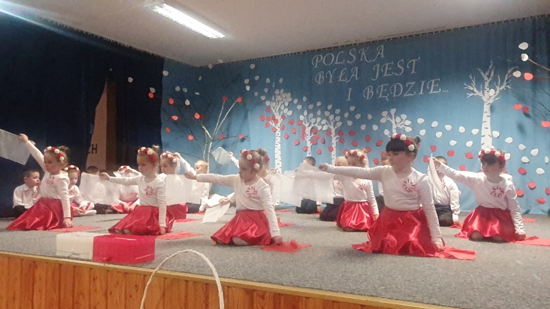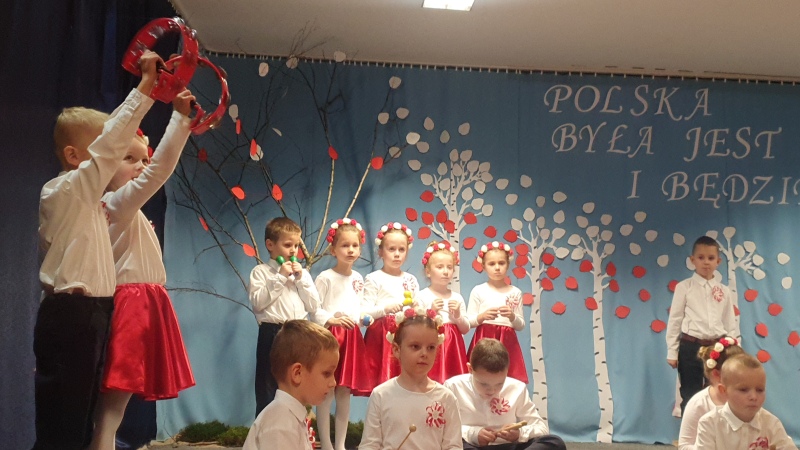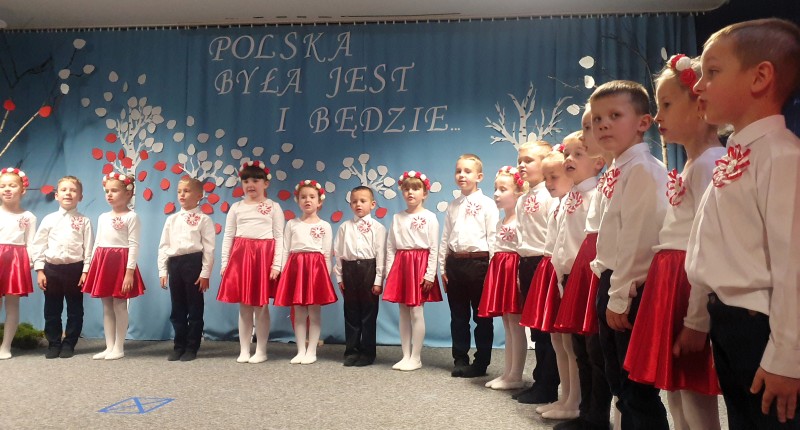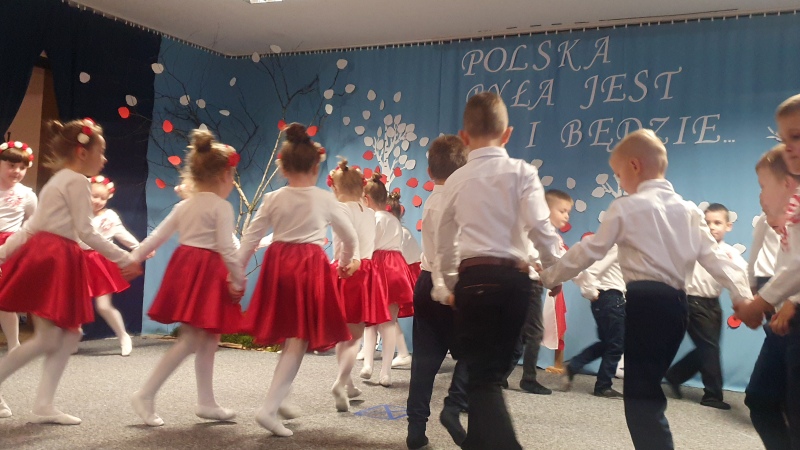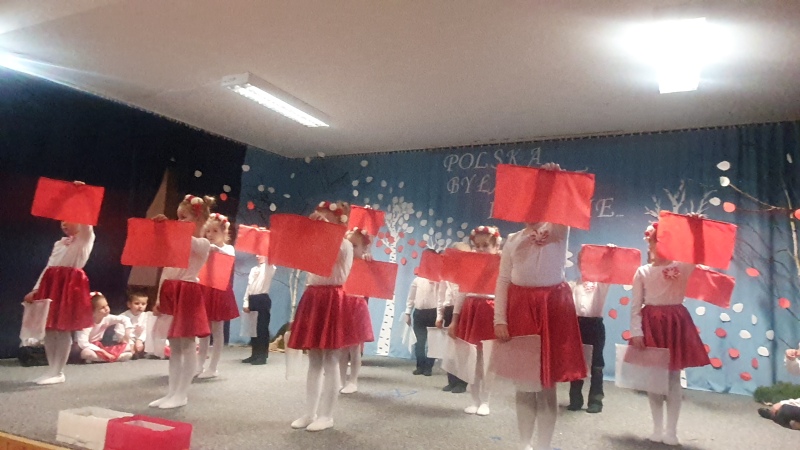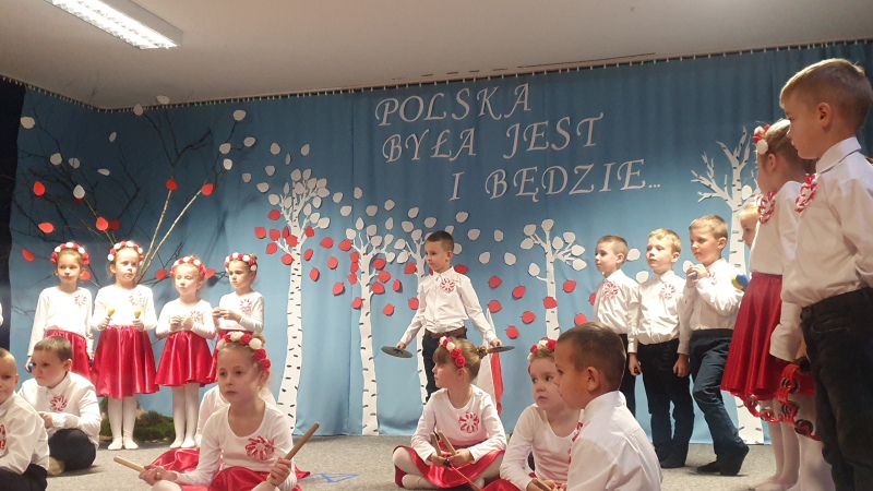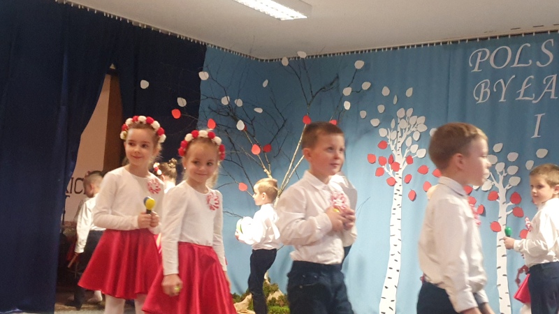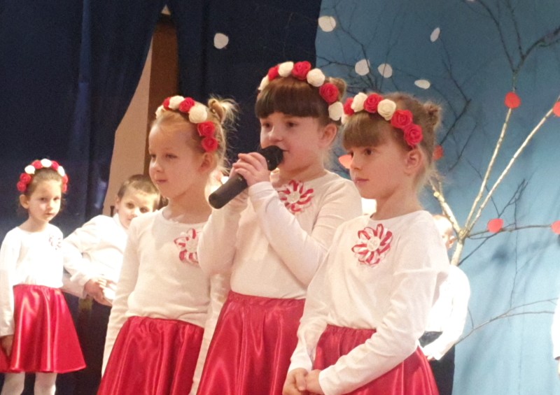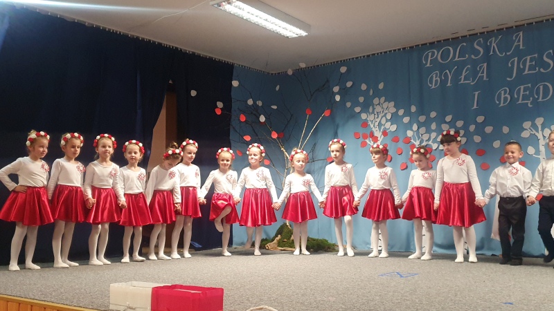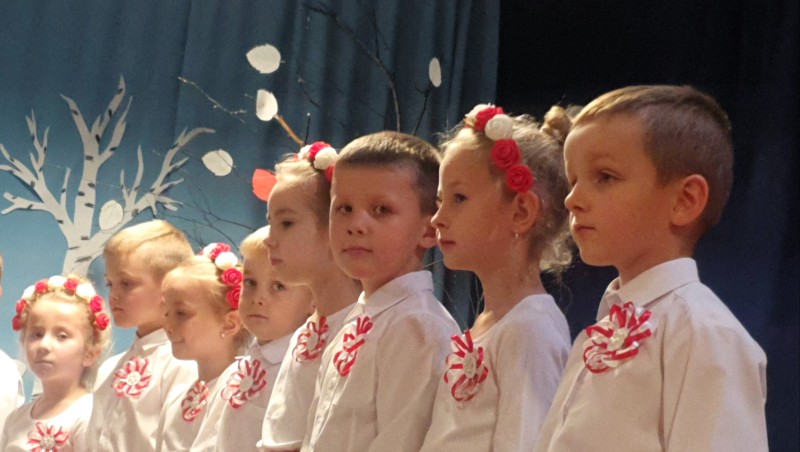 Przedszkolaki z Integracyjnego Przedszkola Parafialnego wraz ze swoimi Paniami (S.Sara Wróbel, P.Ewa Górlińska oraz P.Ania Puchała) zaprosiły swoich rodziców, rodzeństwo, siostry zakonne, Proboszcza Parafii Tymbark ks. dr. Jana Banacha, Wójta Gminy Tymbark dr. Pawła Ptaszka, Siostrę Dyrektor Janinę Bąk oraz przedstawicieli Stowarzyszenia Przystań, na wspaniały, wzruszający, spektakl słowno-muzyczny przygotowany z okazji Święta Niepodległości, rocznicy odzyskania niepodległości przez Polskę.