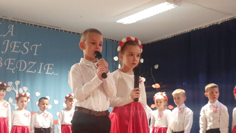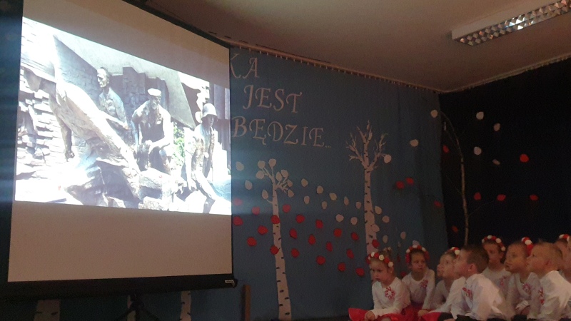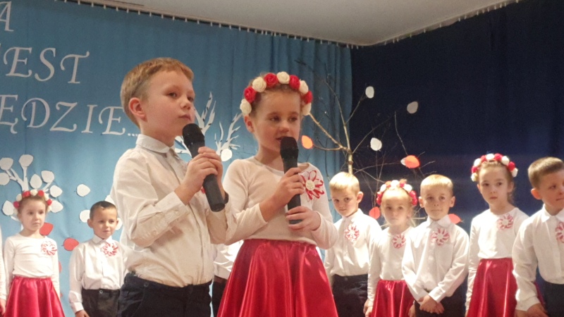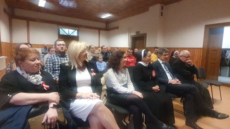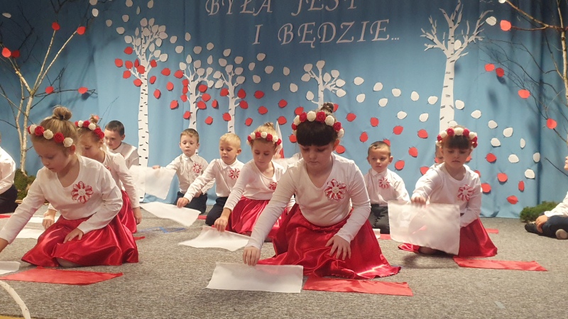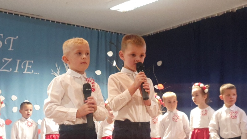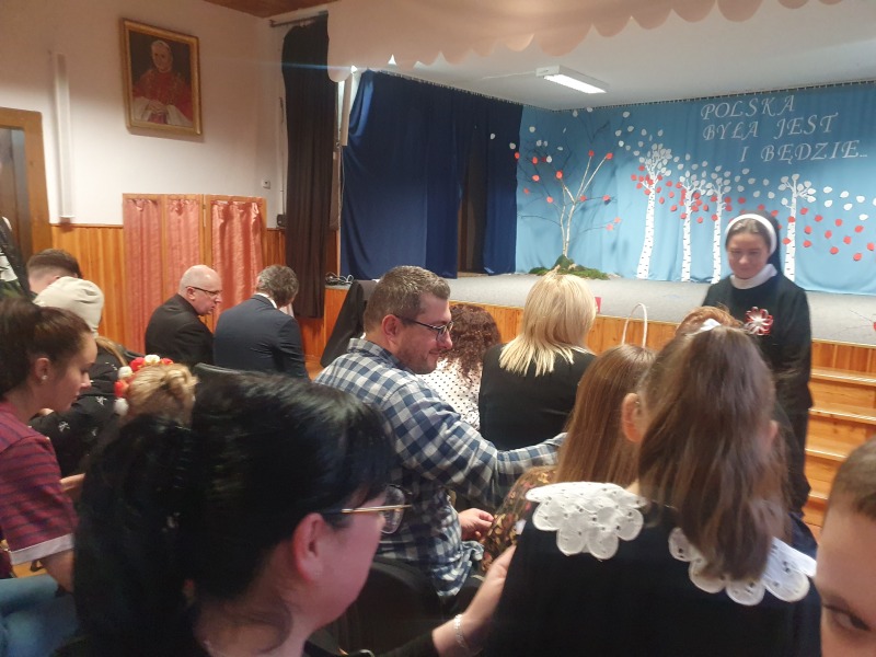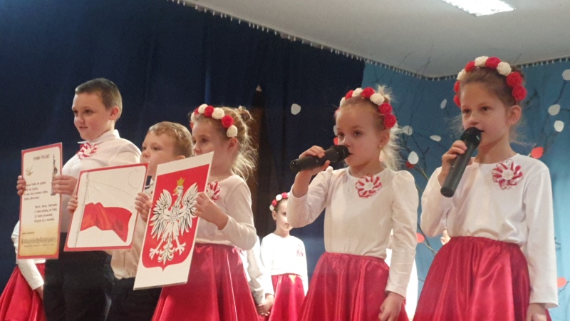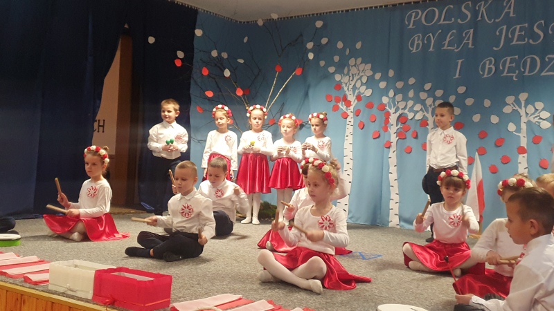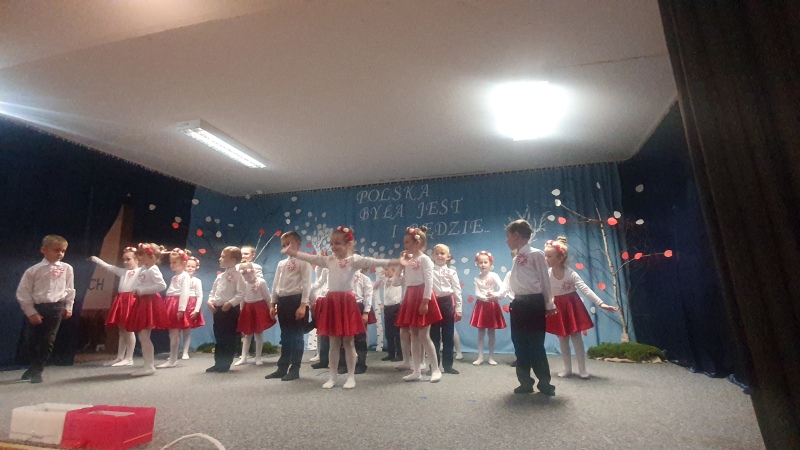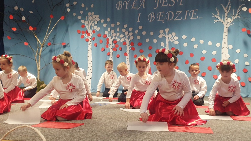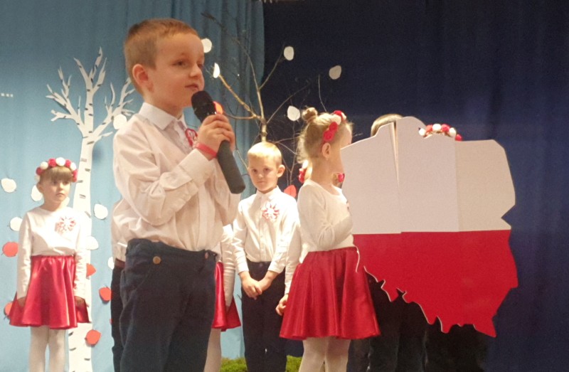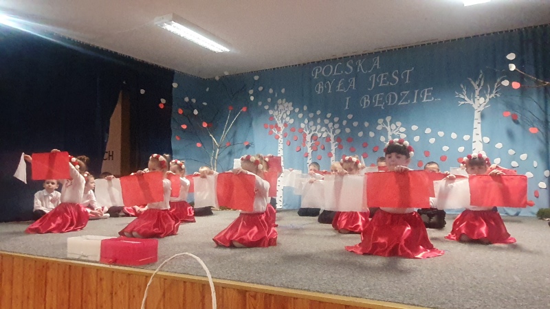 Przedszkolaki z Integracyjnego Przedszkola Parafialnego wraz ze swoimi Paniami (S.Sara Wróbel, P.Ewa Górlińska oraz P.Ania Puchała) zaprosiły swoich rodziców, rodzeństwo, siostry zakonne, Proboszcza Parafii Tymbark ks. dr. Jana Banacha, Wójta Gminy Tymbark dr. Pawła Ptaszka, Siostrę Dyrektor Janinę Bąk oraz przedstawicieli Stowarzyszenia Przystań, na wspaniały, wzruszający, spektakl słowno-muzyczny przygotowany z okazji Święta Niepodległości, rocznicy odzyskania niepodległości przez Polskę.