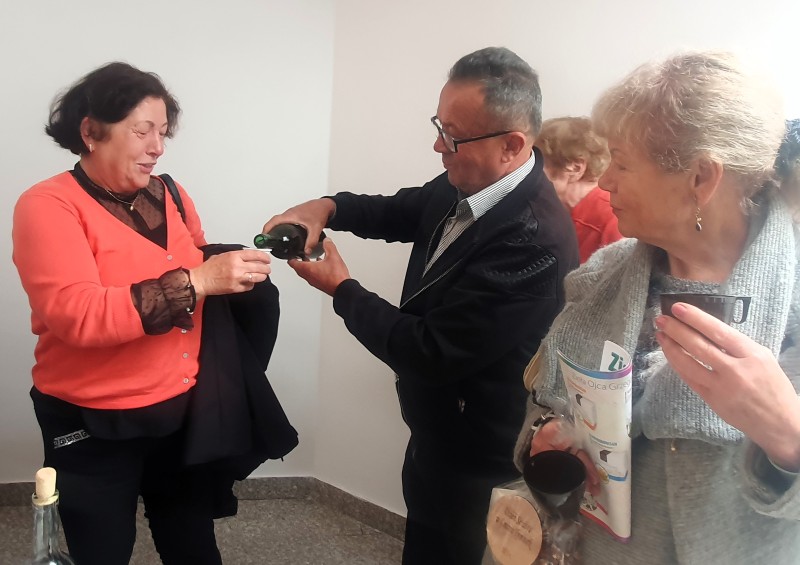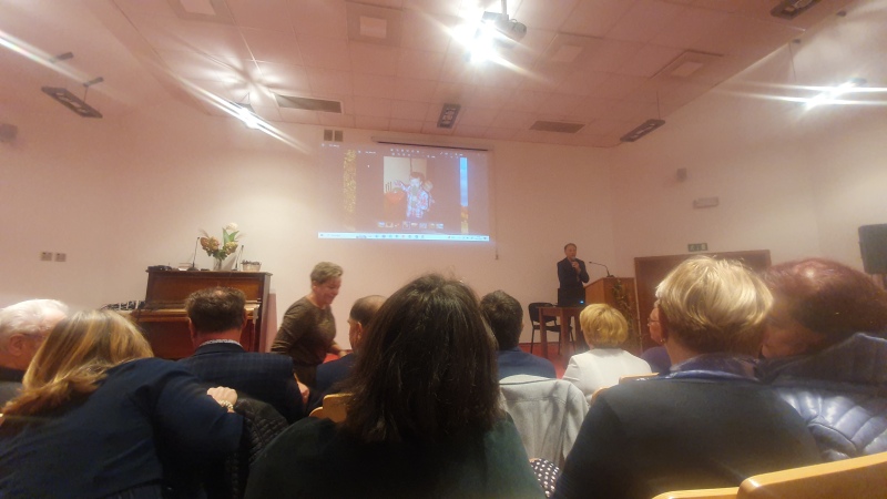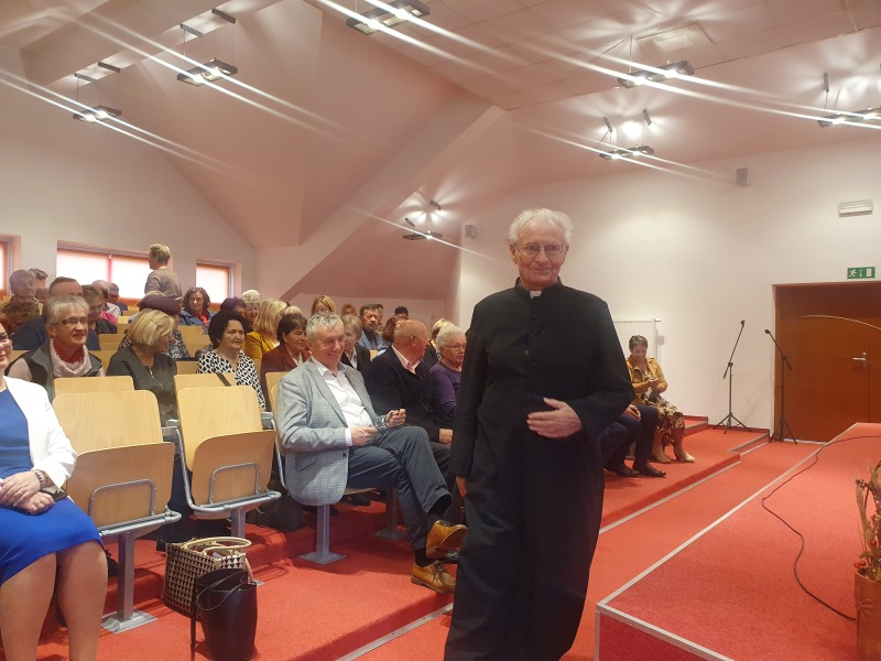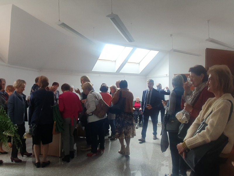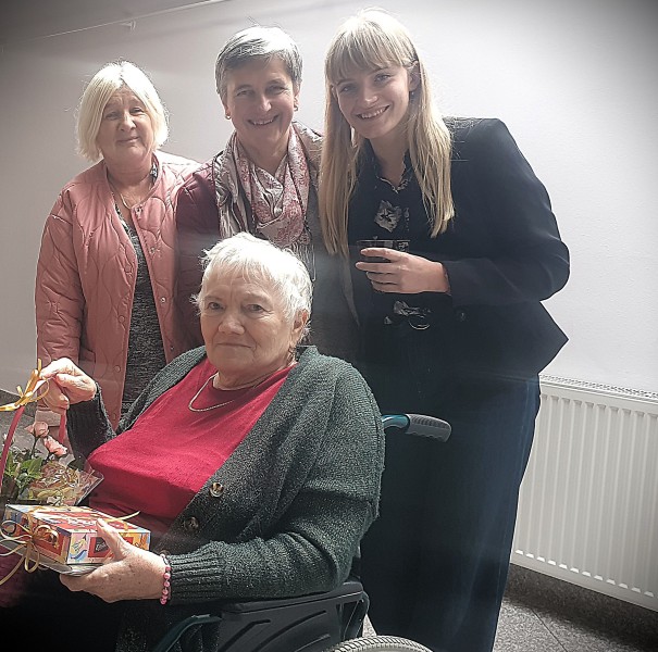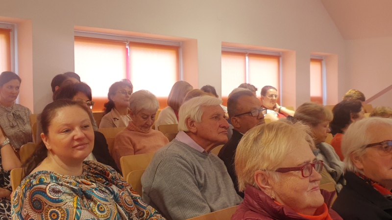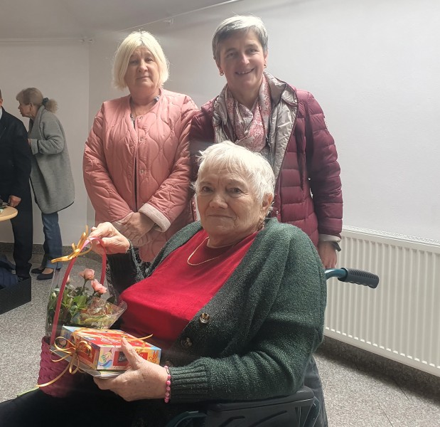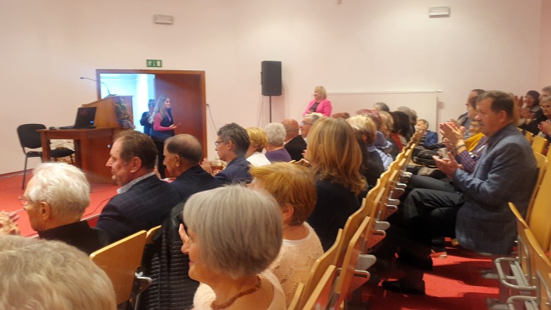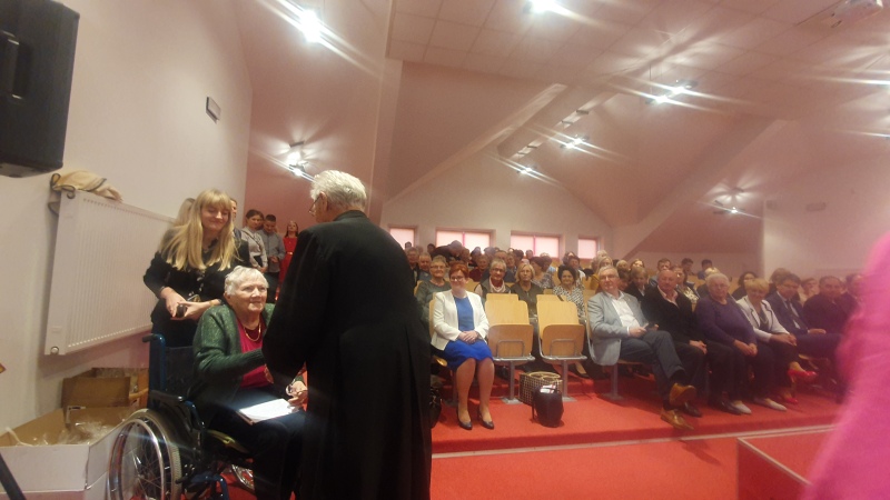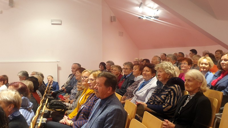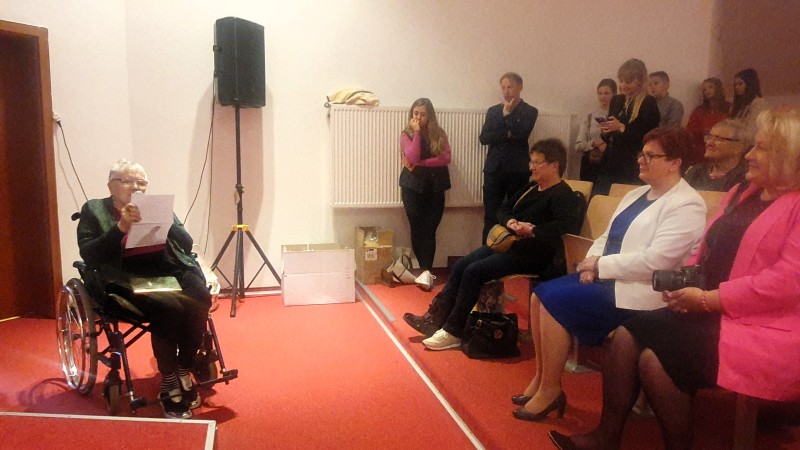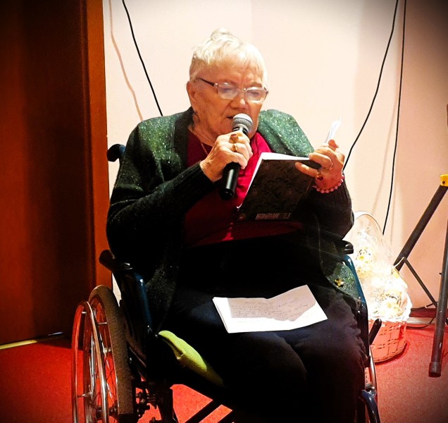 Jest już tradycją, że na spotkaniach Seniorów swoimi okolicznościowymi wierszami dzieli się Pani Maria Juszczyk , emerytowana nauczycielka języka polskiego oraz poetka. Więcej o Poetce  pisałam na portalu  z okazji Jej benefisu poetyckiego w 2019 roku. Materiał zamieszczam poniżej. Pani Maria, choć zmuszona jest do korzystania z wózka inwalidzkiego, nadal jest pogodna, uśmiechnięta.  Jej byli wychowankowie już umówili się z Nią na następne spotkanie klasowe.