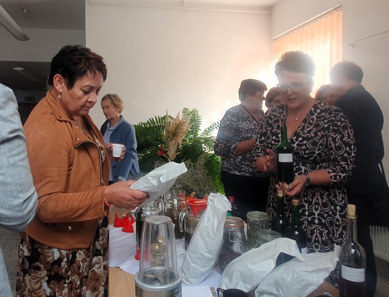 Pan Marek przygotował nie tylko wykład, ale też próbki wyrobów leczniczych wykonanych z ziół. Herbaty, napary, nalewki. Wszystko to można było popróbować, ale też otrzymać od Pana Marka, wskazówki co do sposobu ich sporządzania.