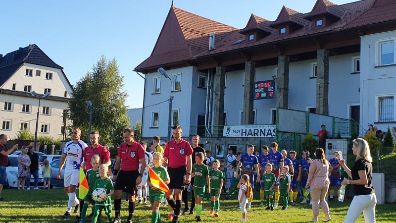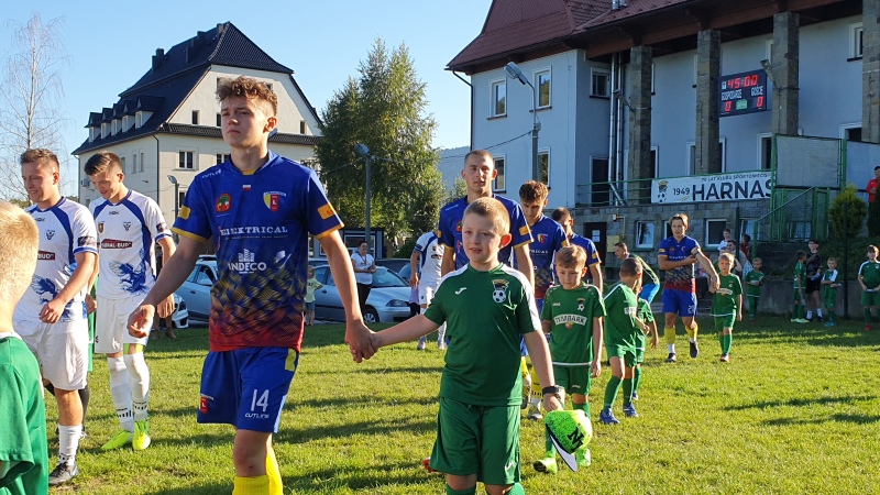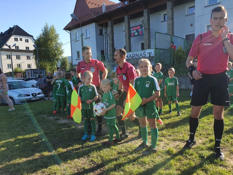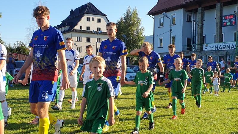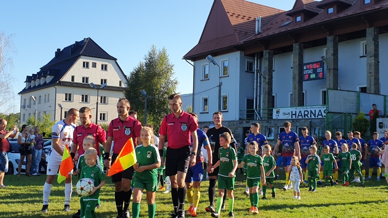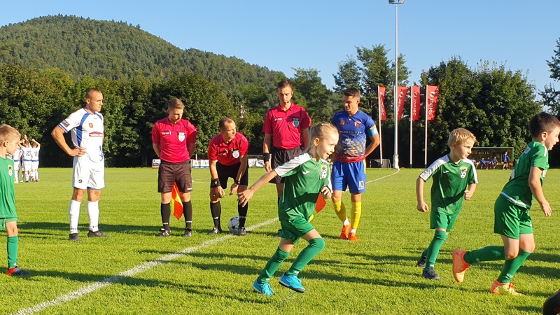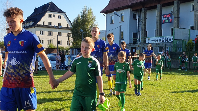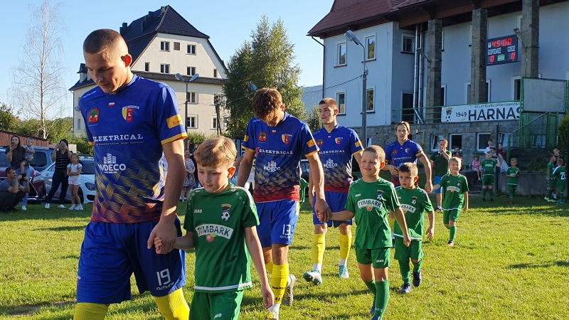 Mecz rozpoczął się wejściem piłkarzy na stadion wraz z młodymi adeptami piłkarskimi ze Szkółki Piłkarskiej Harnasie w Tymbarku. W przerwie były krótkie wystąpienia członków władz piłkarskich oraz samorządowych.