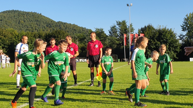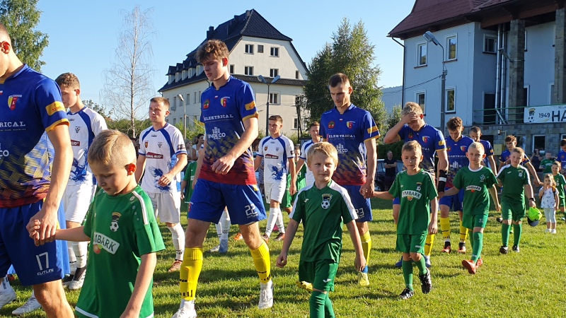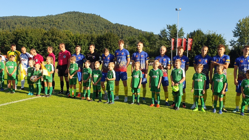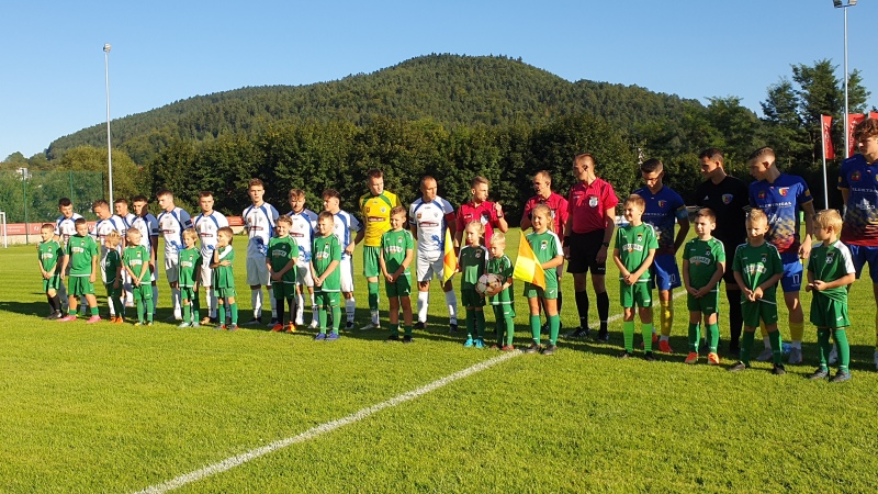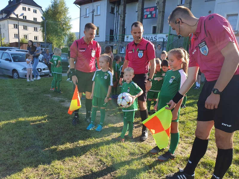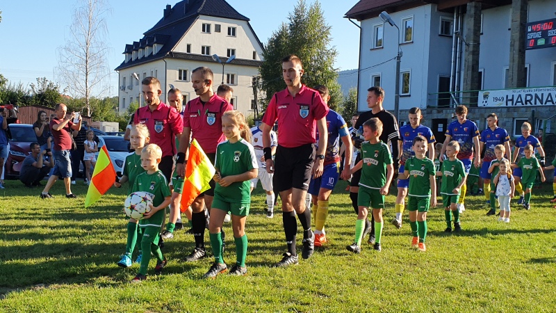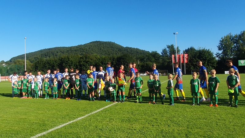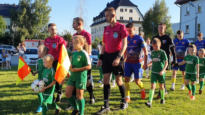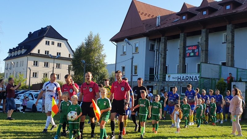 Mecz rozpoczął się wejściem piłkarzy na stadion wraz z młodymi adeptami piłkarskimi ze Szkółki Piłkarskiej Harnasie w Tymbarku. W przerwie były krótkie wystąpienia członków władz piłkarskich oraz samorządowych.