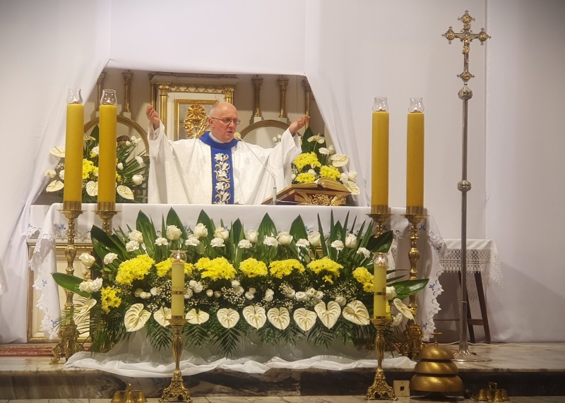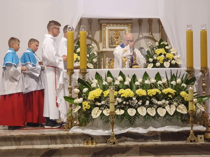 Dzisiaj, o godz.18, Mszy św. koncelebrowanej przewodniczył oraz homilię wygłosił ks. proboszcz dr Jan Banach, Mszę św. sprawował też Rodak ks. Ignacy Urbański.
