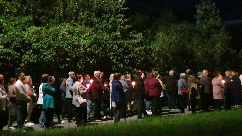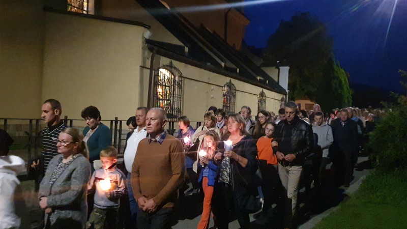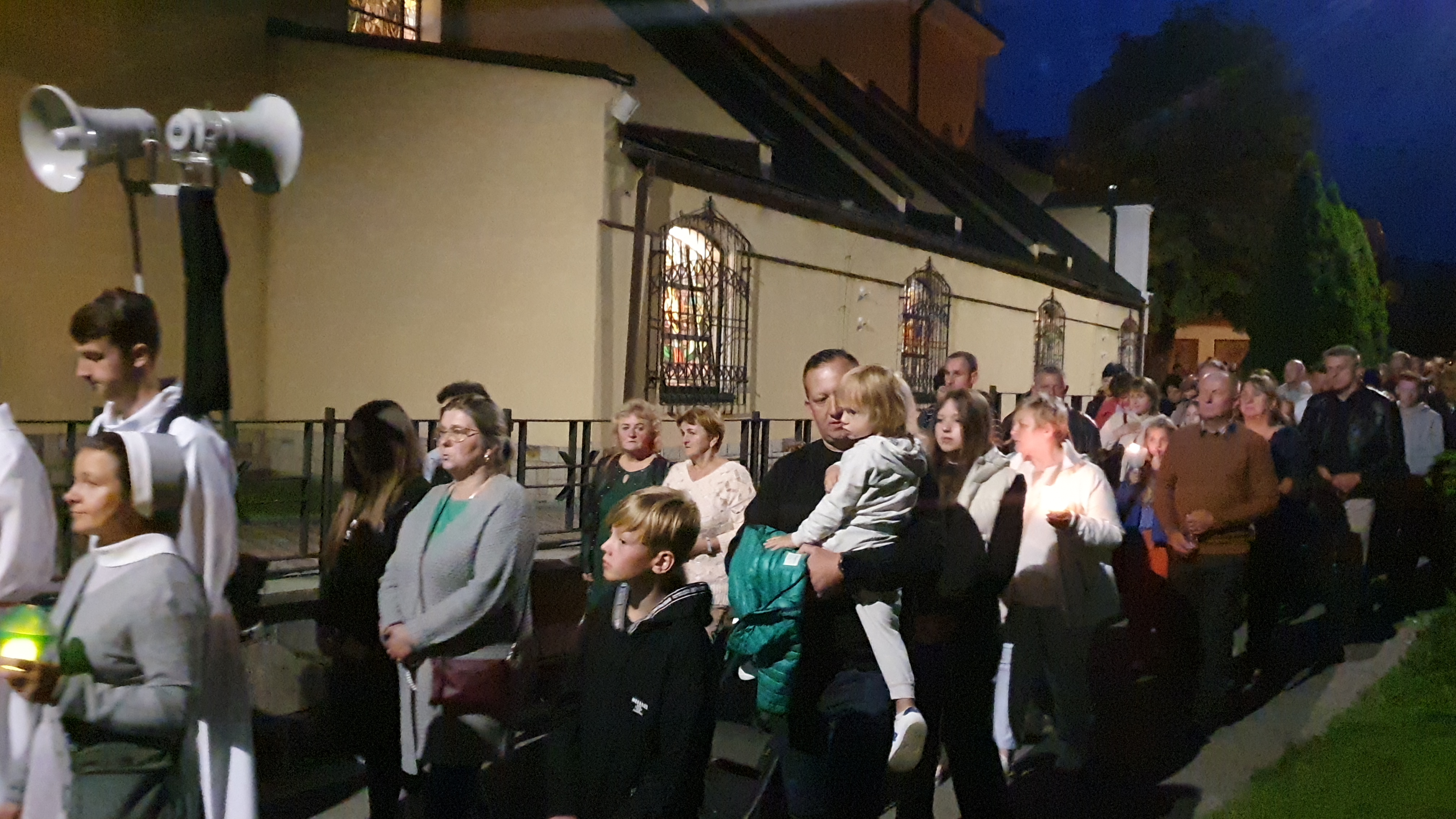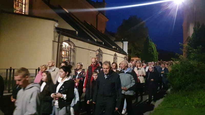 W pogodną sobotnią wrześniową noc wierni Parafii Tymbark modlitwą różańcową, odmawianą w procesji wokół kościoła, obejmowali  dzieci i młodzież, która w poniedziałek rozpocznie nowy rok szkolny.