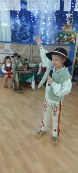 Tak zaprezentował się zespół „ Mały Tymbark”, do którego należą uczniowie klas pierwszych ze Szkoły Podstawowej w Tymbarku, podczas przesłuchań do IV Festiwalu Kolęd „ Maleńkiemu Jezusowi” w Pasierbcu.