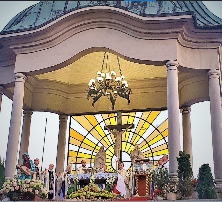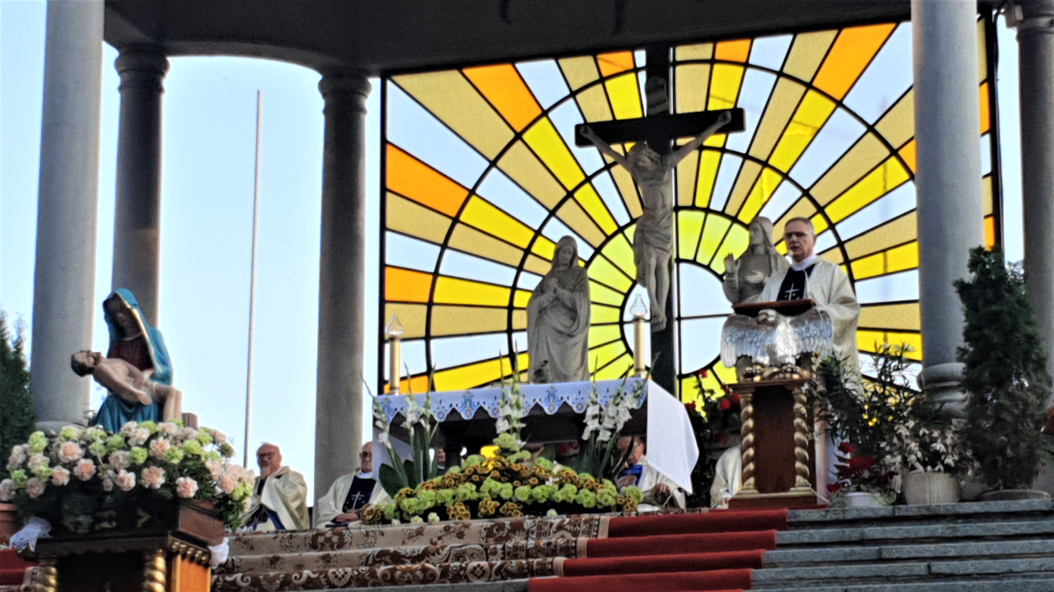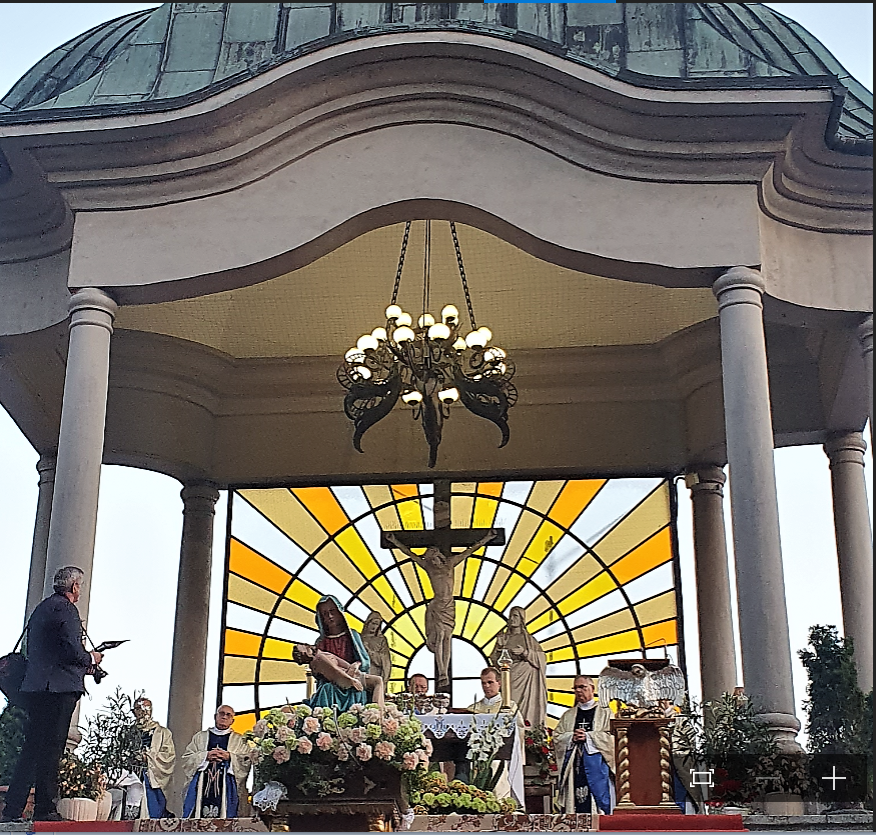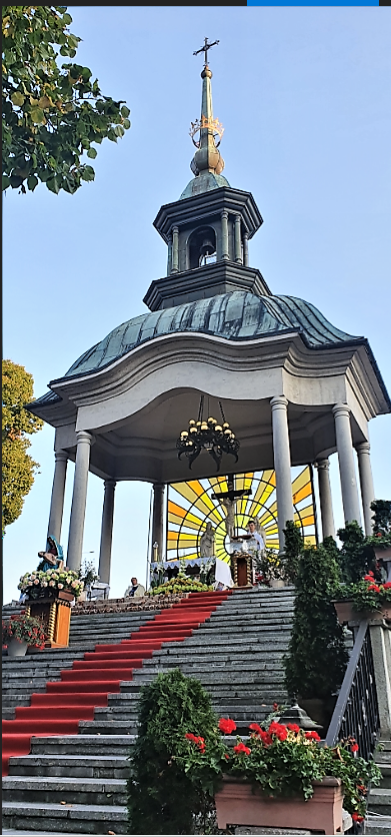 Przy papieskim krzyżu na Mogielicy odmawiamy czwarty dziesiątek. Wieża widokowa zamknięta. Na szlaku spotykamy sporo turystów. Nie zatrzymujemy się. Schodzimy na przełęcz Rydza-Śmigłego, gdzie czeka na nas posiłek przygotowany przez kolegów z OSP Piekiełko. Po 50 minutach marszu jesteśmy już przy pomniku legionów – Pomnik Spotkania Pokoleń. W tym miejscu modlitwa różańcowa za Ojczyznę ma szczególny wymiar. Słowa wypowiedziane w Krakowie w 1979 roku przez naszego Papieża wciąż są aktualne.