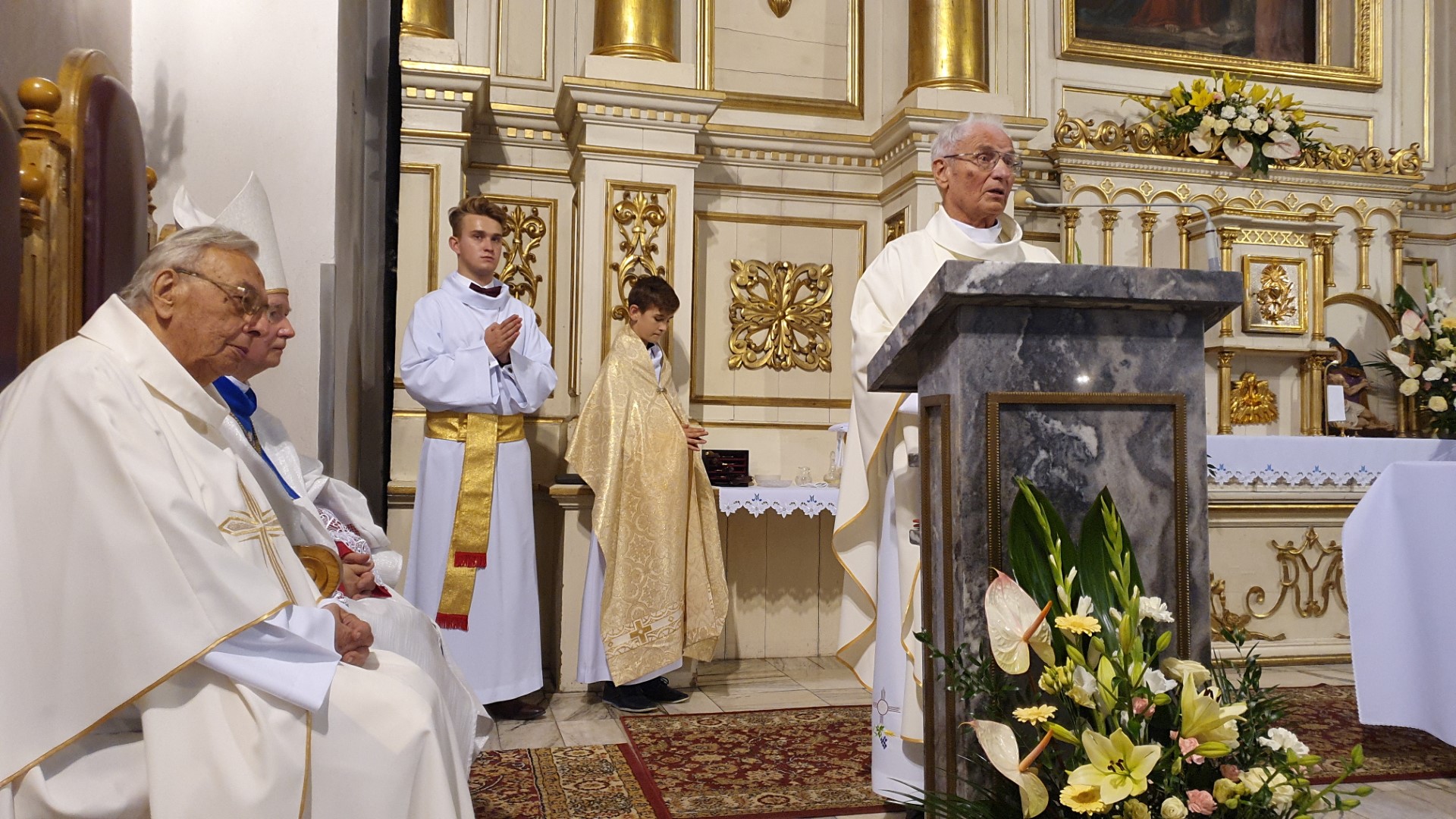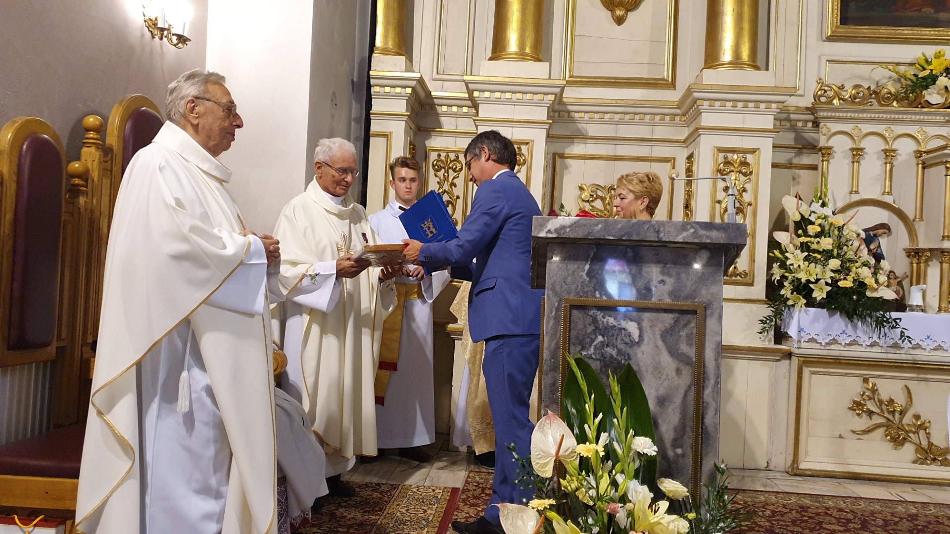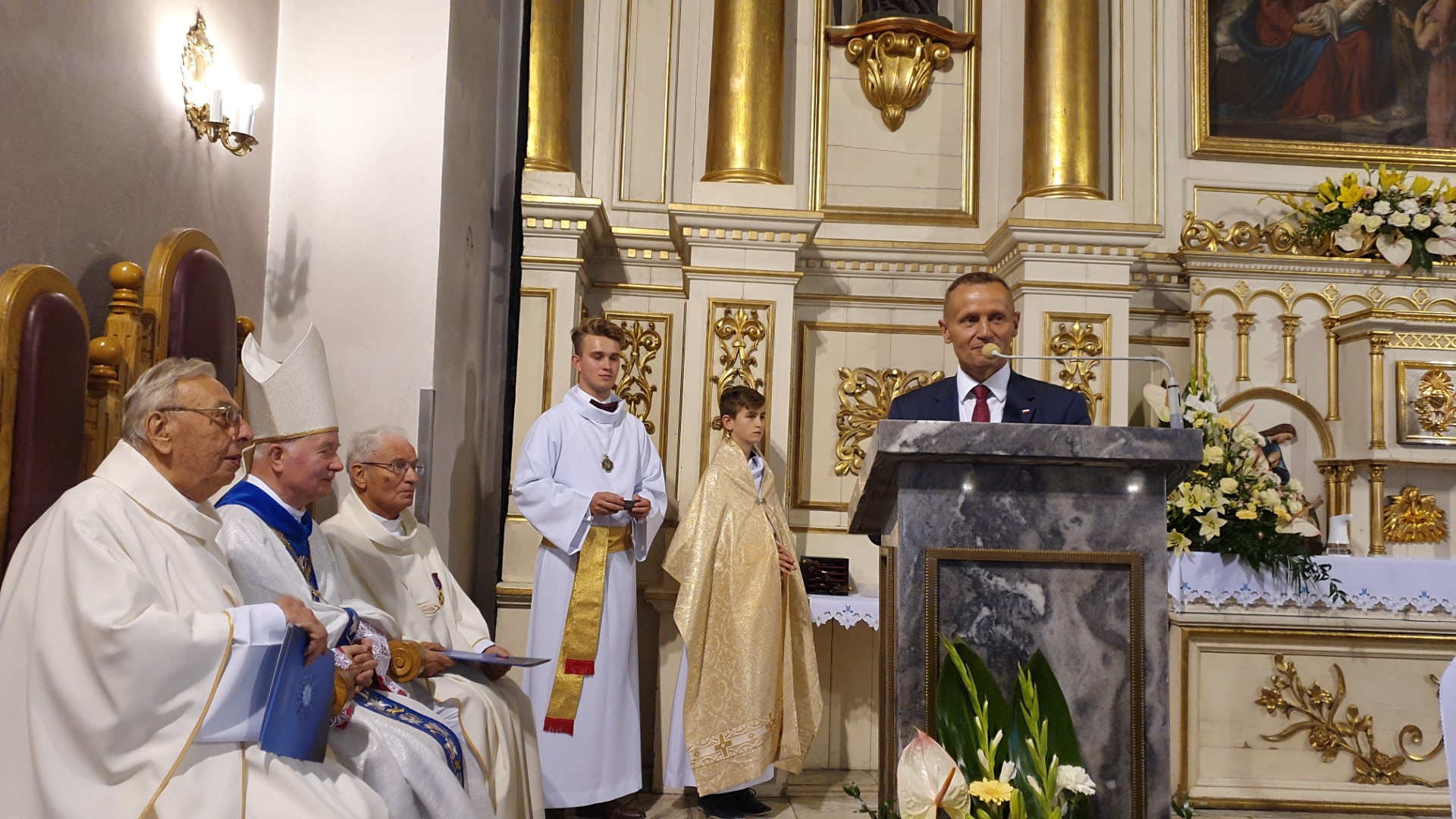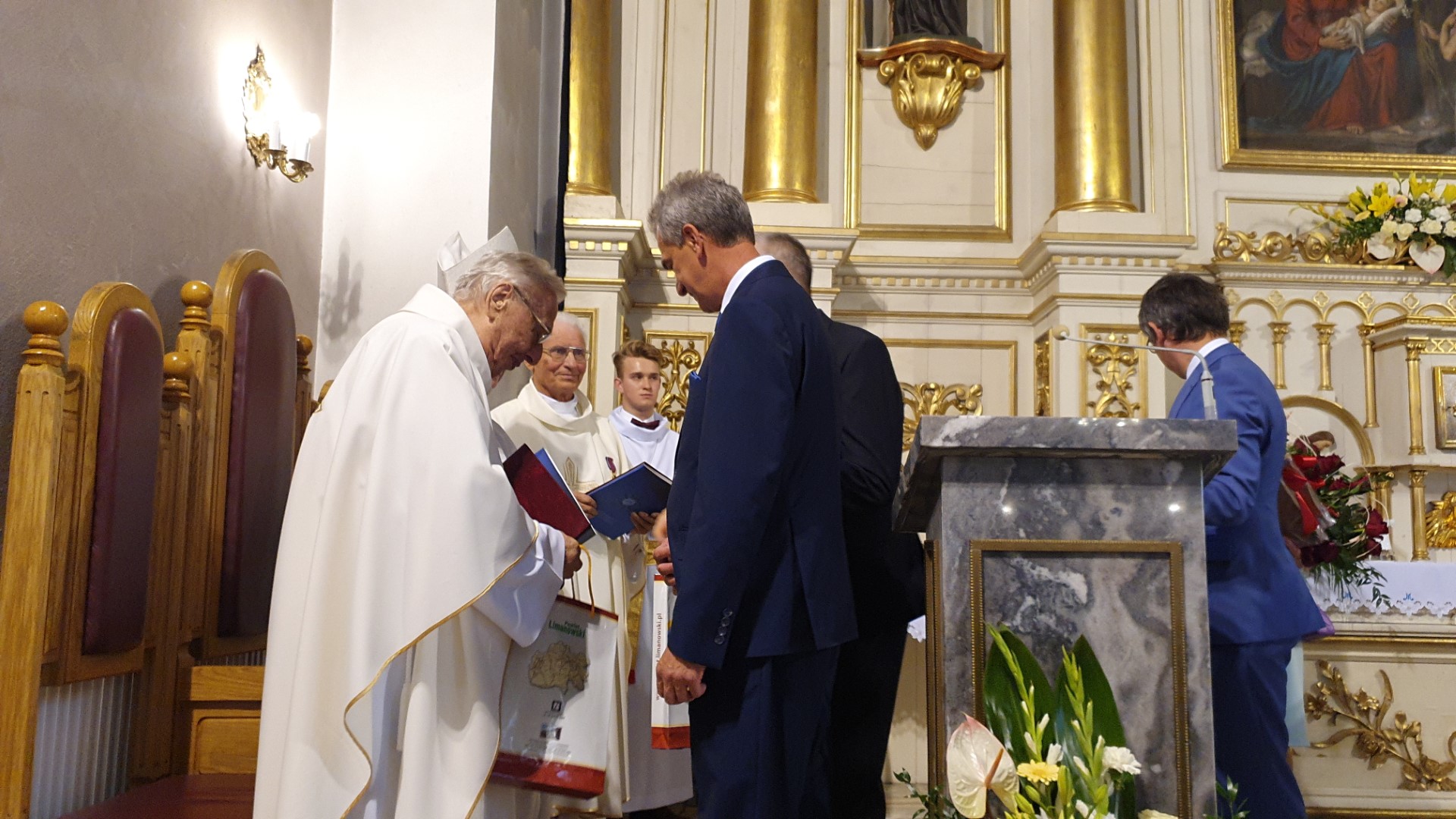 Drodzy, czcigodni kapłani. Księże Prałacie Józefie, Księże Kanoniku Franciszku. To refleksja ks. Jana Twardowskiego przedstawiająca we właściwy Mu humorystyczny sposób, takie zwykłe, ludzkie spojrzenie na postać kapłana. Ale dzisiaj w tym uroczystym momencie, gdy podczas parafialnego odpustu jesteśmy uczestnikami odznaczenia Was Złotymi Krzyżami Zasługi przyznanymi przez Pana Prezydenta Andrzeja Dudę, uświadamiamy sobie przede wszystkim duchową wartość kapłaństwa, ale również jego znaczenie dla Państwa i Obywateli. Święty Jan Paweł II zwracając się do kapłanów 11 stycznia 1981 r. w Rzymie powiedział: „Kapłaństwo to urząd, to posługa, to pośrednictwo między Bogiem a ludźmi. Kapłaństwo jest dla Kościoła, dla wspólnoty, dla braci, dla świata ! Kapłaństwo jest apostolskie. Kapłaństwo jest misyjne. Kapłaństwo jest wykonywaniem pośrednictwa. Kapłaństwo jest ze swej istoty społeczne. Kapłaństwo jest Miłością.”
