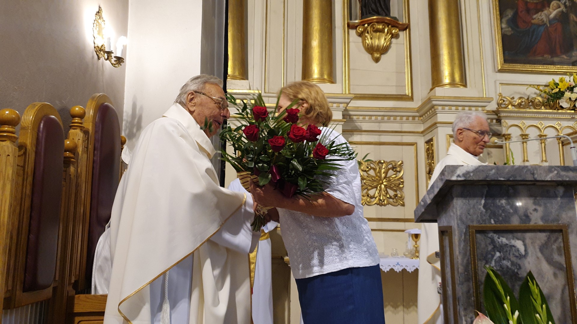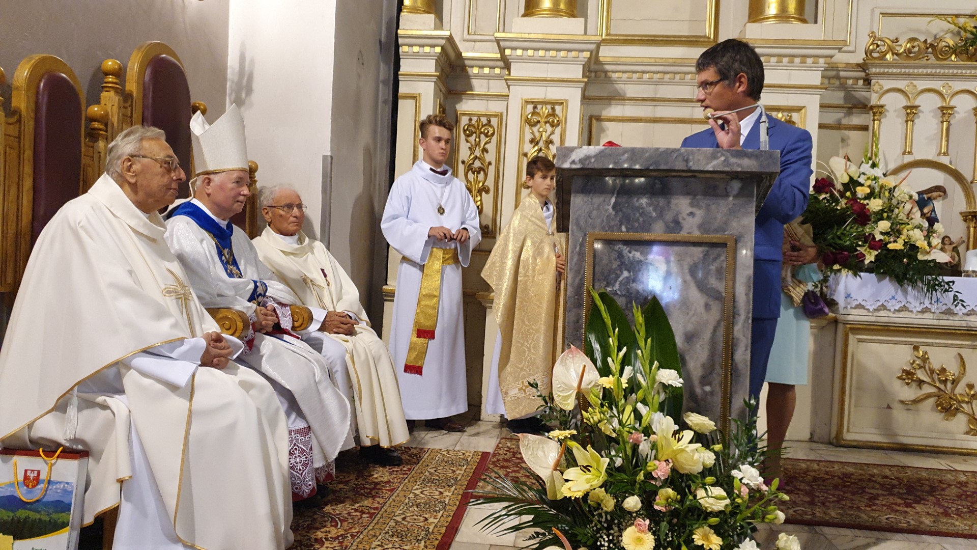 Przez ten czas pozostaliście wierni ofiarnej służbie Bogu i poświęceniu się drugiemu człowiekowi. Prosimy więc, przyjmijcie od naszej wspólnoty parafialnej serdeczne słowa podziękowania za wieloletnie duszpasterskie posługiwanie, a szczególnie za dzieła duchowe i dokonania materialne jakie pozostały do dziś z okresu pełnienia przez Was funkcji proboszczów – Księdza Józefa w naszej tymbarskiej parafii pod wezwaniem Narodzenia Najświętszej Maryi Panny i Księdza Franciszka w parafii Najświętszej Maryi Panny Wniebowziętej w Wysowej-Zdroju.