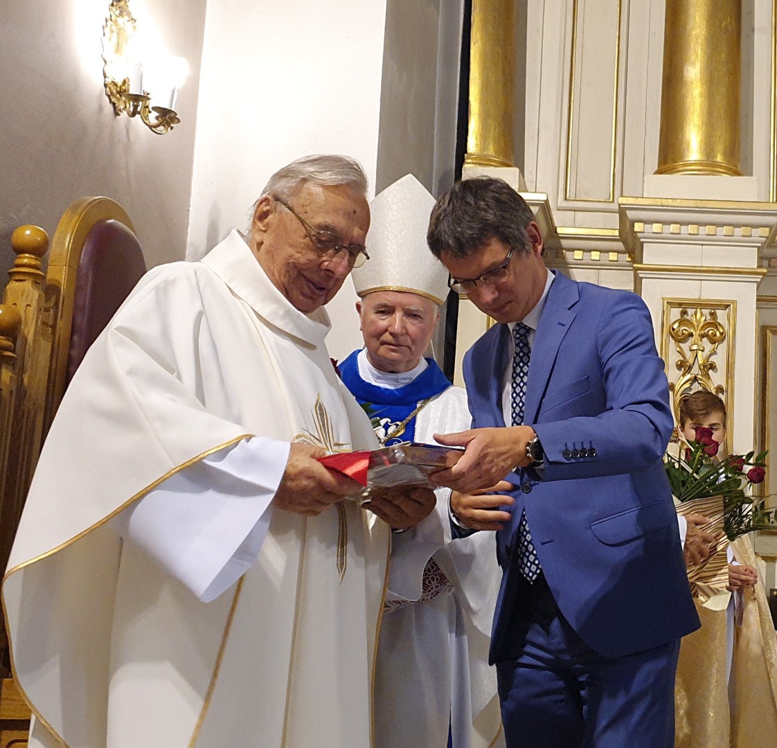 Proszę Księdza, obecnie pracujących jest trzydziestu księży rodaków z Parafii Tymbark. Ksiądz jest z nich najstarszy. Dwa lata temu Parafia Tymbark oraz Parafia Podłopień dziękowała za 60 lat Księdza posługi kapłańskiej. I nadszedł dzień, że otrzymuje Ksiądz od Prezydenta Polski Złoty Krzyż Zasługi.