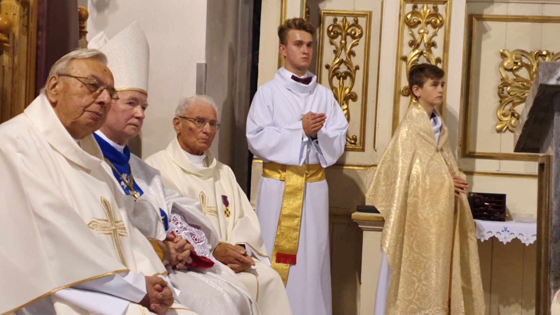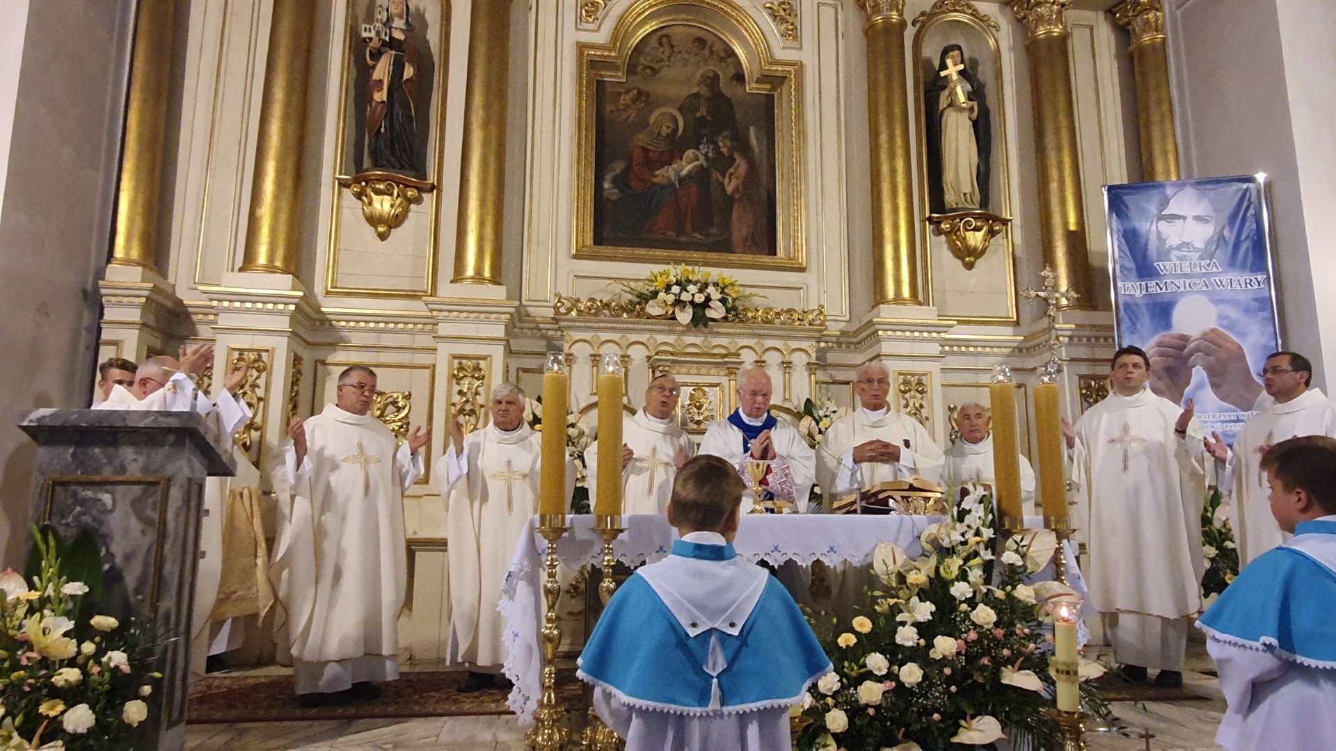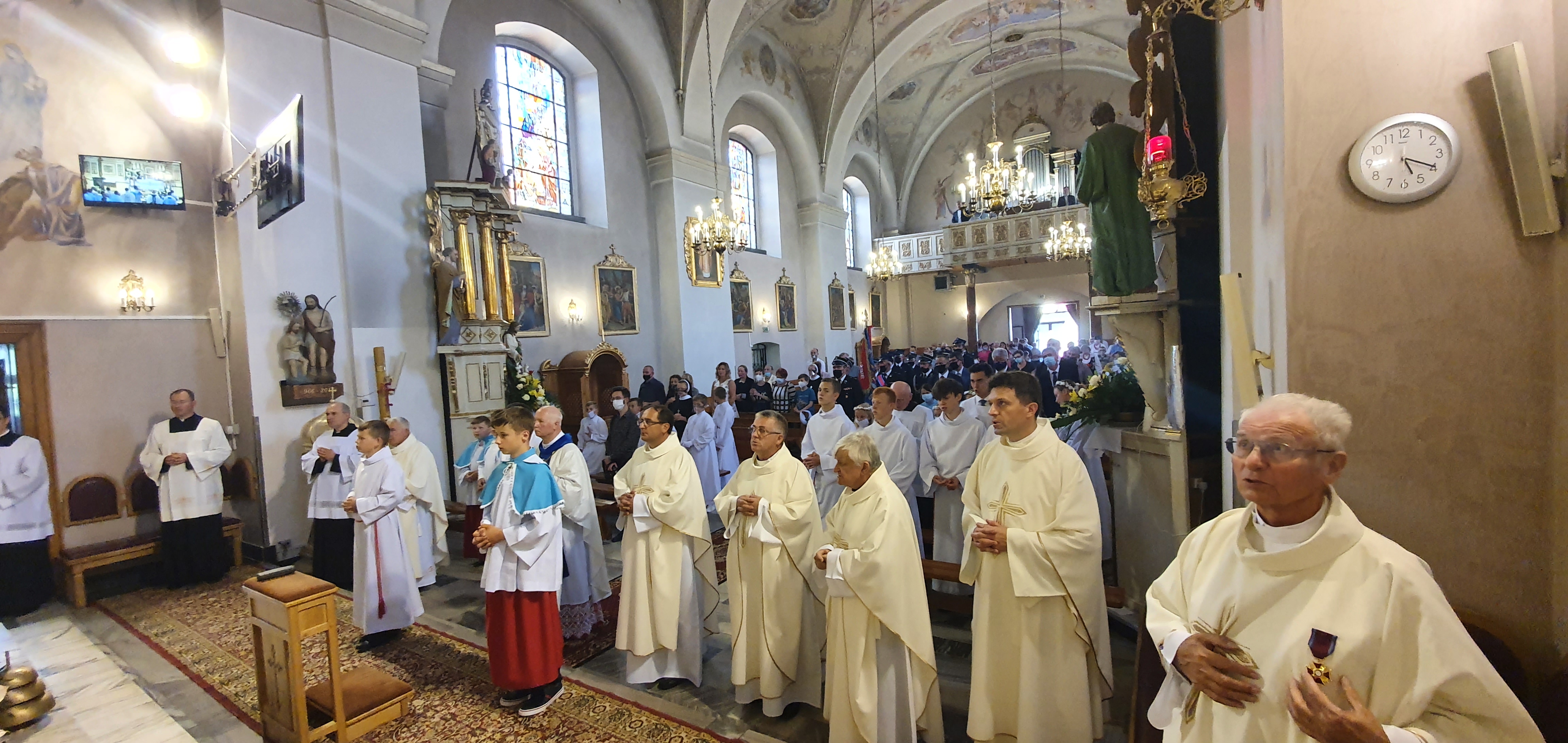 Uroczystej odpustowej,koncelebrowanej, Mszy św. o 11.30 w tymbarskiej parafii pod wezwaniem Narodzin Najświętszej Marii Panny, połączonej z aktem wręczenia Złotych Krzyży Zasługi kapłanom prałatowi Józefowi Leśniakowi oraz kanonikowi Franciszkowi Malarzowi, przewodniczył i kazanie wygłosił ksiądz Infułat Adam Kokoszka.