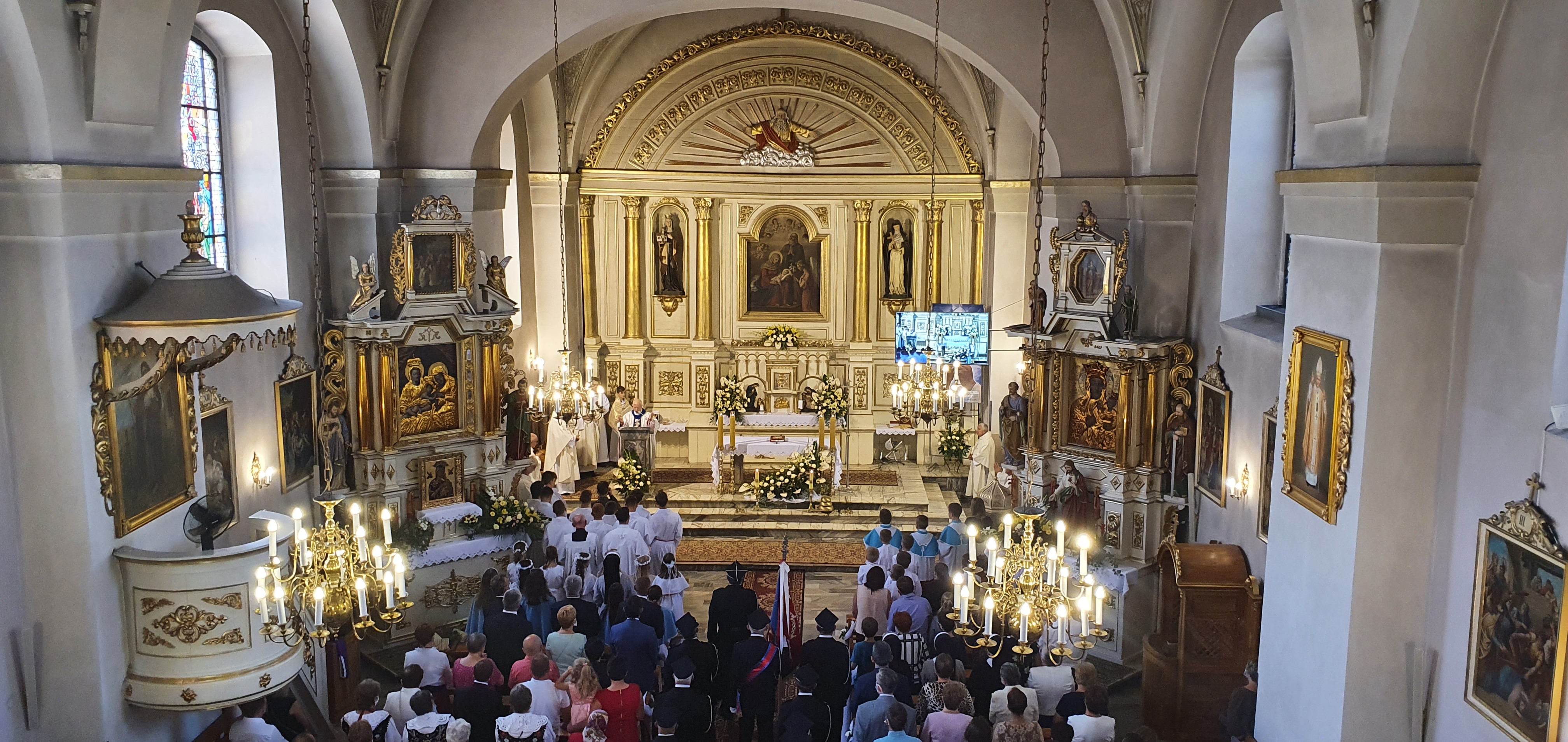 Mszę świętą zakończyła uroczysta procesja Eucharystyczna wokół kościoła.