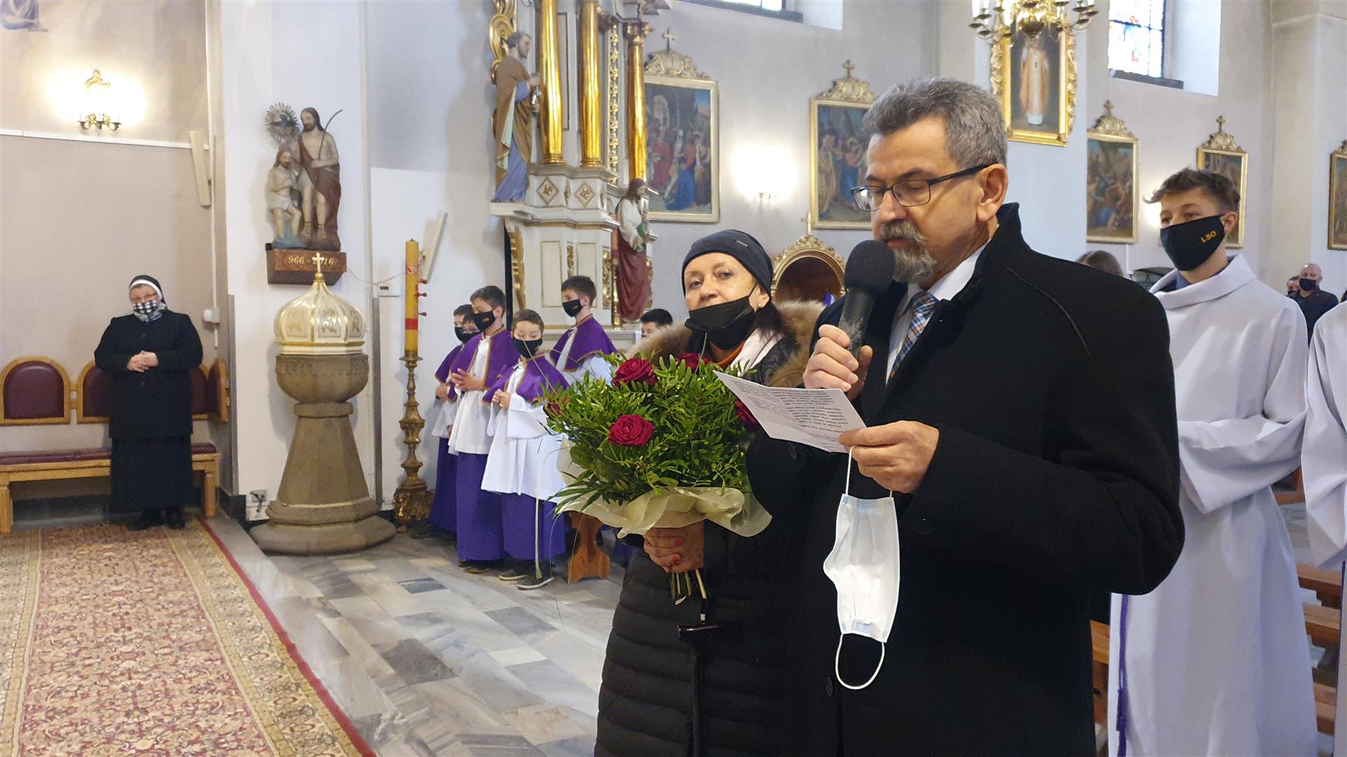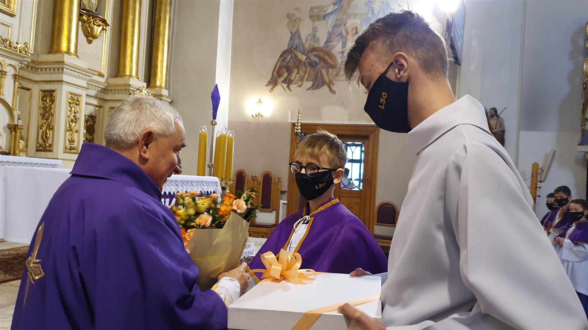 Życzenia księdzu Edwardowi złożyli ks.proboszcz Jan Banach, przedstawiciele parafii (Pani Marta Gajewska oraz Pan Józef Zoń) oraz przedstawiciele LSO oraz DSM. Muzyczną oprawę zapewnił chór parafialny pod kierownictwem Pana Piotra Taczanowskiego.