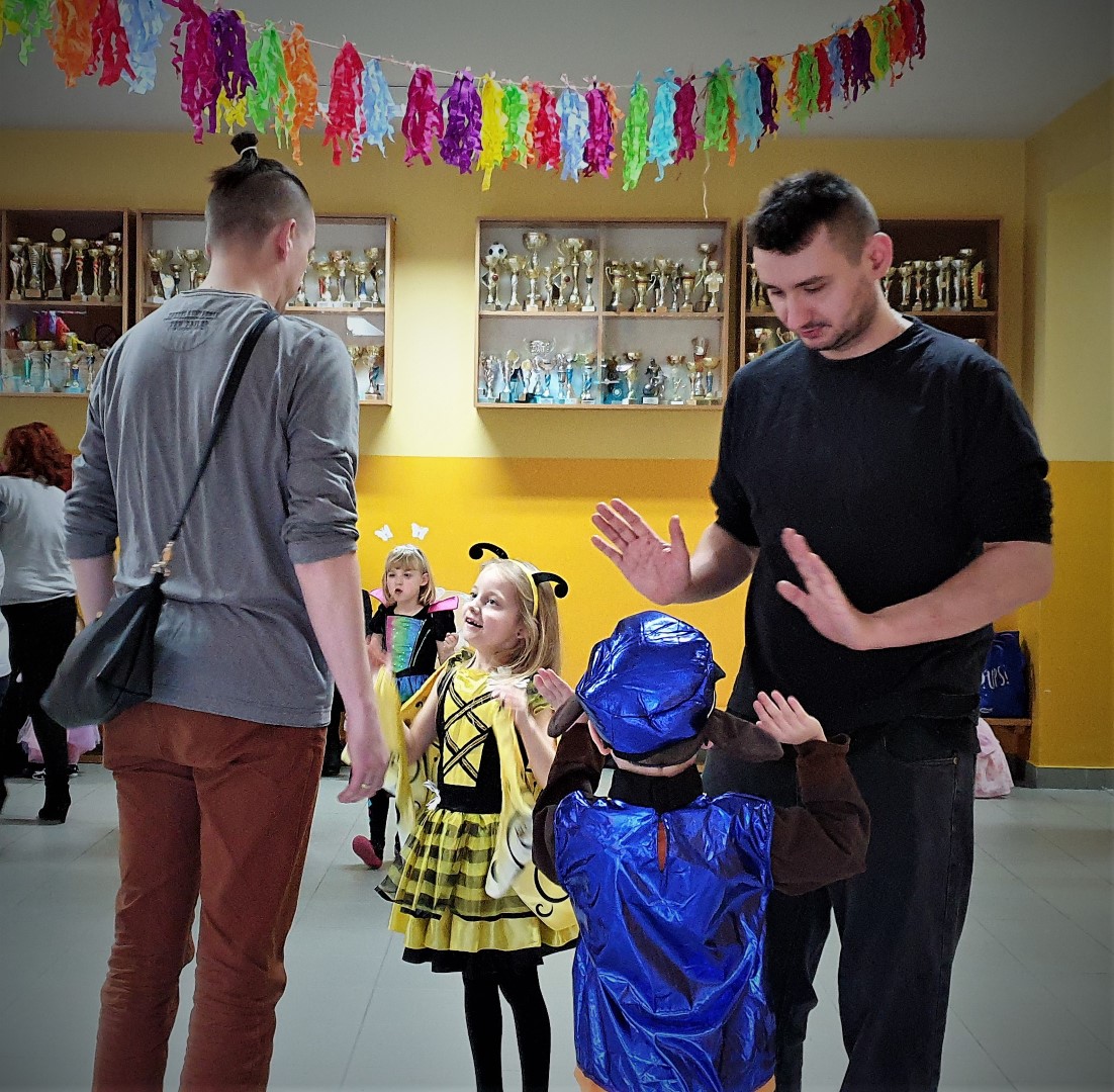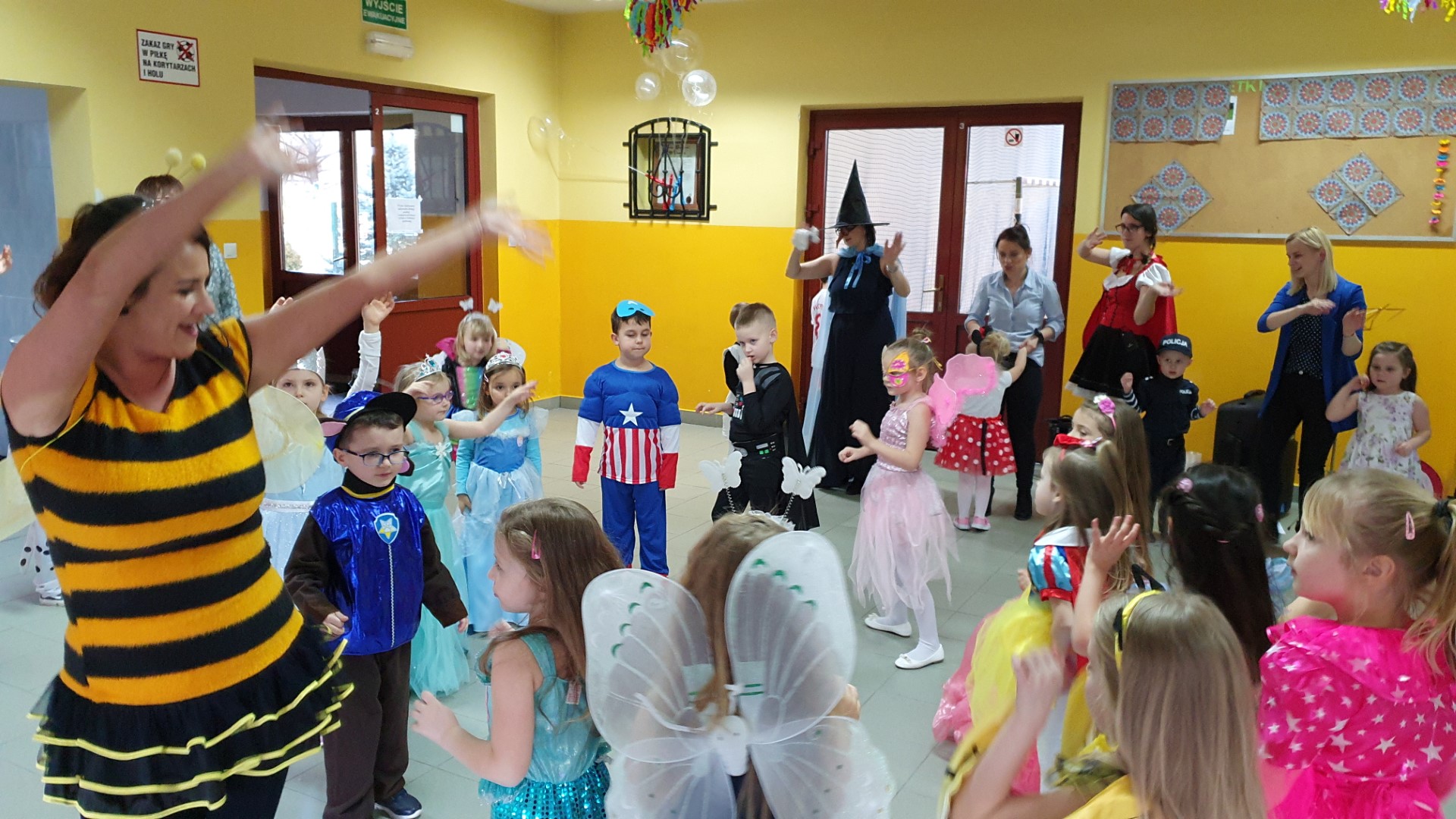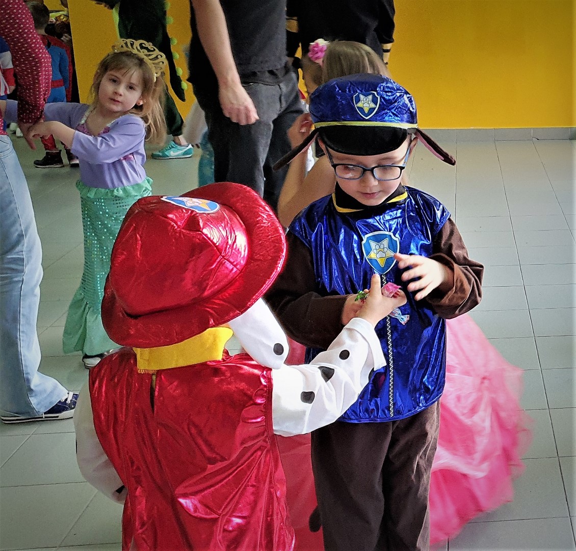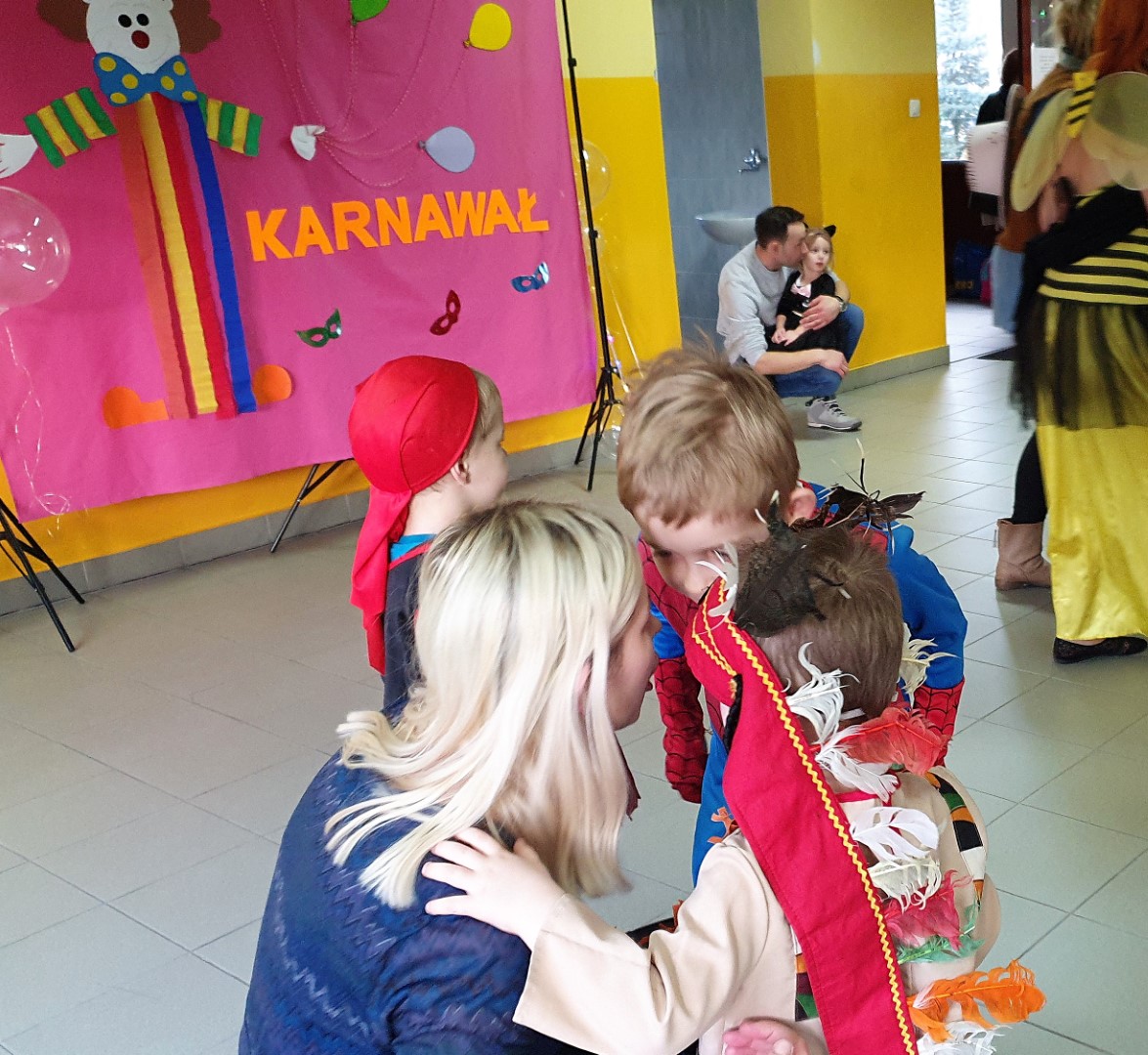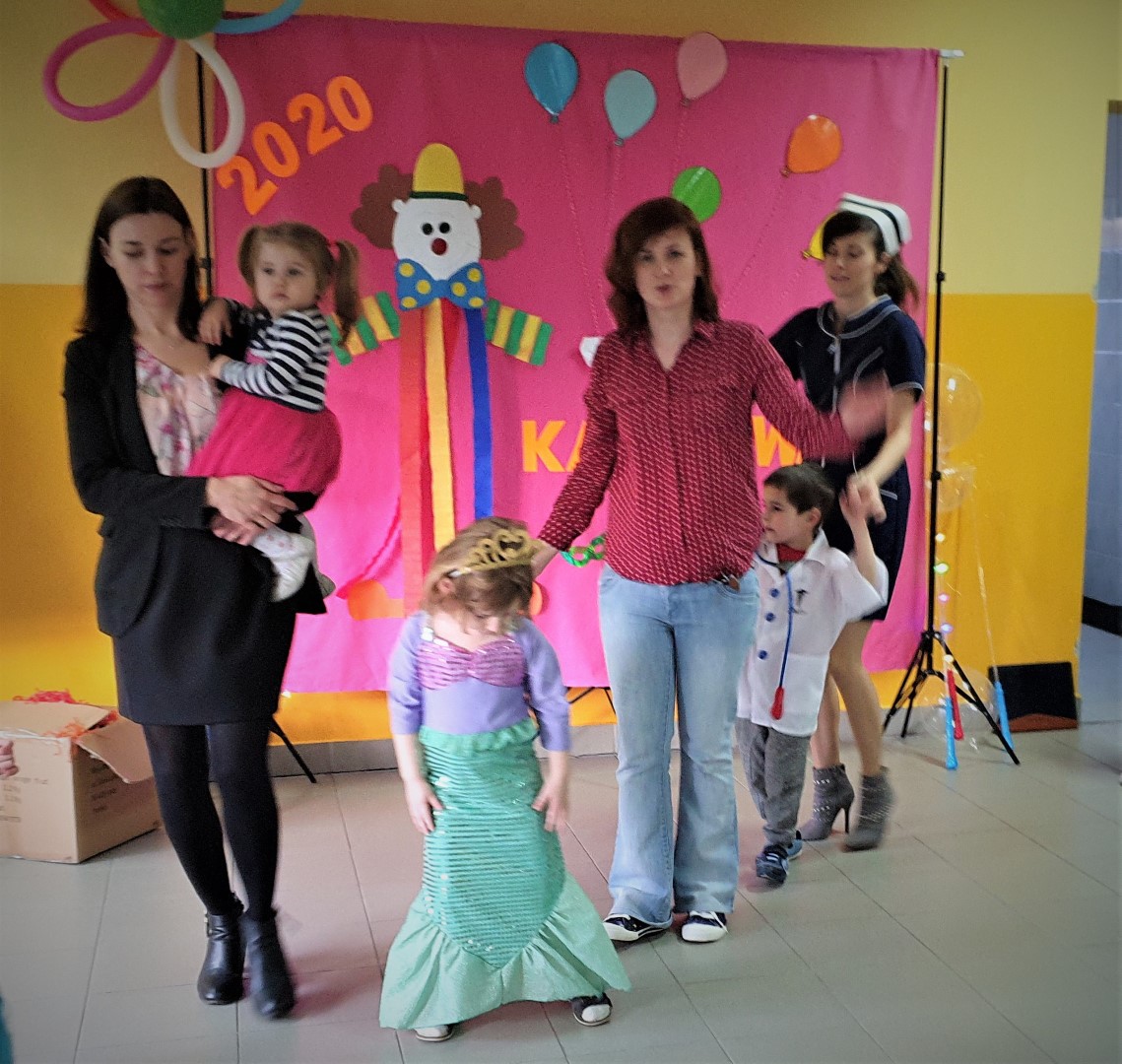 Dzisiaj dzieci z przedszkola „U Cioci Agatki” wraz rodzicami i opiekunami bawiło się na balu karnawałowym. Bal miał charakter przebierańcowy co było widać, nie tylko patrząc na dzieci, ale również na rodziców (szczególnie mamy). Były wspólne tańce, zabawy, w których udział brali nie tylko przedszkolaki, ale również rodzice.