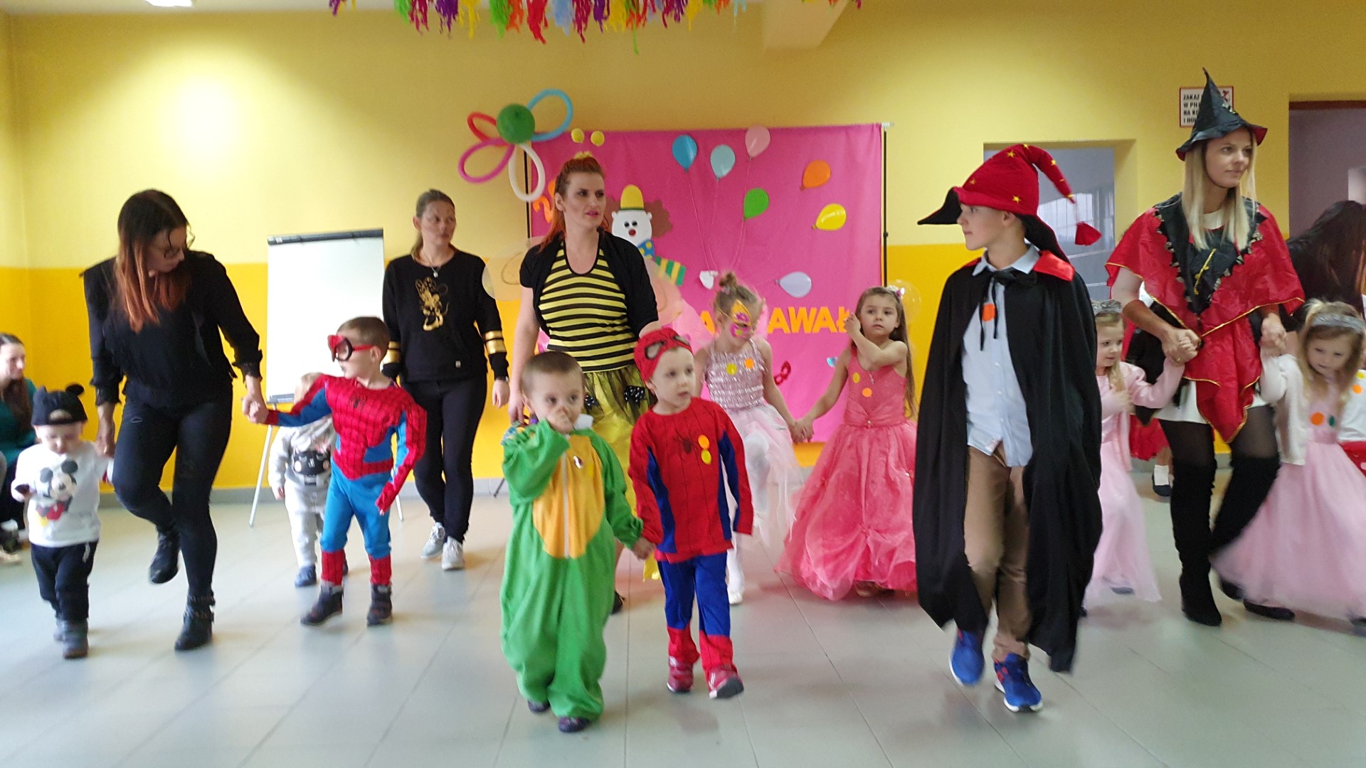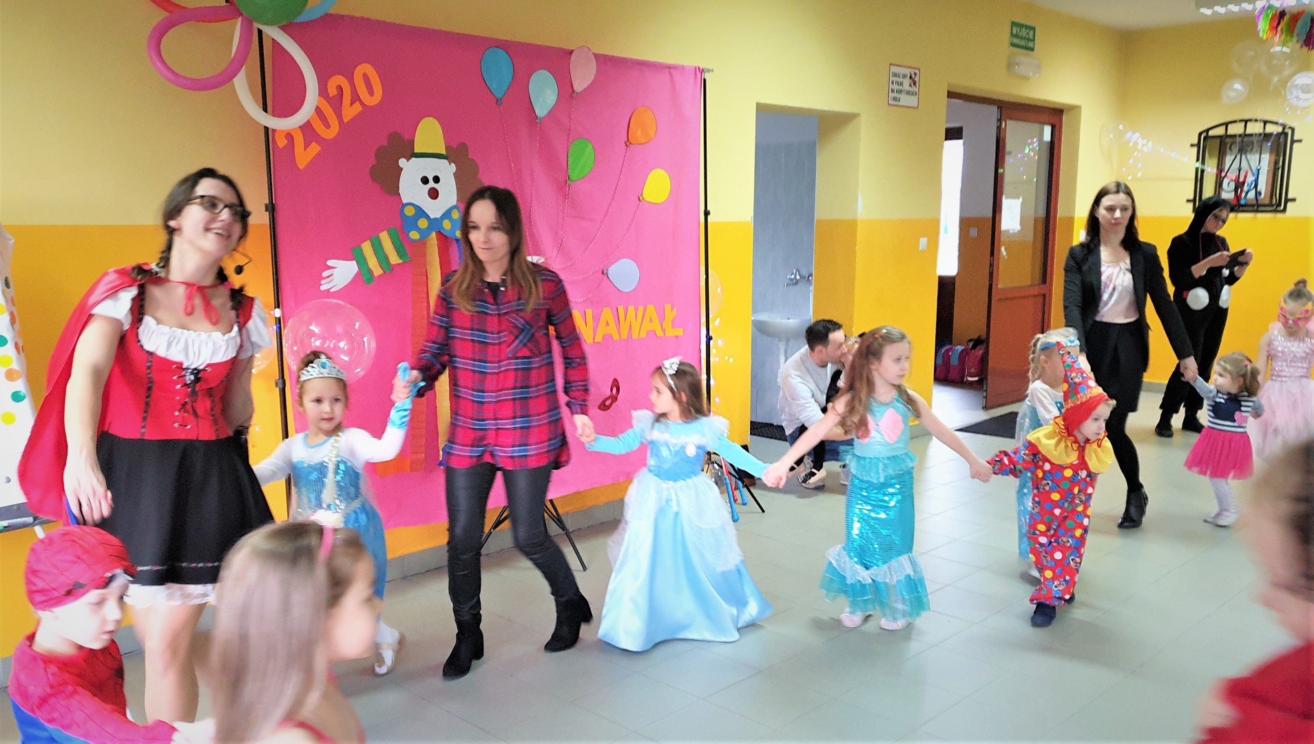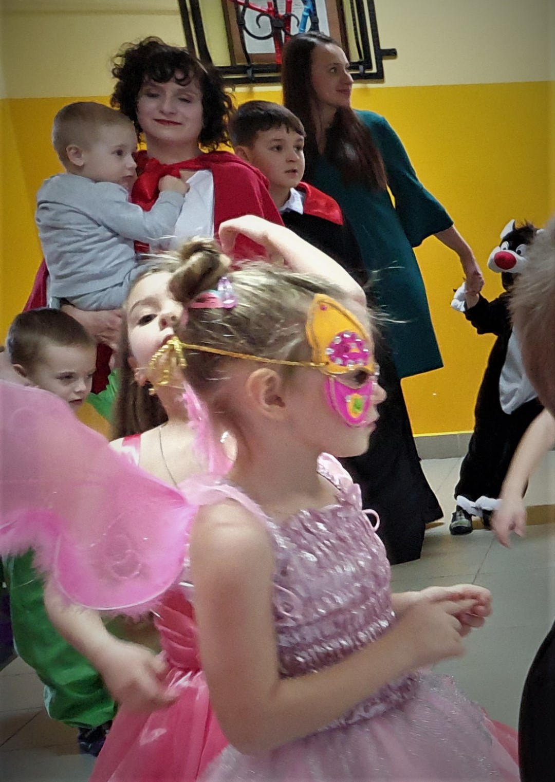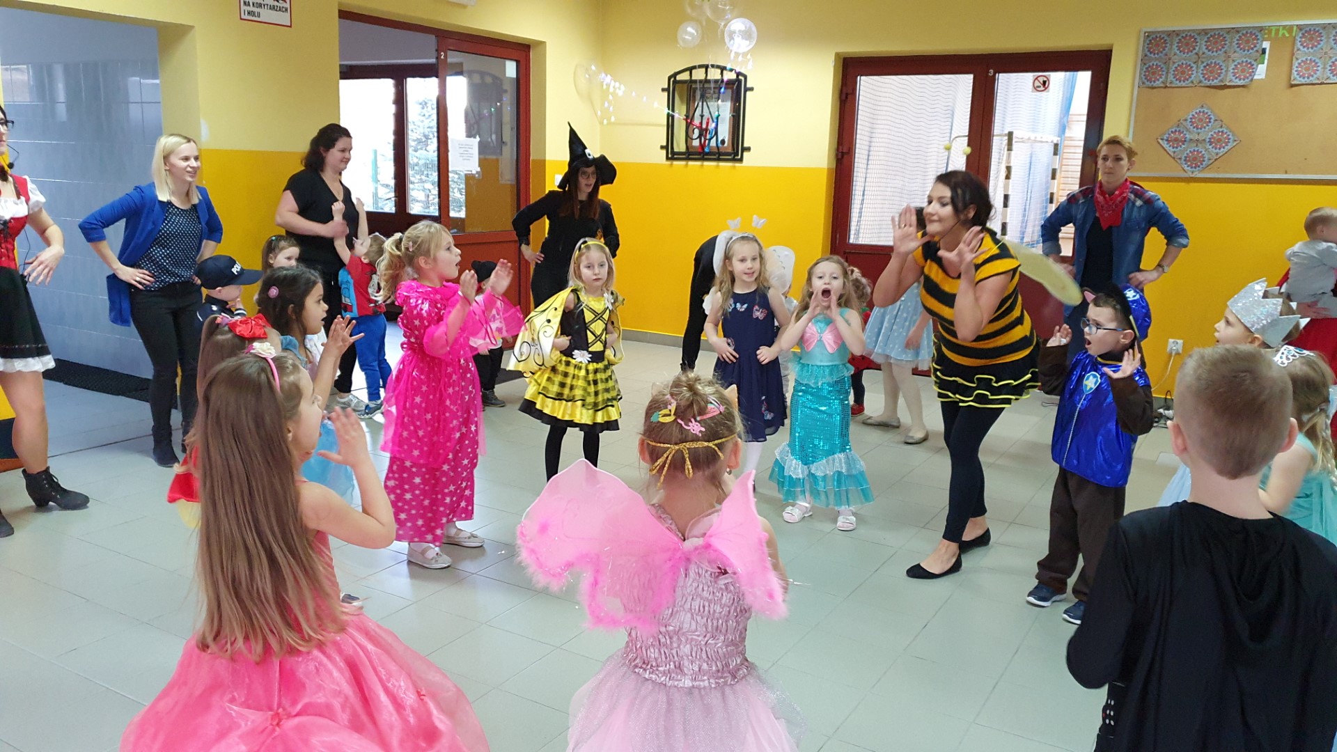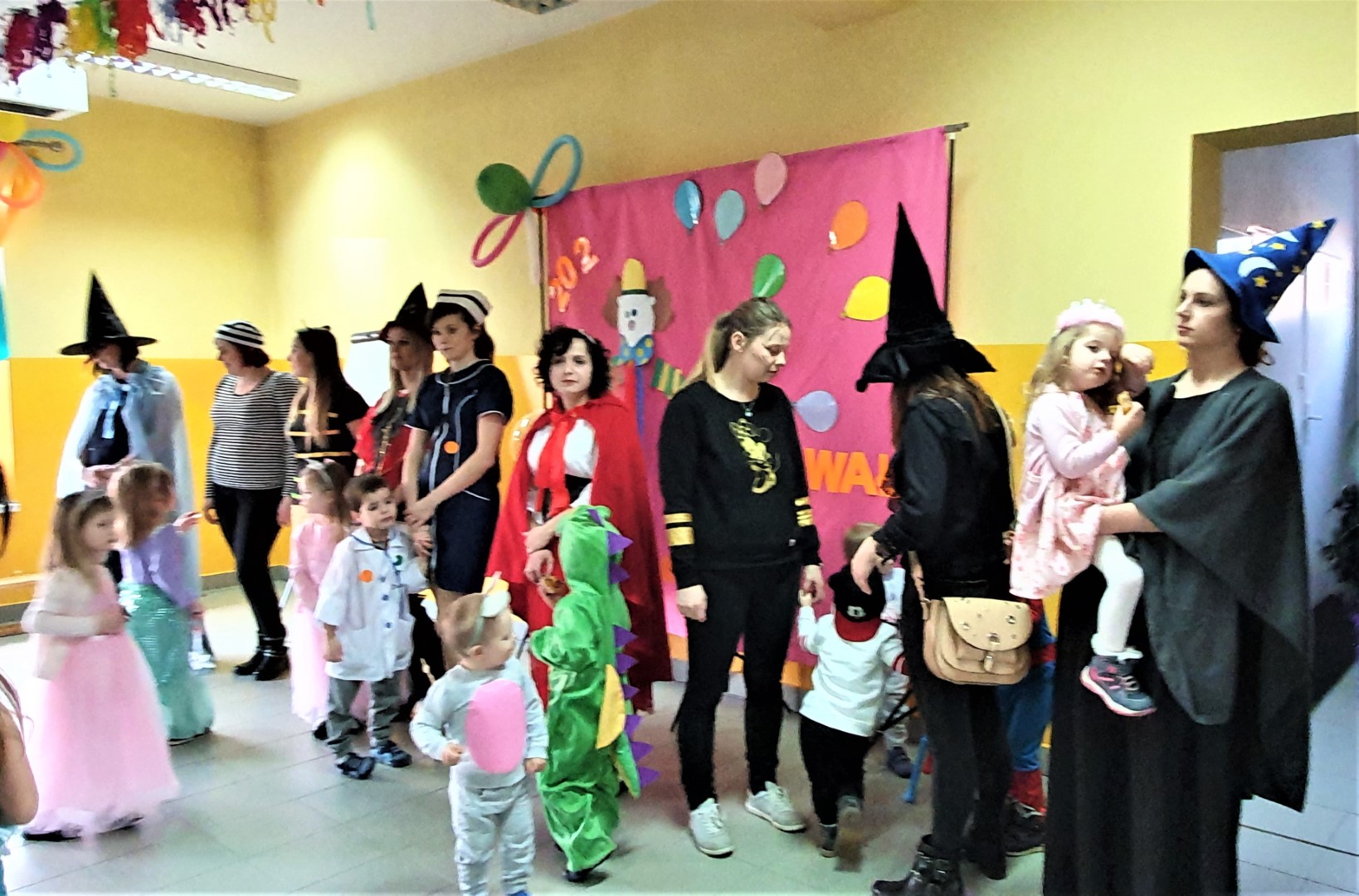 Dzisiaj dzieci z przedszkola „U Cioci Agatki” wraz rodzicami i opiekunami bawiło się na balu karnawałowym. Bal miał charakter przebierańcowy co było widać, nie tylko patrząc na dzieci, ale również na rodziców (szczególnie mamy). Były wspólne tańce, zabawy, w których udział brali nie tylko przedszkolaki, ale również rodzice.