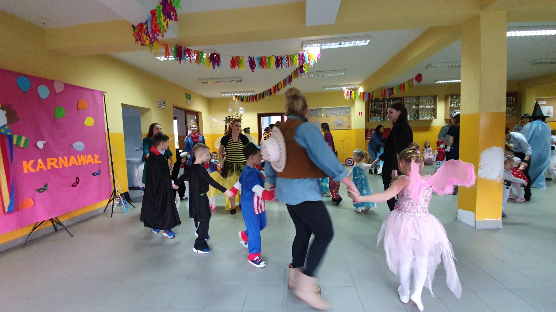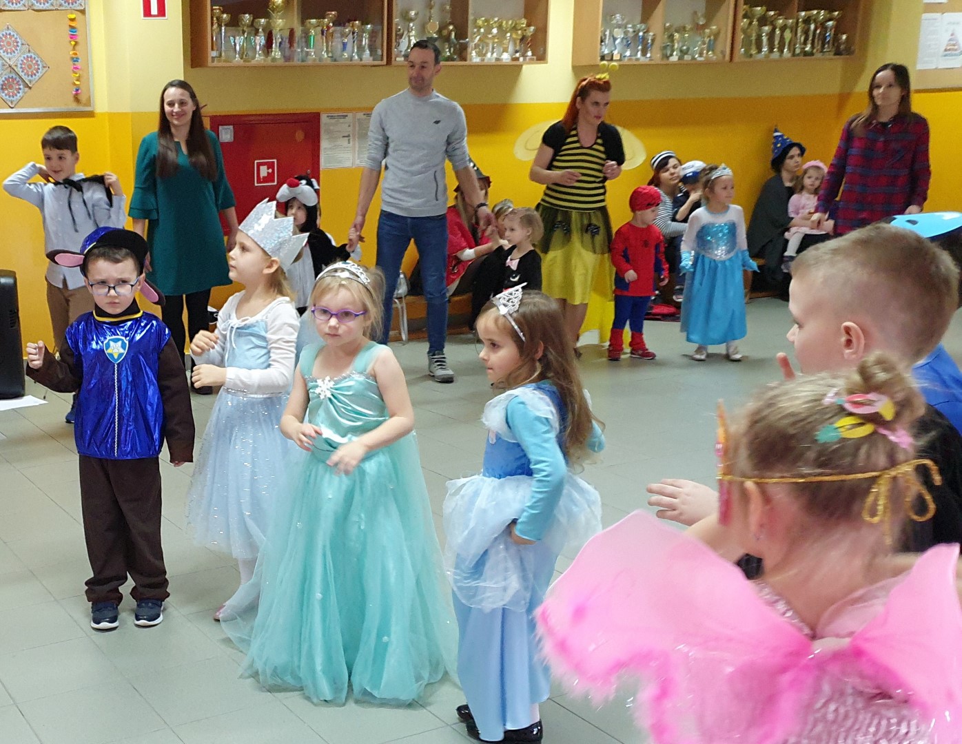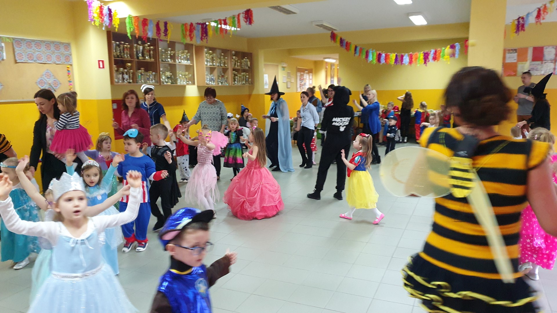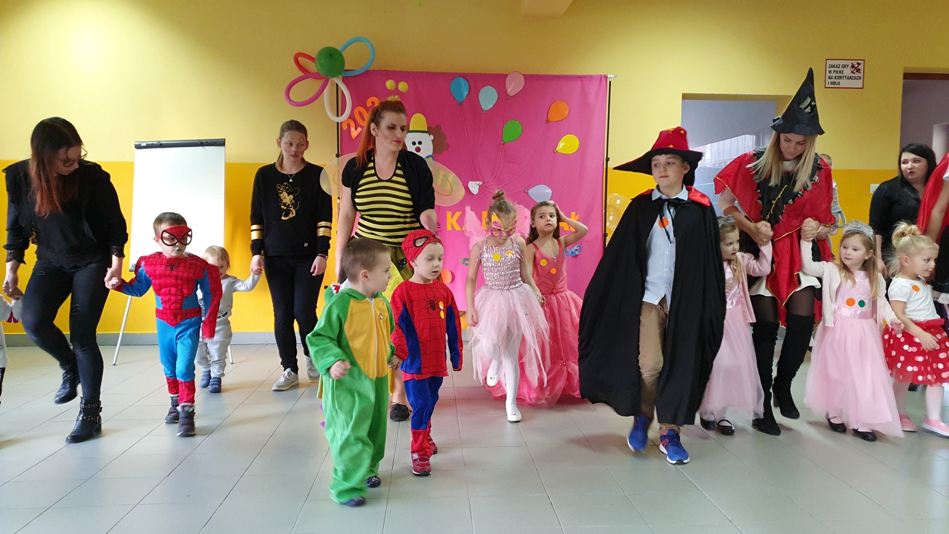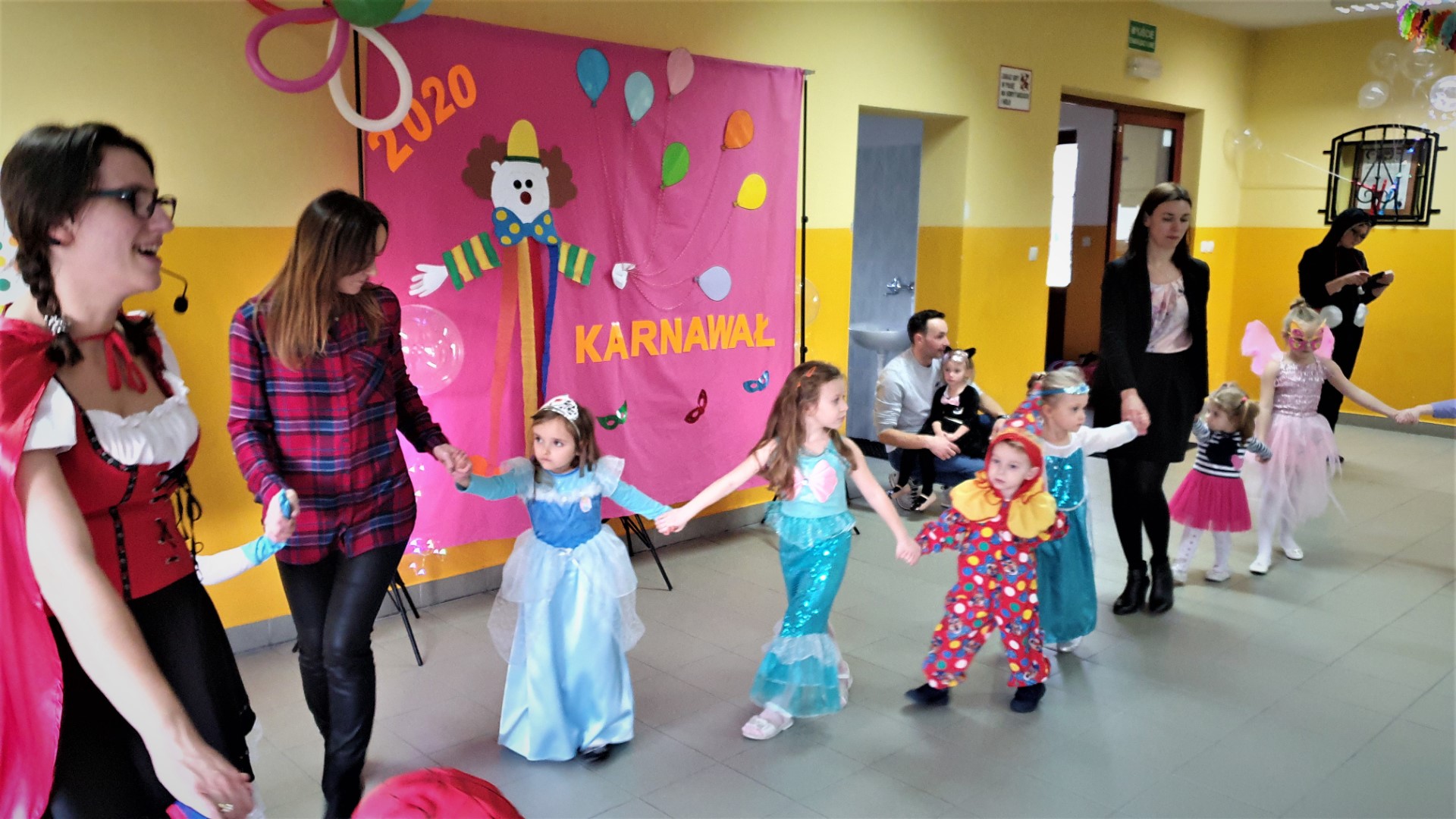 Dzisiaj dzieci z przedszkola „U Cioci Agatki” wraz rodzicami i opiekunami bawiło się na balu karnawałowym. Bal miał charakter przebierańcowy co było widać, nie tylko patrząc na dzieci, ale również na rodziców (szczególnie mamy). Były wspólne tańce, zabawy, w których udział brali nie tylko przedszkolaki, ale również rodzice.