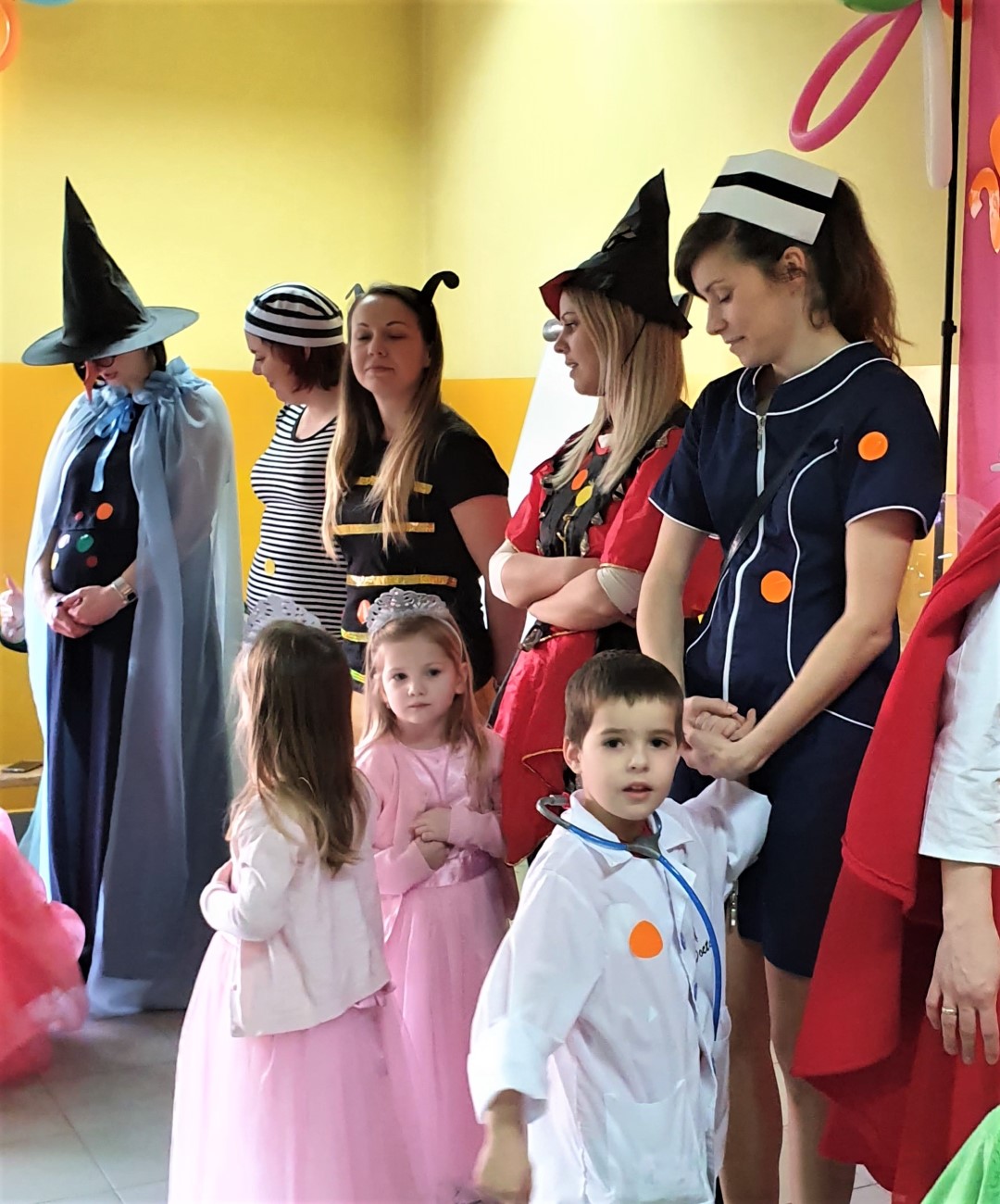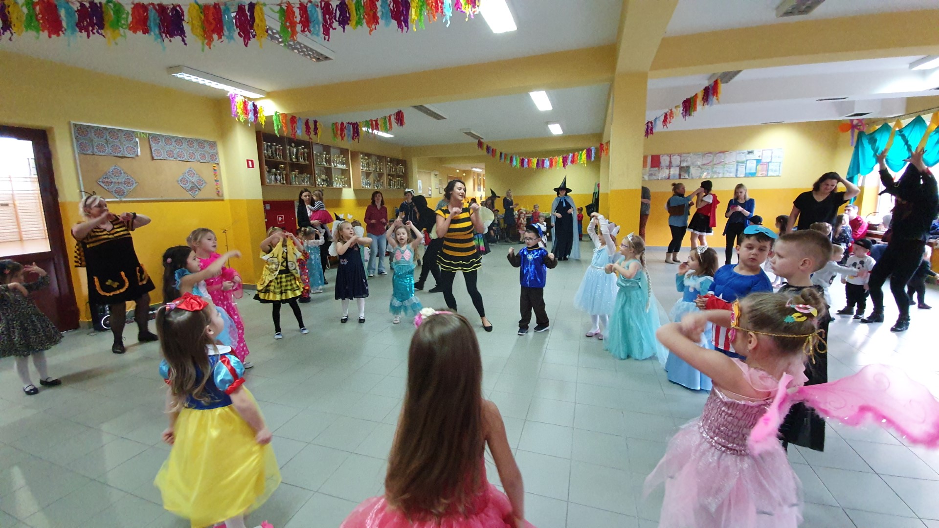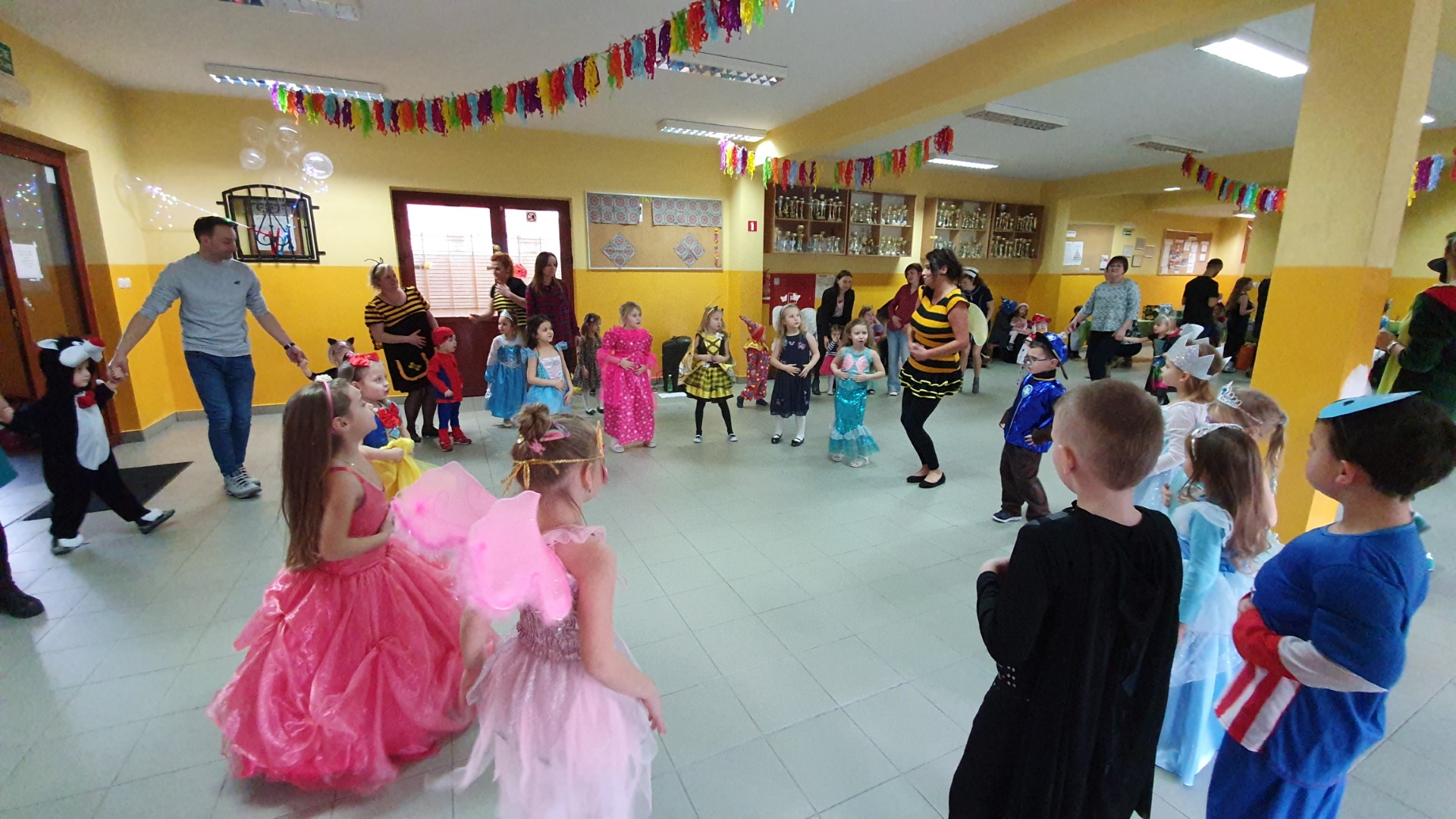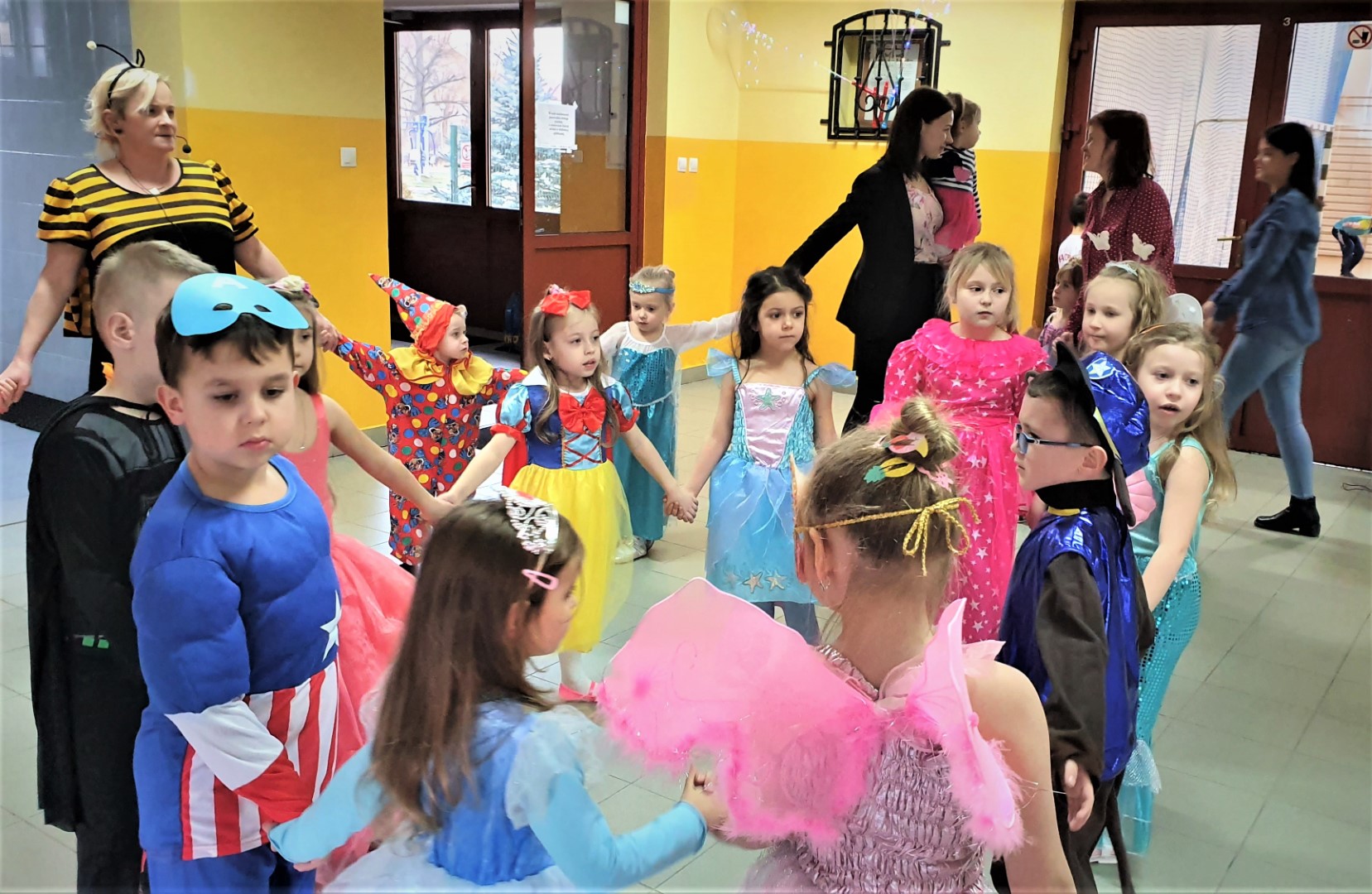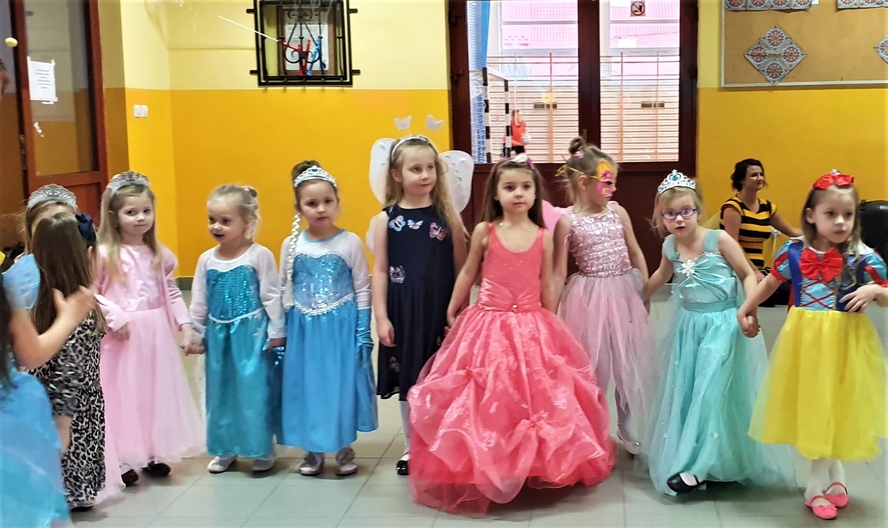 Dzisiaj dzieci z przedszkola „U Cioci Agatki” wraz rodzicami i opiekunami bawiło się na balu karnawałowym. Bal miał charakter przebierańcowy co było widać, nie tylko patrząc na dzieci, ale również na rodziców (szczególnie mamy). Były wspólne tańce, zabawy, w których udział brali nie tylko przedszkolaki, ale również rodzice.