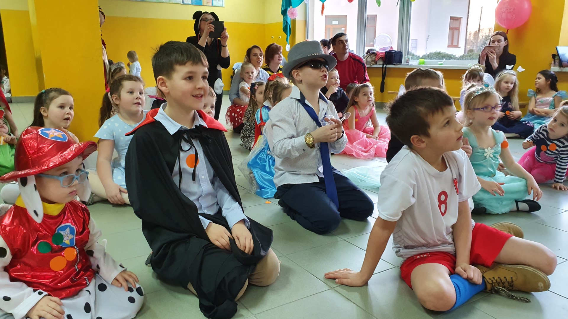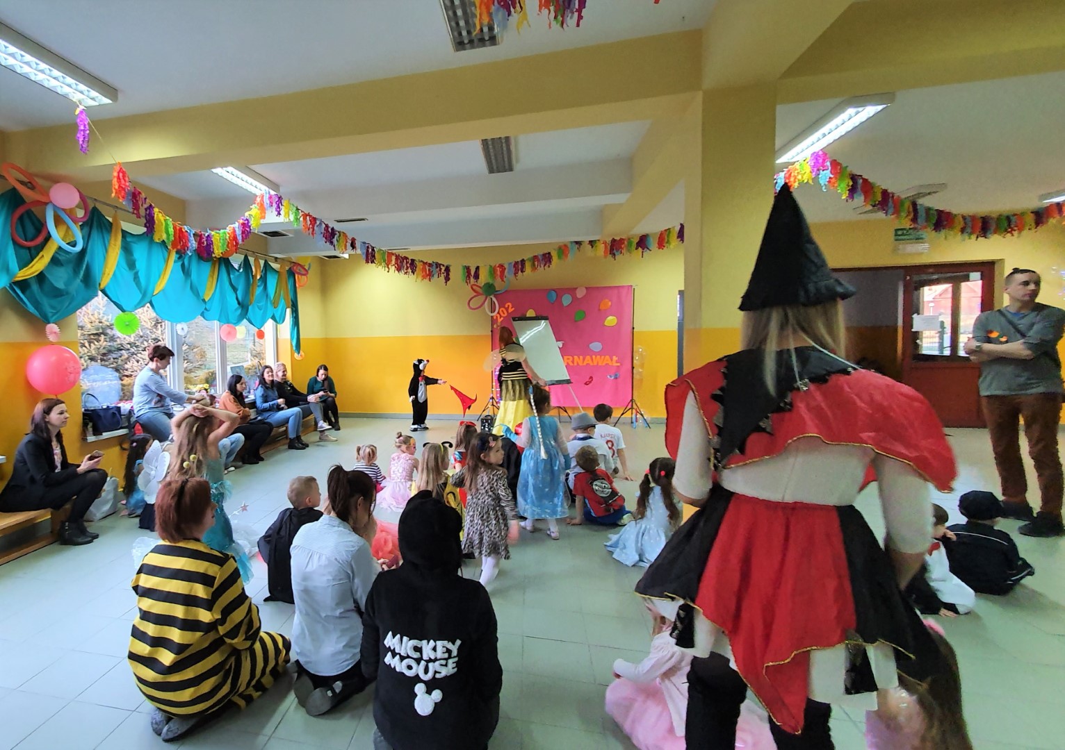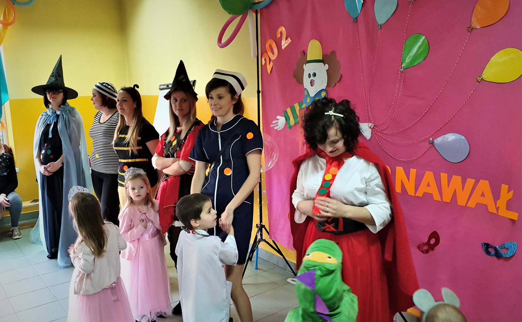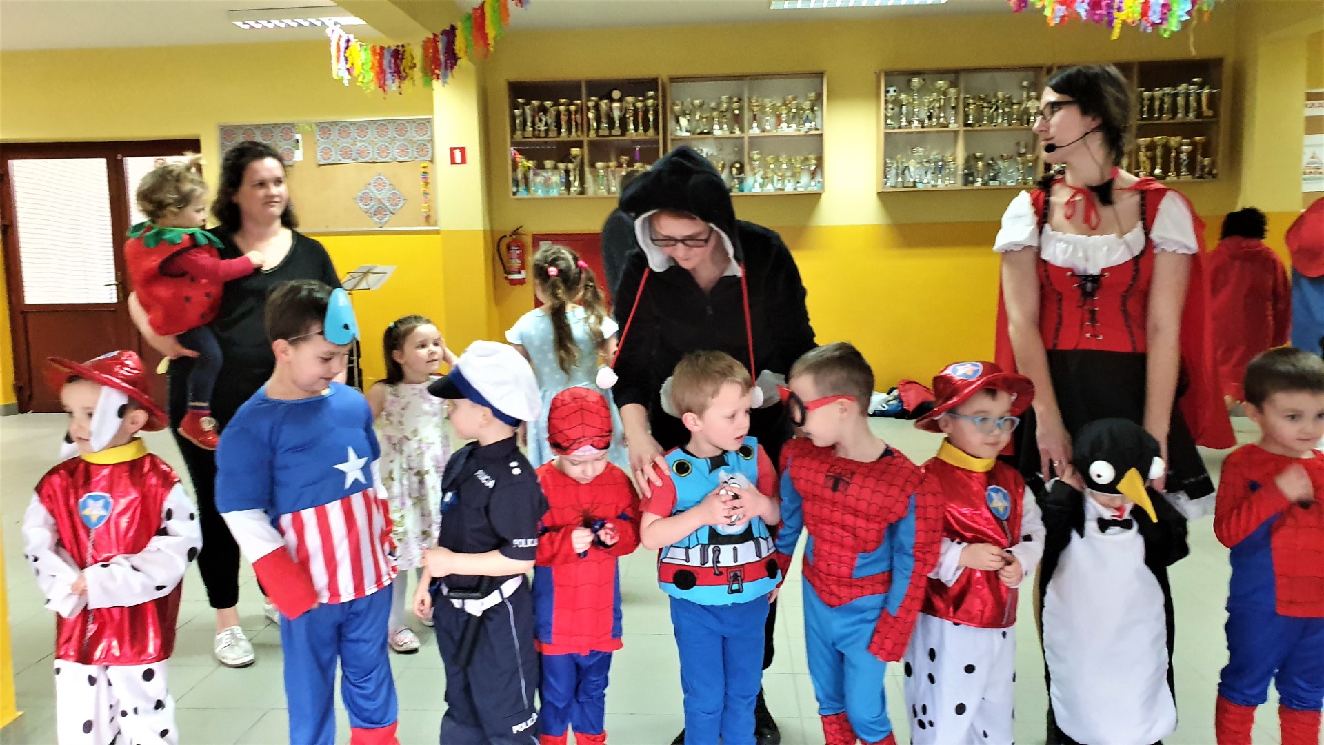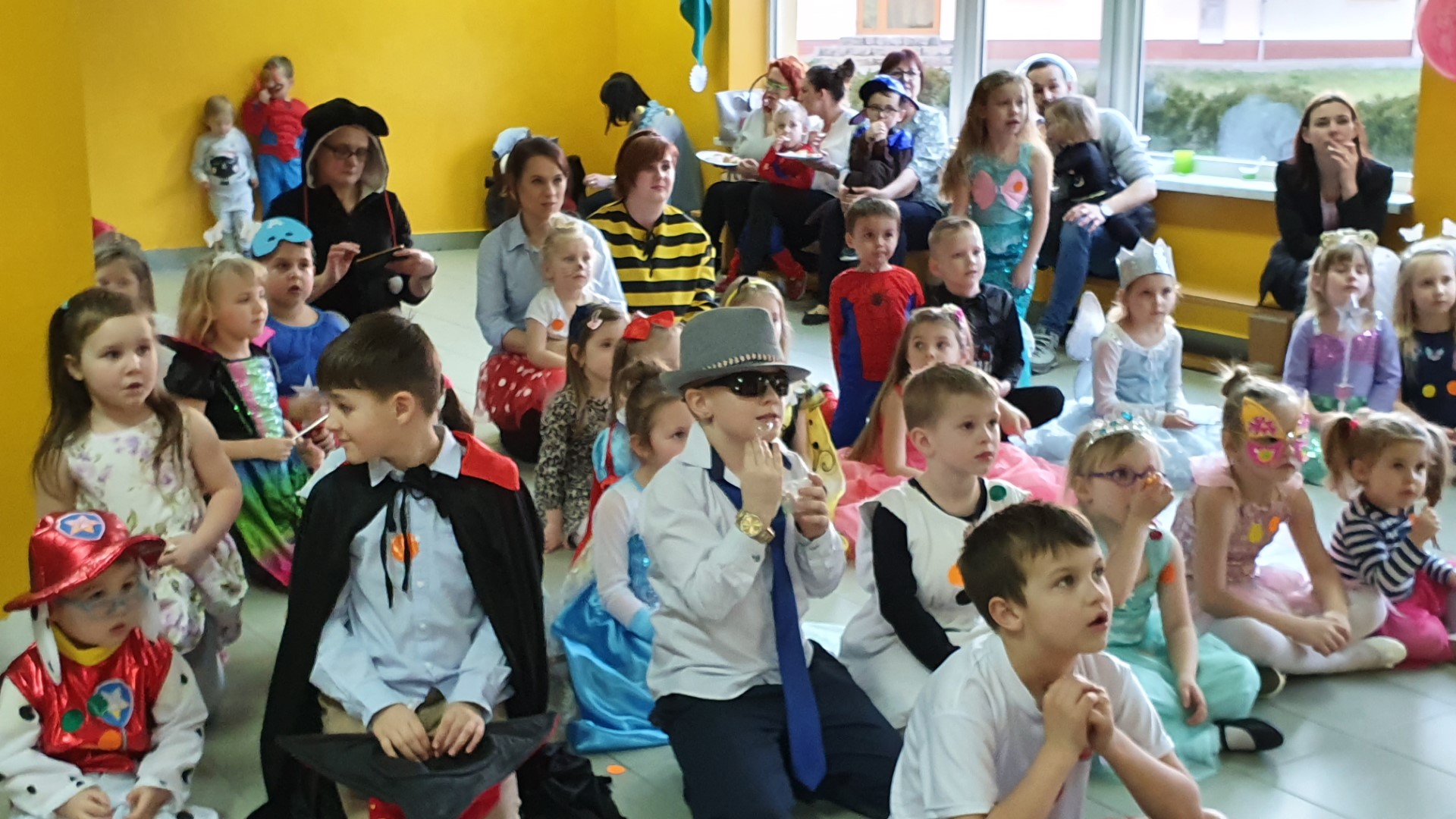 Dzisiaj dzieci z przedszkola „U Cioci Agatki” wraz rodzicami i opiekunami bawiło się na balu karnawałowym. Bal miał charakter przebierańcowy co było widać, nie tylko patrząc na dzieci, ale również na rodziców (szczególnie mamy). Były wspólne tańce, zabawy, w których udział brali nie tylko przedszkolaki, ale również rodzice.