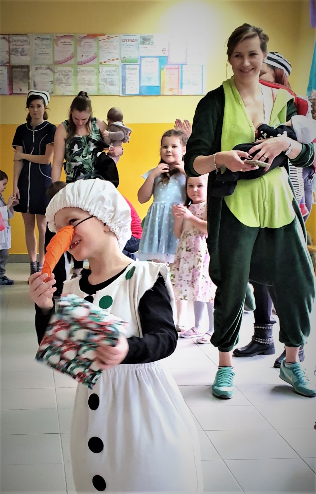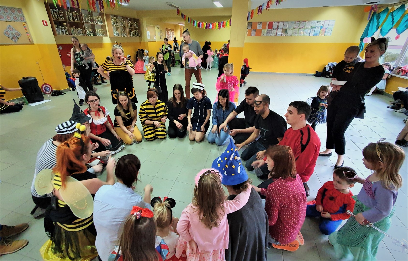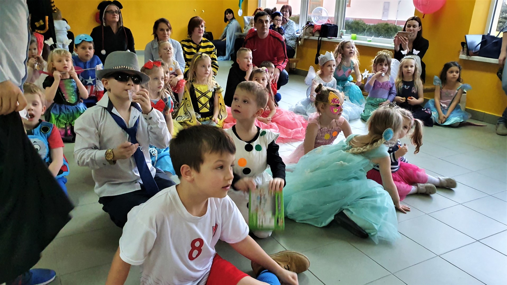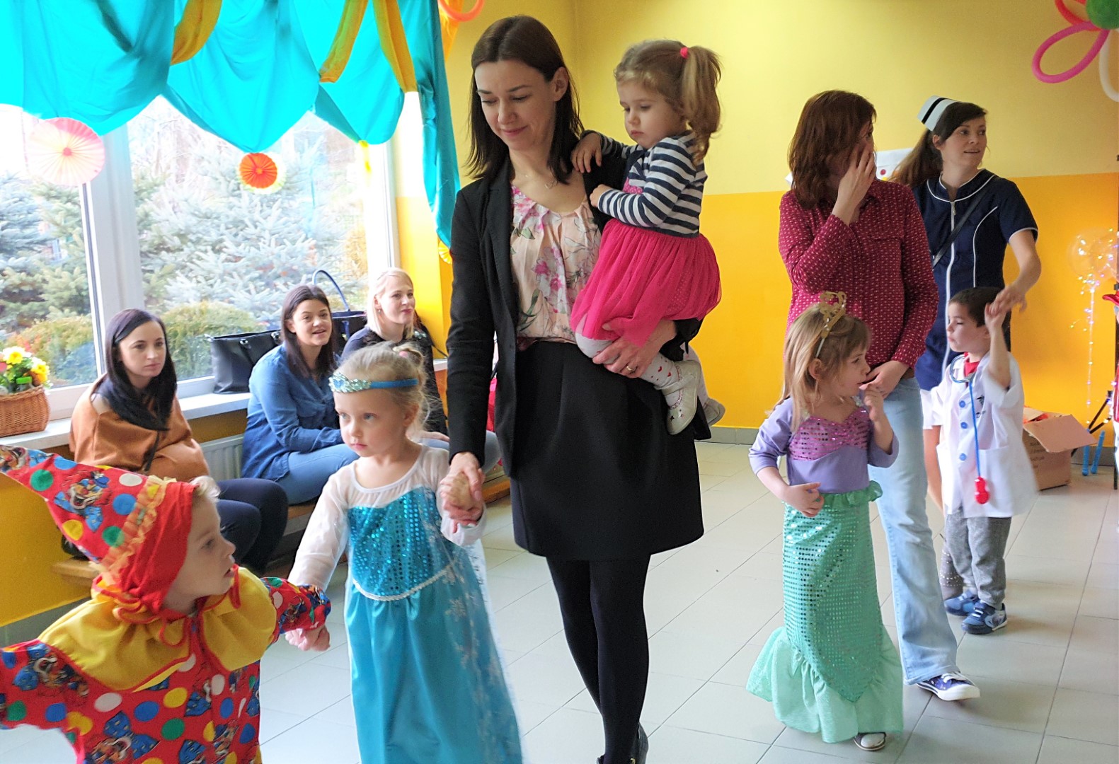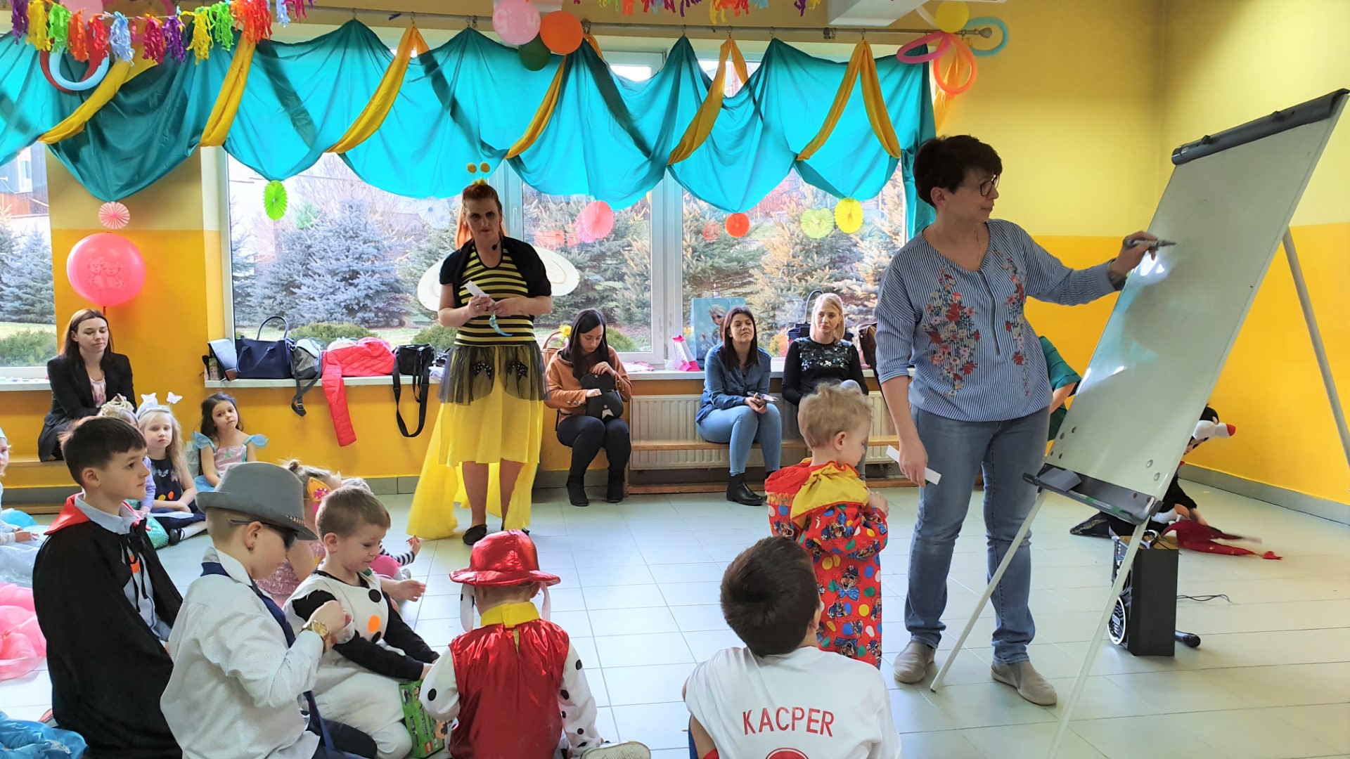 Dzisiaj dzieci z przedszkola „U Cioci Agatki” wraz rodzicami i opiekunami bawiło się na balu karnawałowym. Bal miał charakter przebierańcowy co było widać, nie tylko patrząc na dzieci, ale również na rodziców (szczególnie mamy). Były wspólne tańce, zabawy, w których udział brali nie tylko przedszkolaki, ale również rodzice.