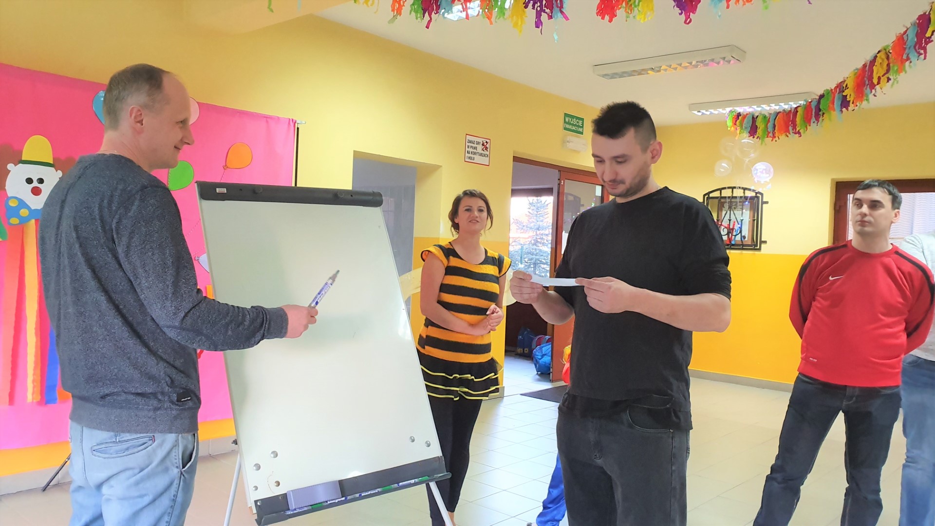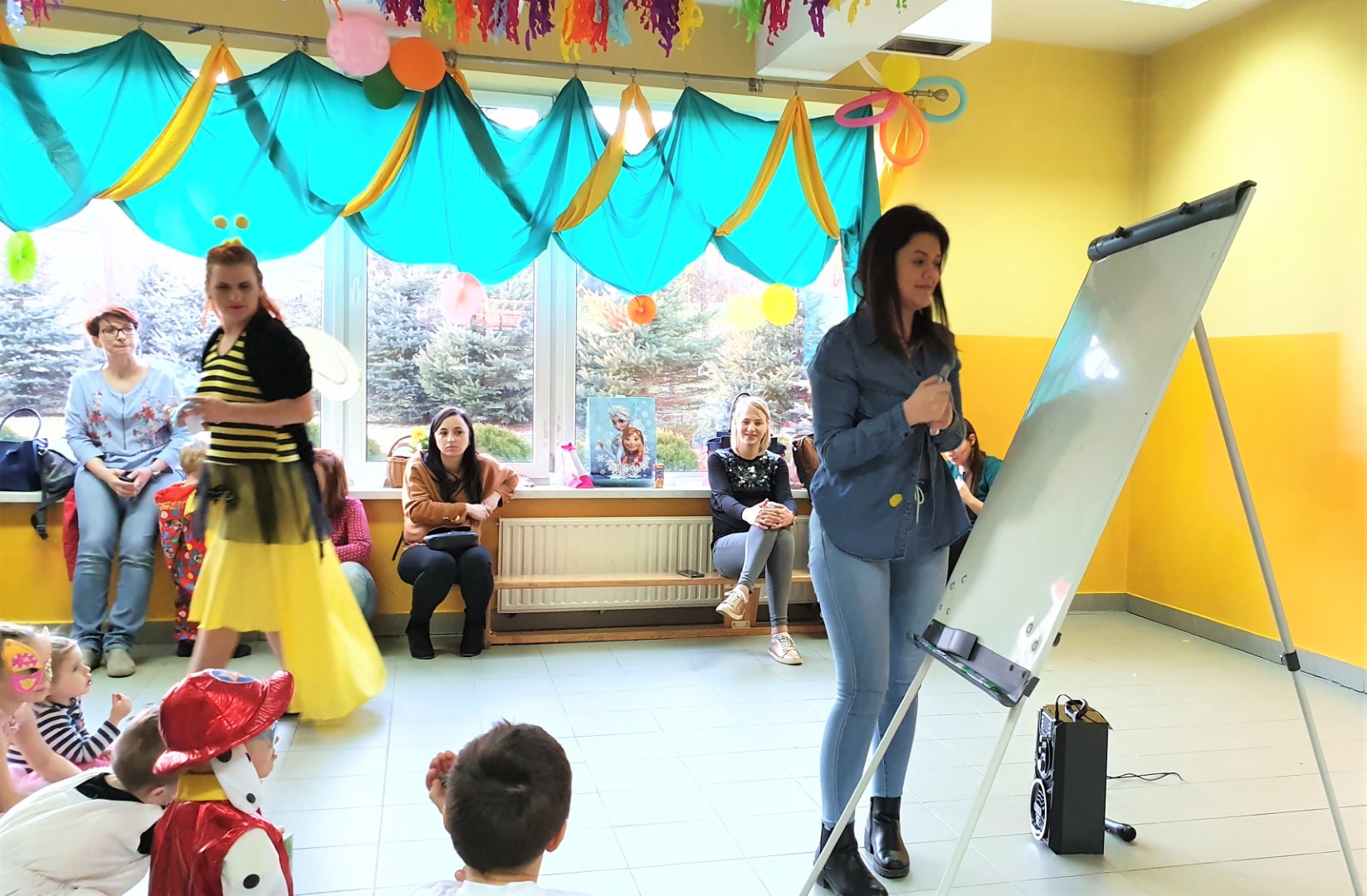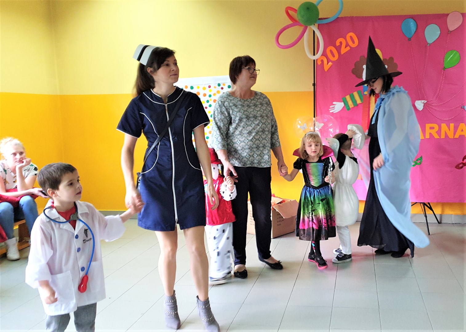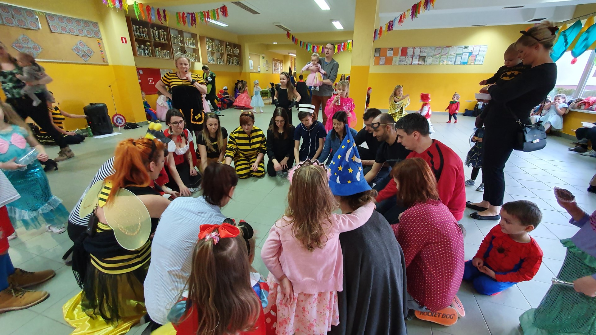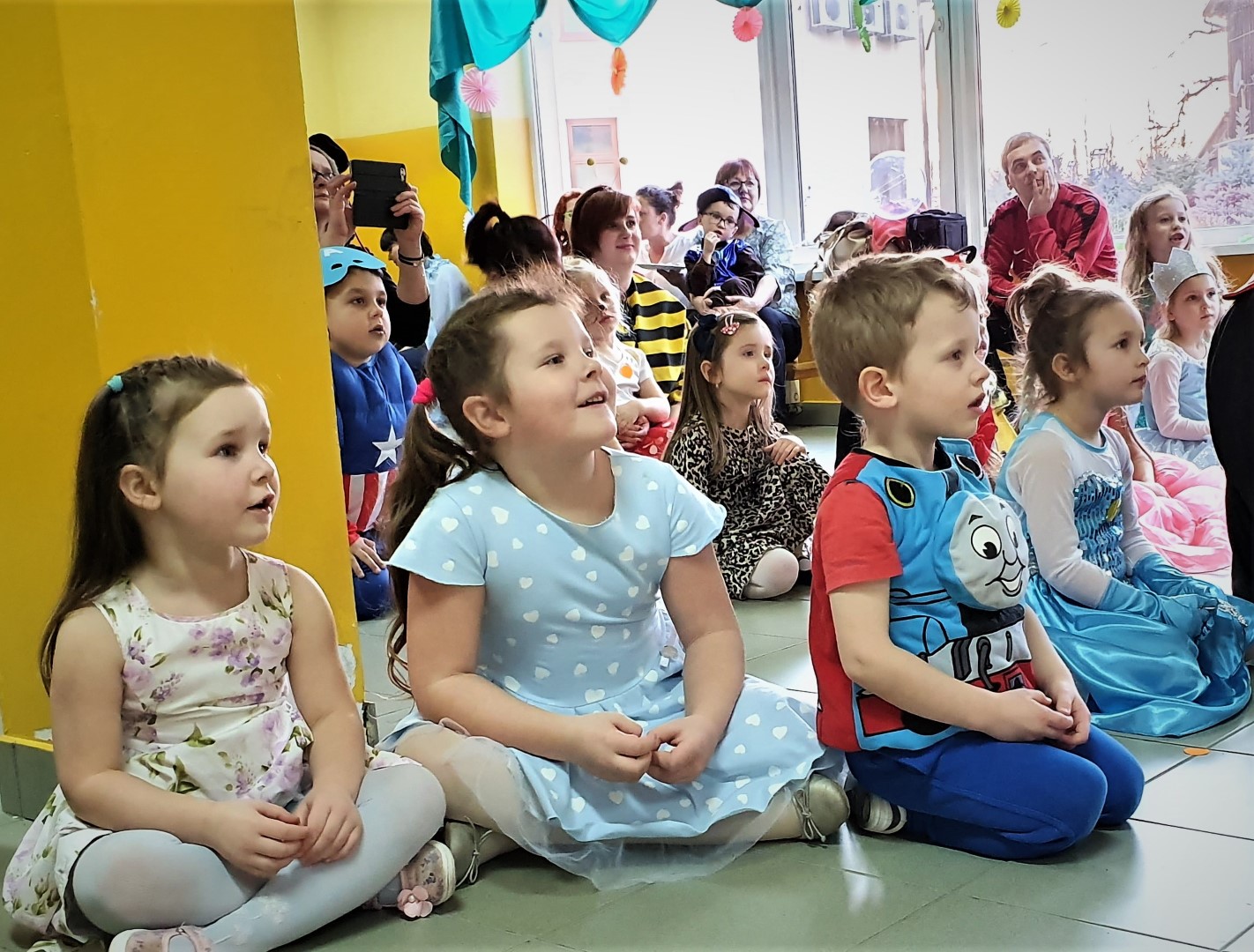 Dzisiaj dzieci z przedszkola „U Cioci Agatki” wraz rodzicami i opiekunami bawiło się na balu karnawałowym. Bal miał charakter przebierańcowy co było widać, nie tylko patrząc na dzieci, ale również na rodziców (szczególnie mamy). Były wspólne tańce, zabawy, w których udział brali nie tylko przedszkolaki, ale również rodzice.