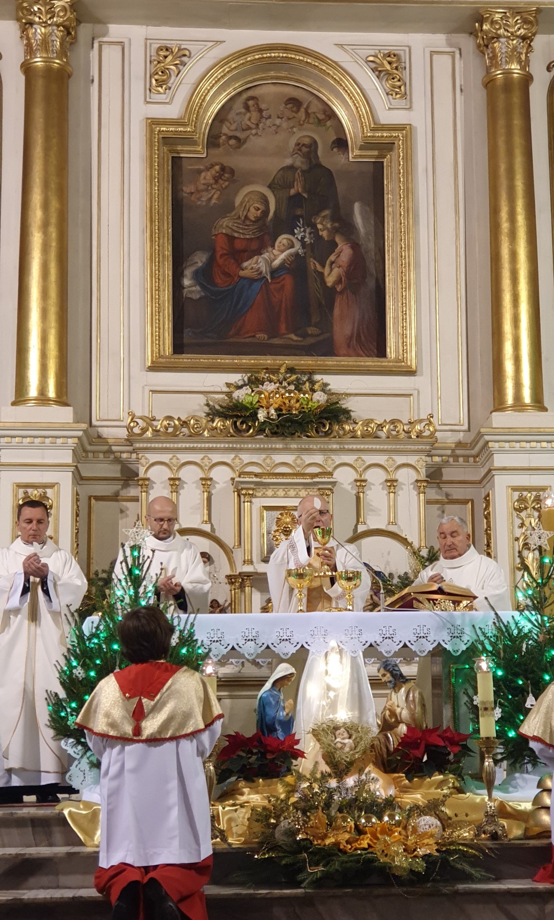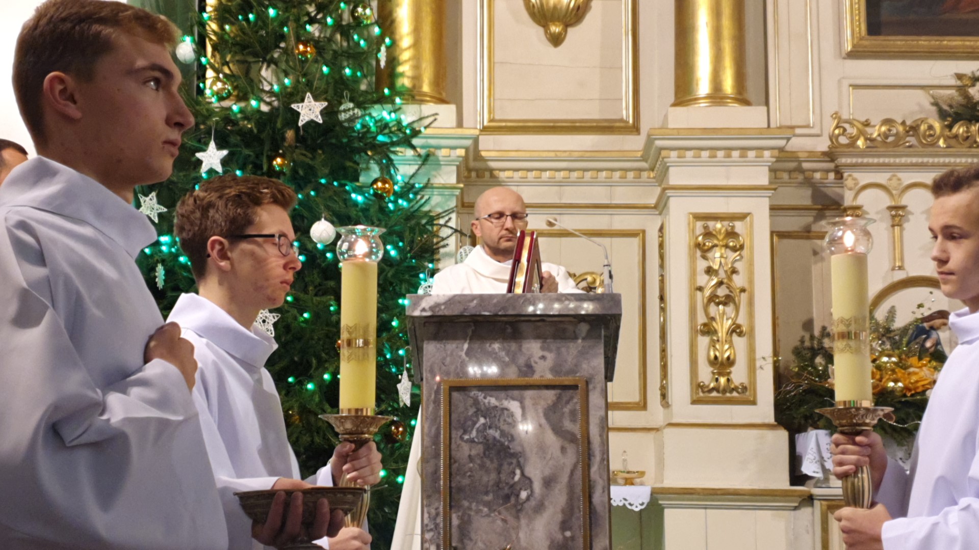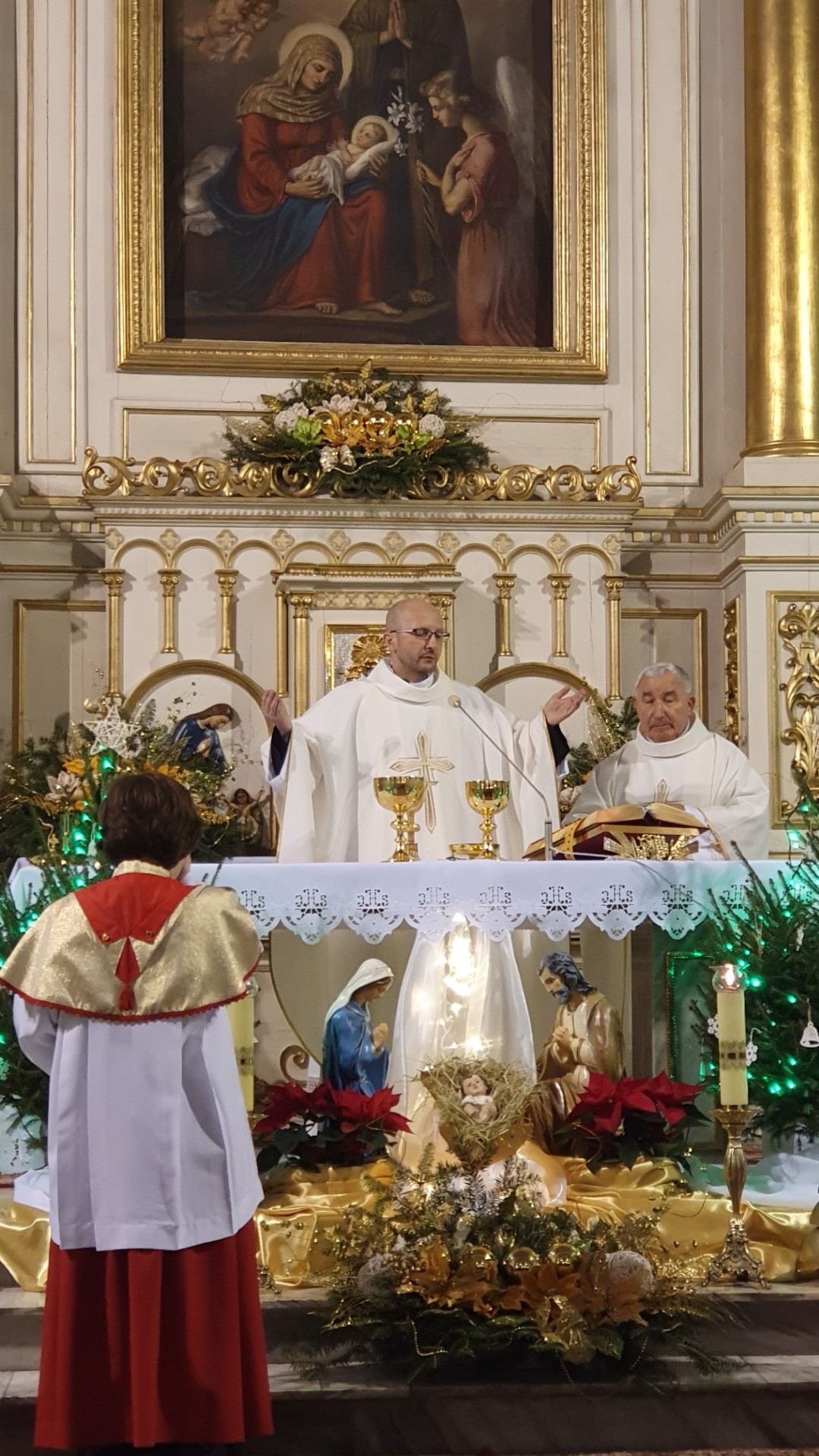 Mszy Św. o godz.11.30 w Boże Narodzenie, koncelebrowanej, przewodniczył ks.proboszcz Jan Banach. Kazanie wygłosił rodak, ksiądz prałat Tomasz Atłas.